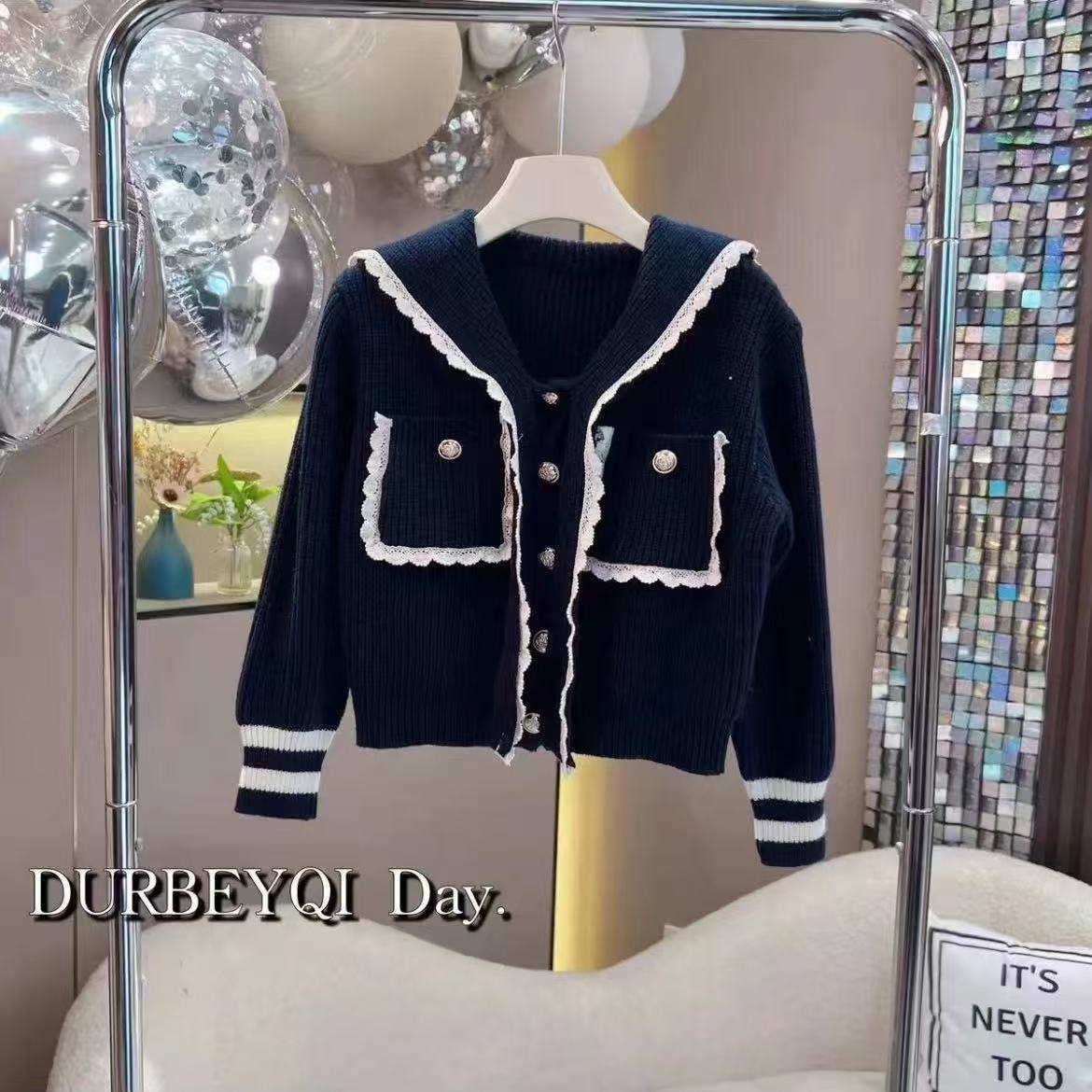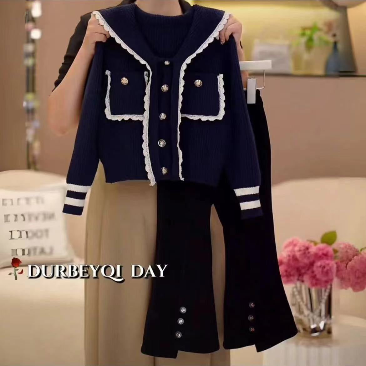 • 네이비 블루 스웨터 + 셔닐 팬츠, 봄, 가을 벨벳 없음