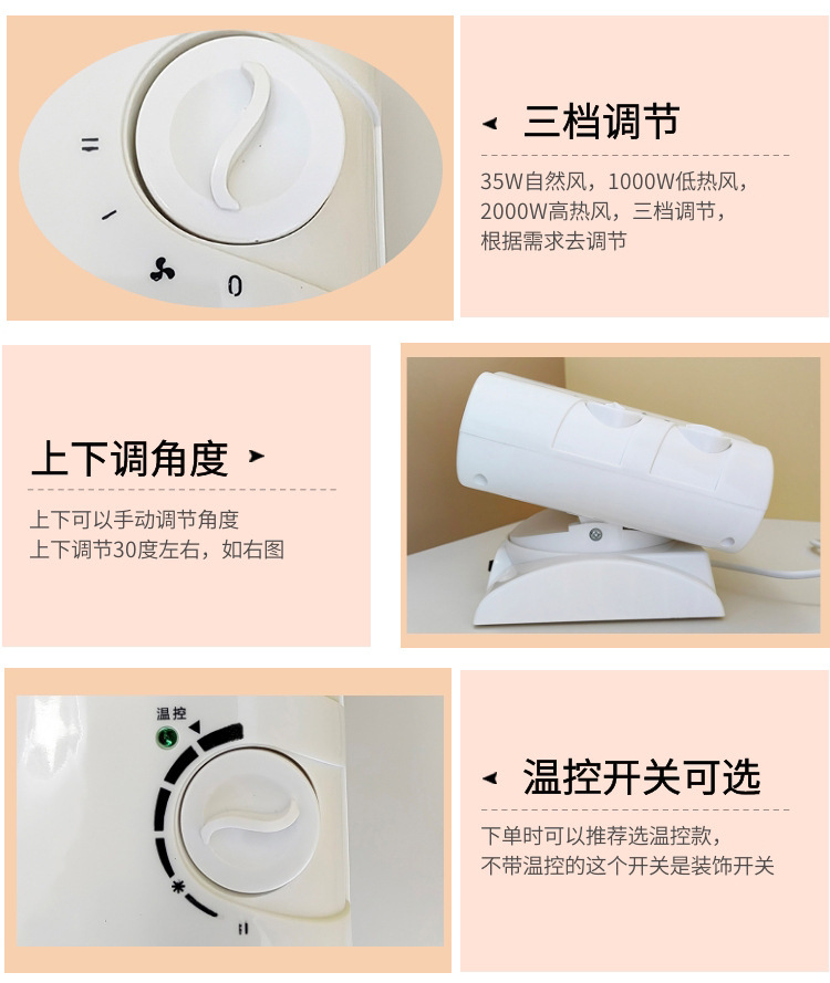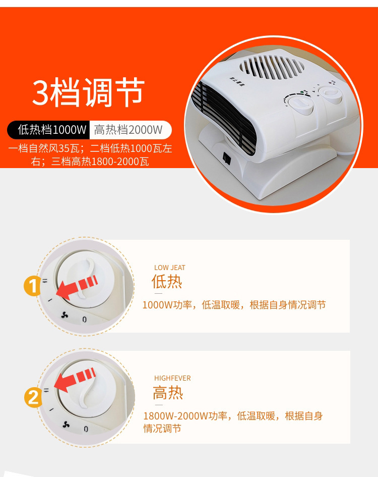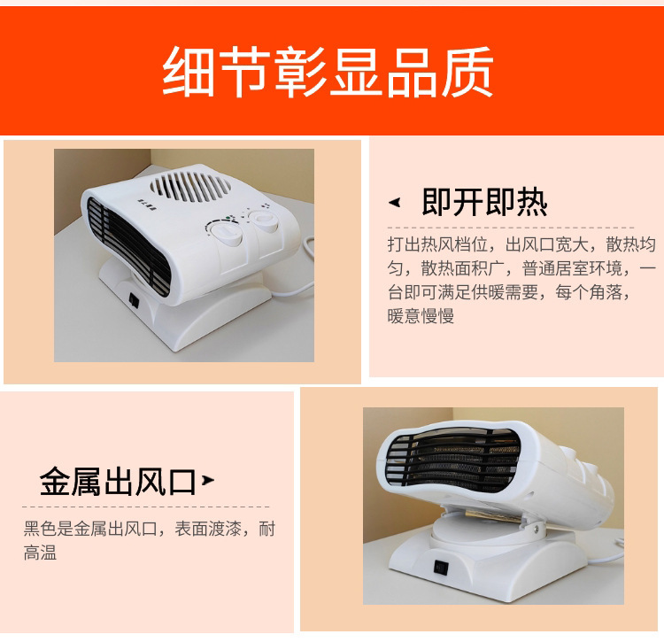 흔들리는 헤드 히터 빠른 난방 작은 가정용 전기 히터 전기 난방 데스크탑 난방 음소거 냉각 및 난방 이중 목적 히터