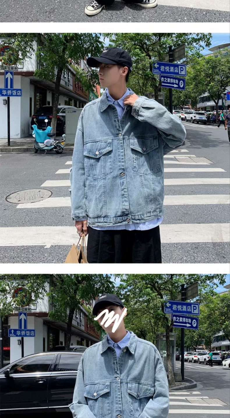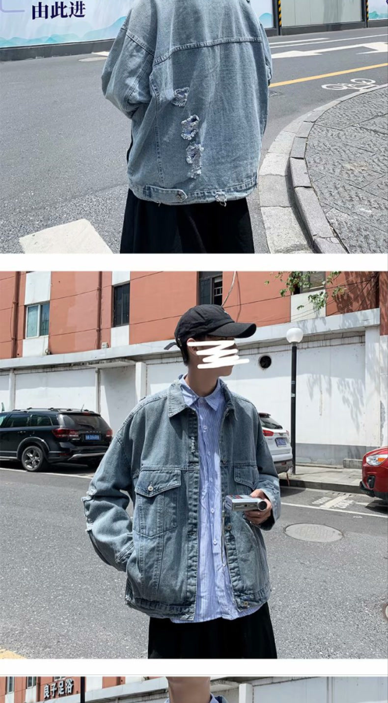 빈티지 Distressed 데님 재킷 남자 느슨한 홍콩 스타일 힙합 올 매치 데님 재킷 Instagram 인기 브랜드 봄과 가을 재킷스토어 가기