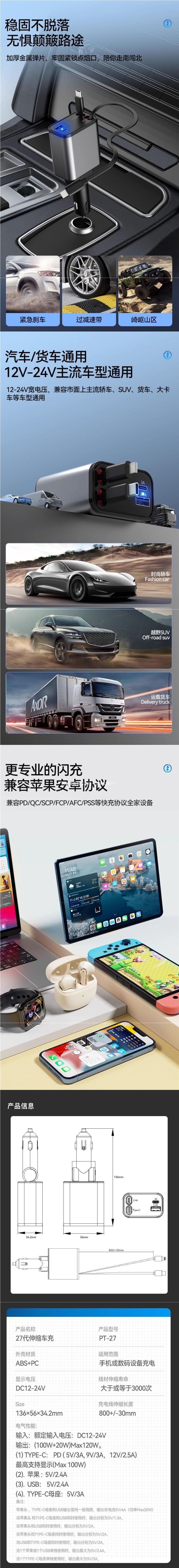 • 전용모델 [Apple PD+Type-c 듀얼라인 텔레스코픽+USB 포트+PD 포트] Apple 및 Android용 범용·