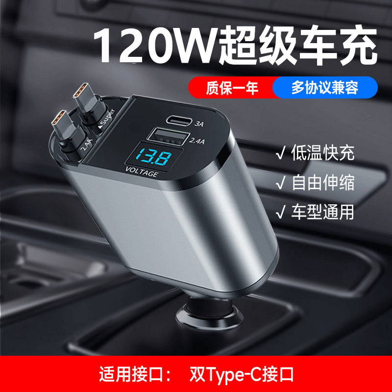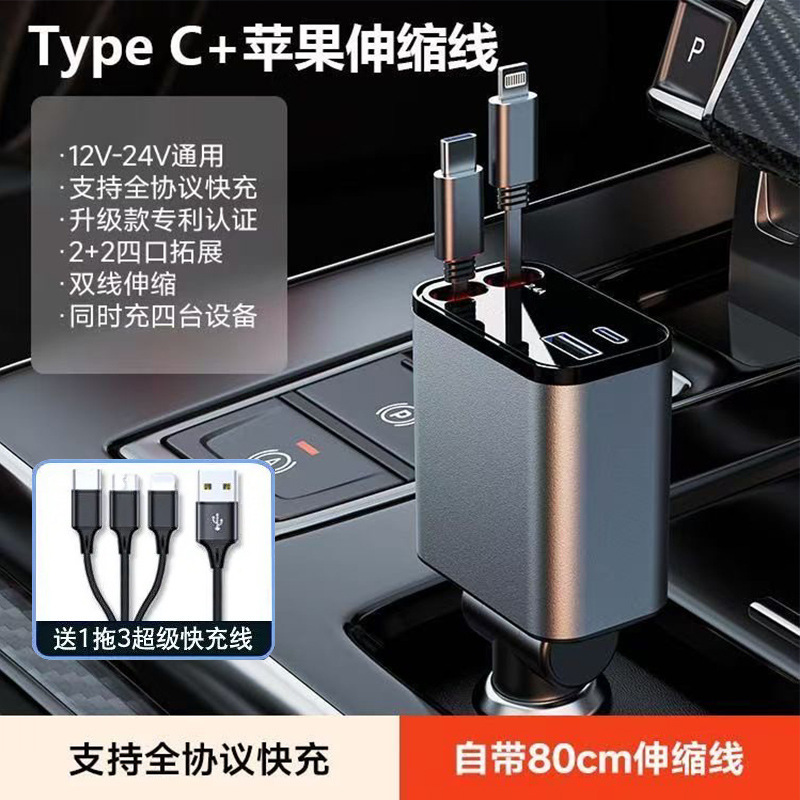 자동차 충전기 120 빠른 충전 텔레스코픽 사과/과일 라인 다기능 충전 라인 휴대 전화 데이터 라인 도매스토어 가기