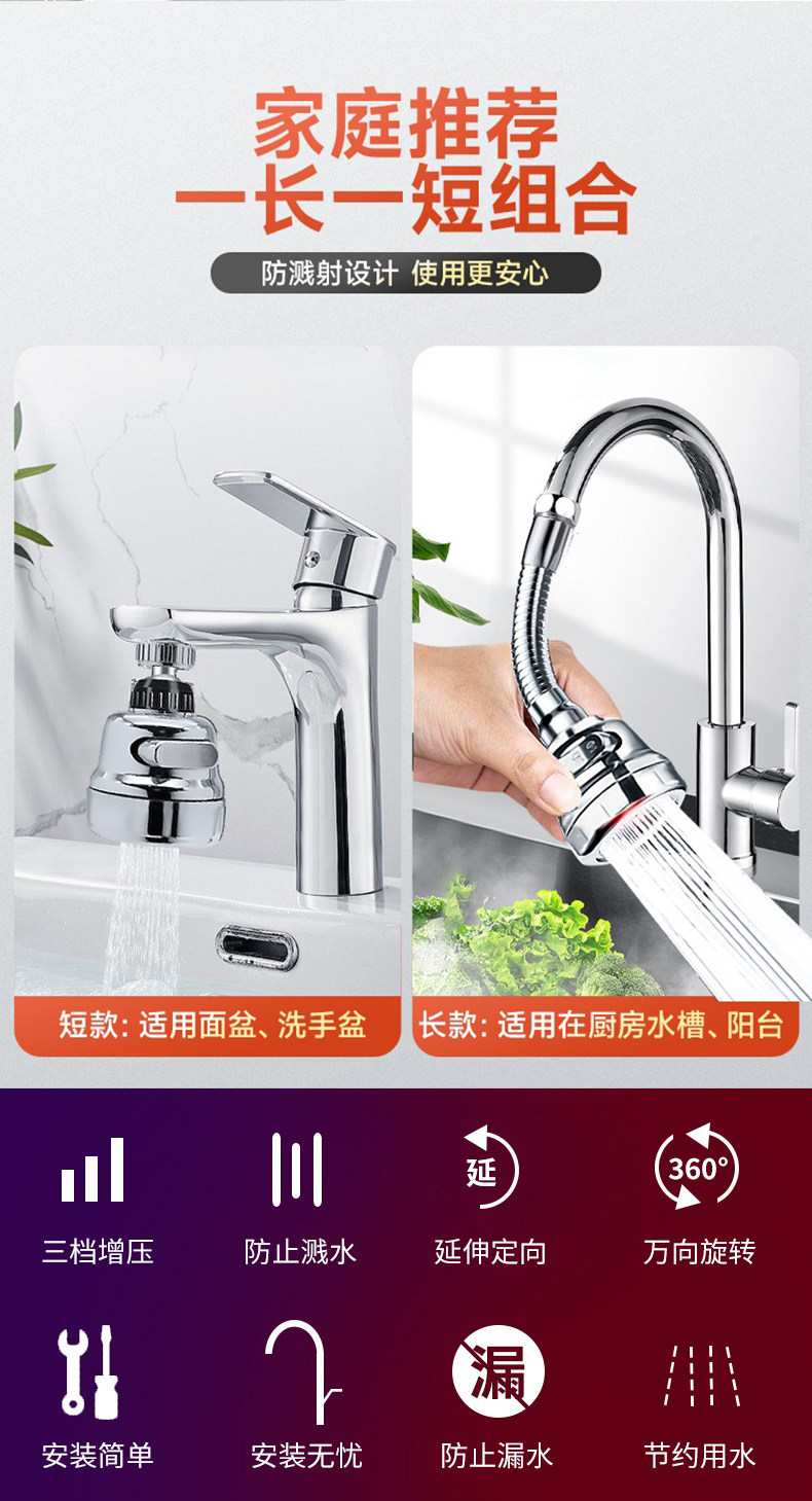 싱크대 수도꼭지 범용 연장기, 가압 필터 정수기, 싱크대 설거지용 수도꼭지, 온수 수도꼭지