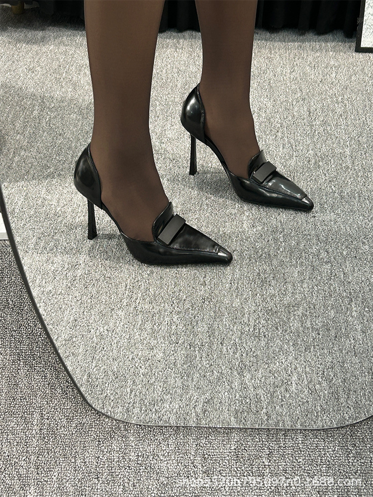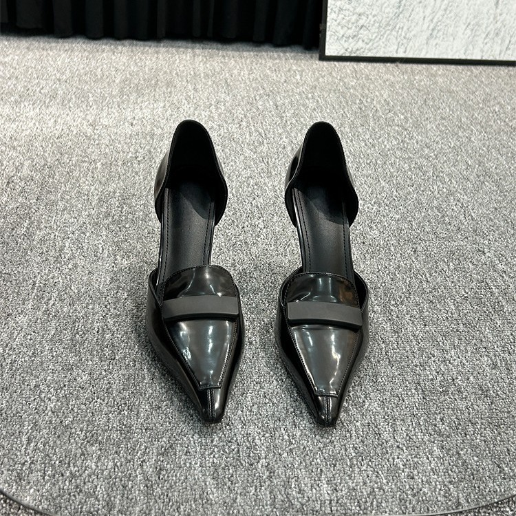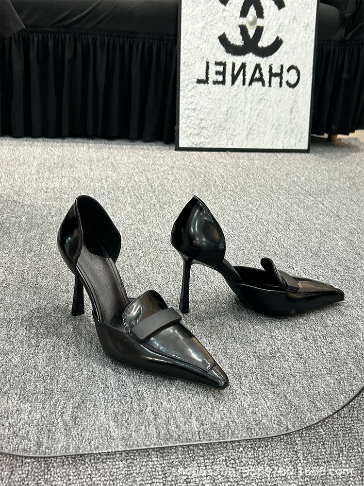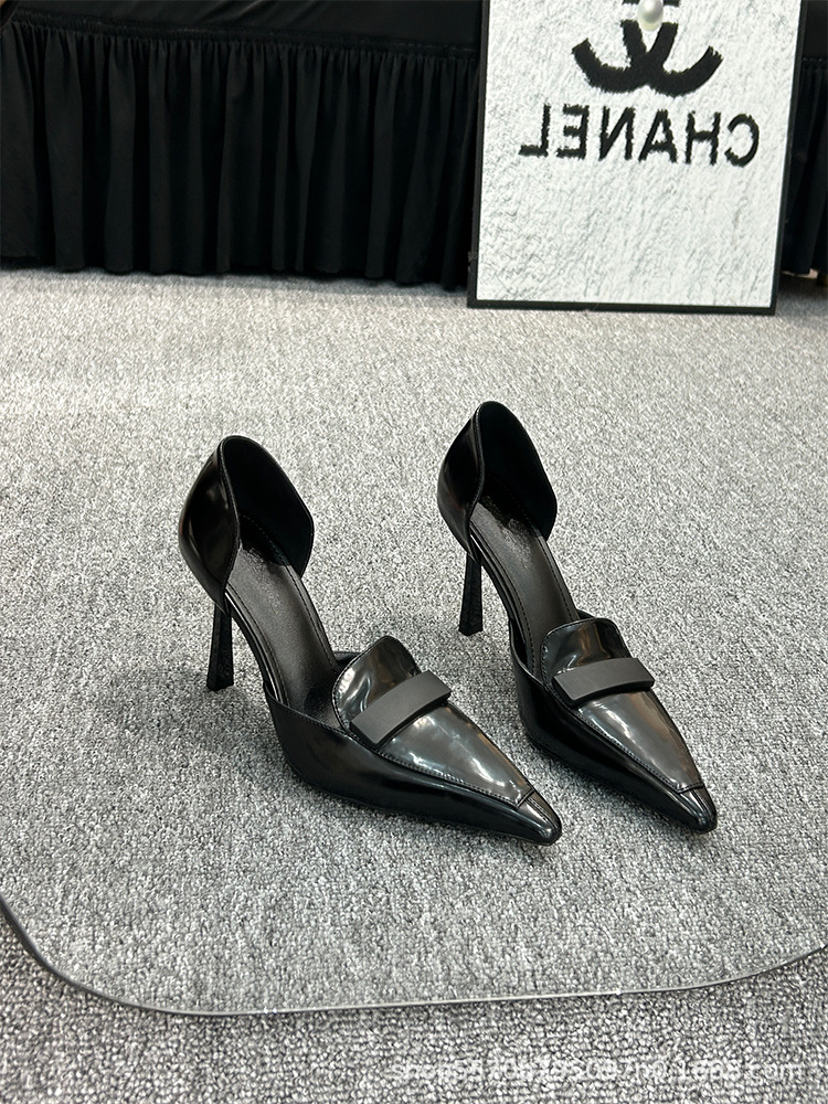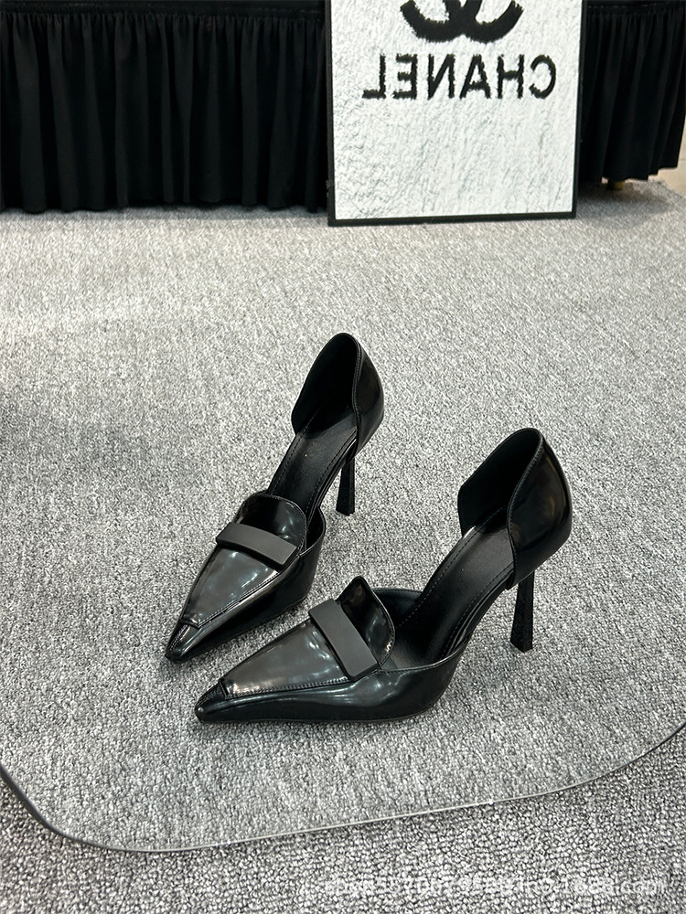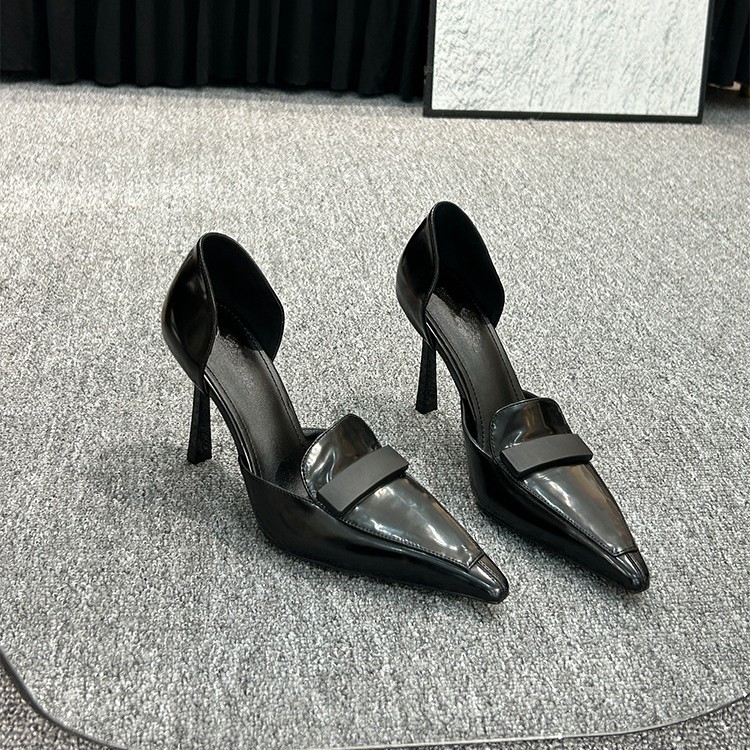 양 슐린 2025 이른 봄 새로운 하이힐 신발 여성 섹시한 블랙 가죽 작은 스퀘어 버클 사이드 빈 우아한 얇은 발 뒤꿈치 신발스토어 가기