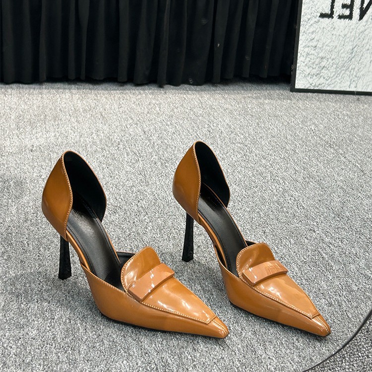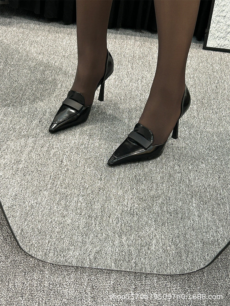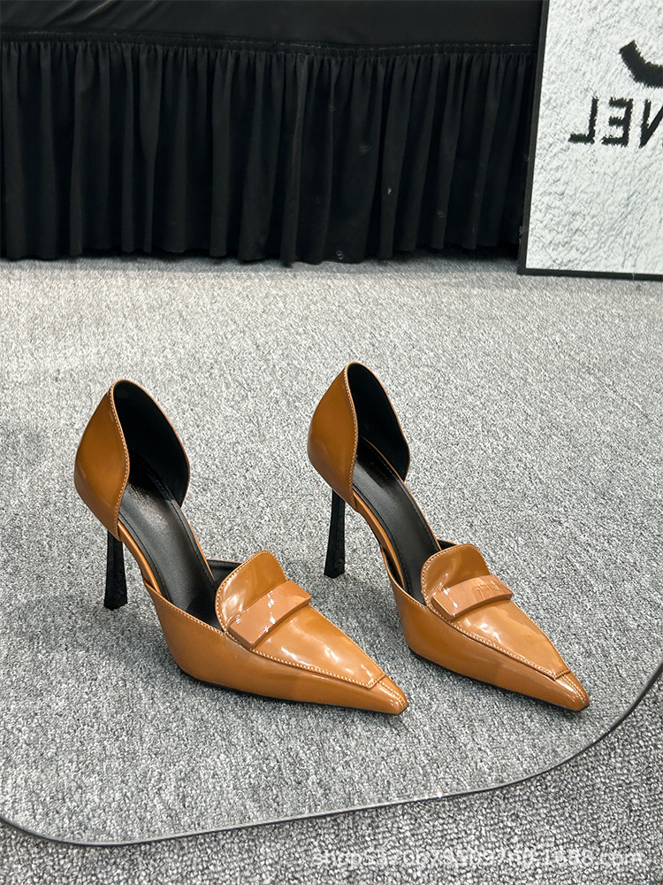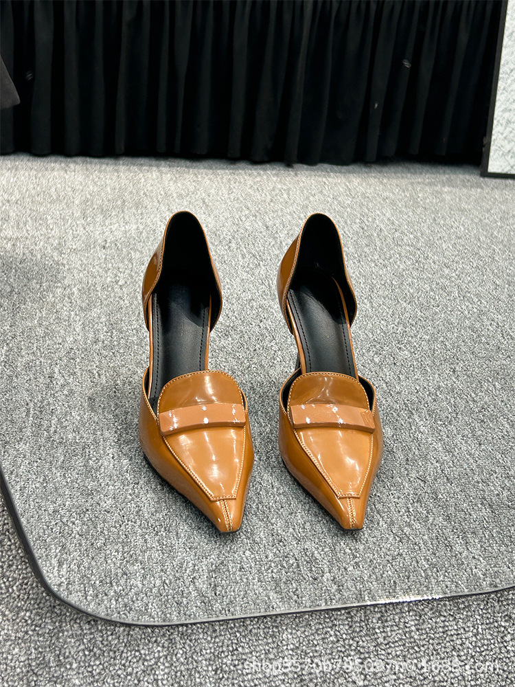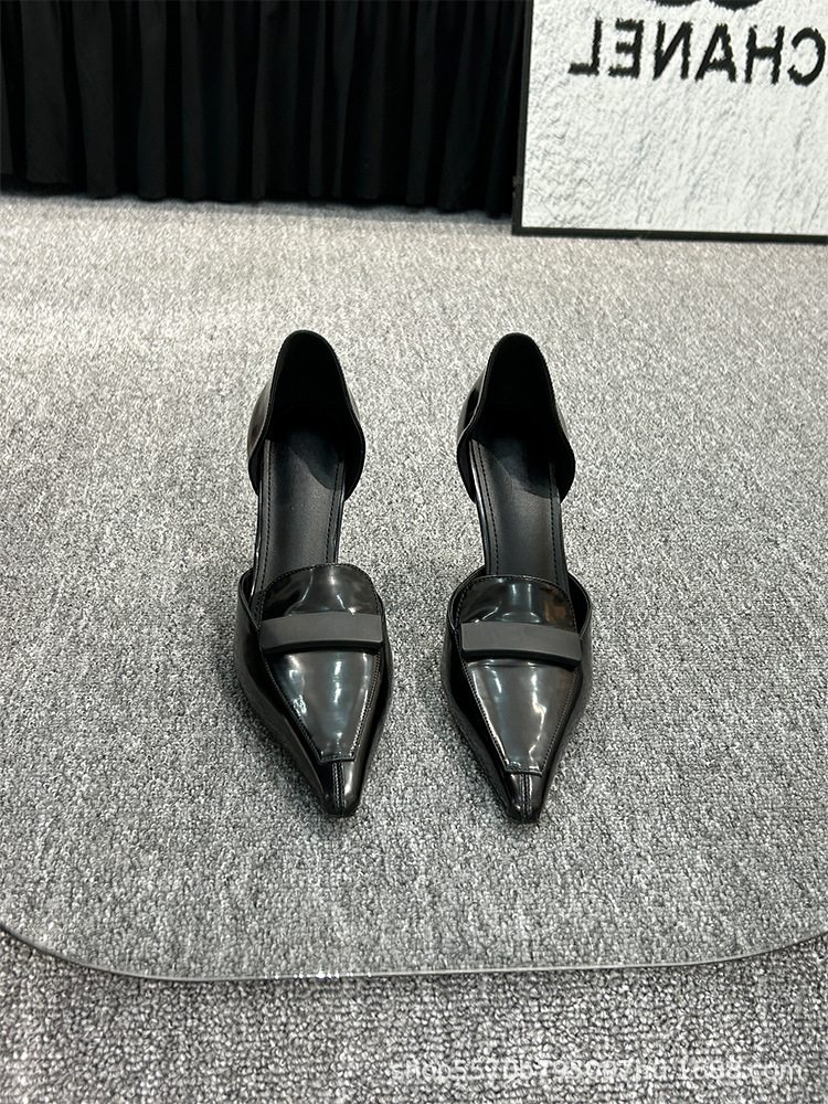 양 슐린 2025 이른 봄 새로운 하이힐 신발 여성 섹시한 블랙 가죽 작은 스퀘어 버클 사이드 빈 우아한 얇은 발 뒤꿈치 신발스토어 가기
