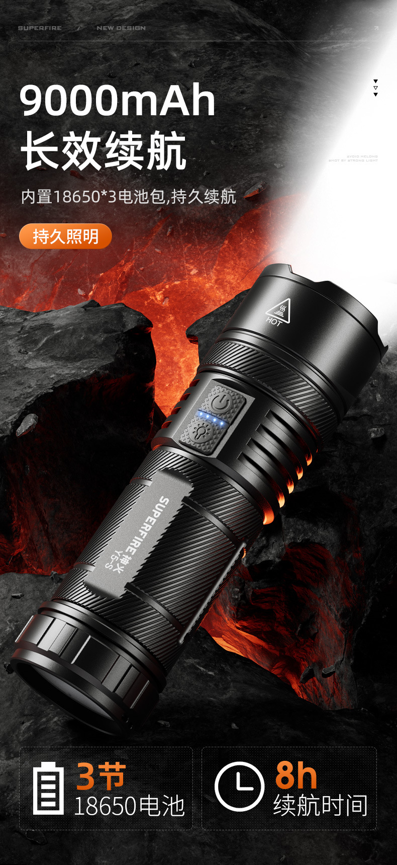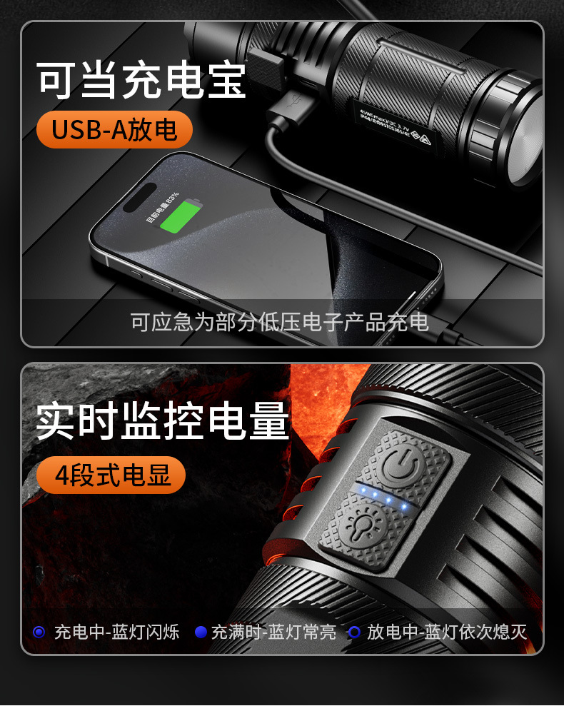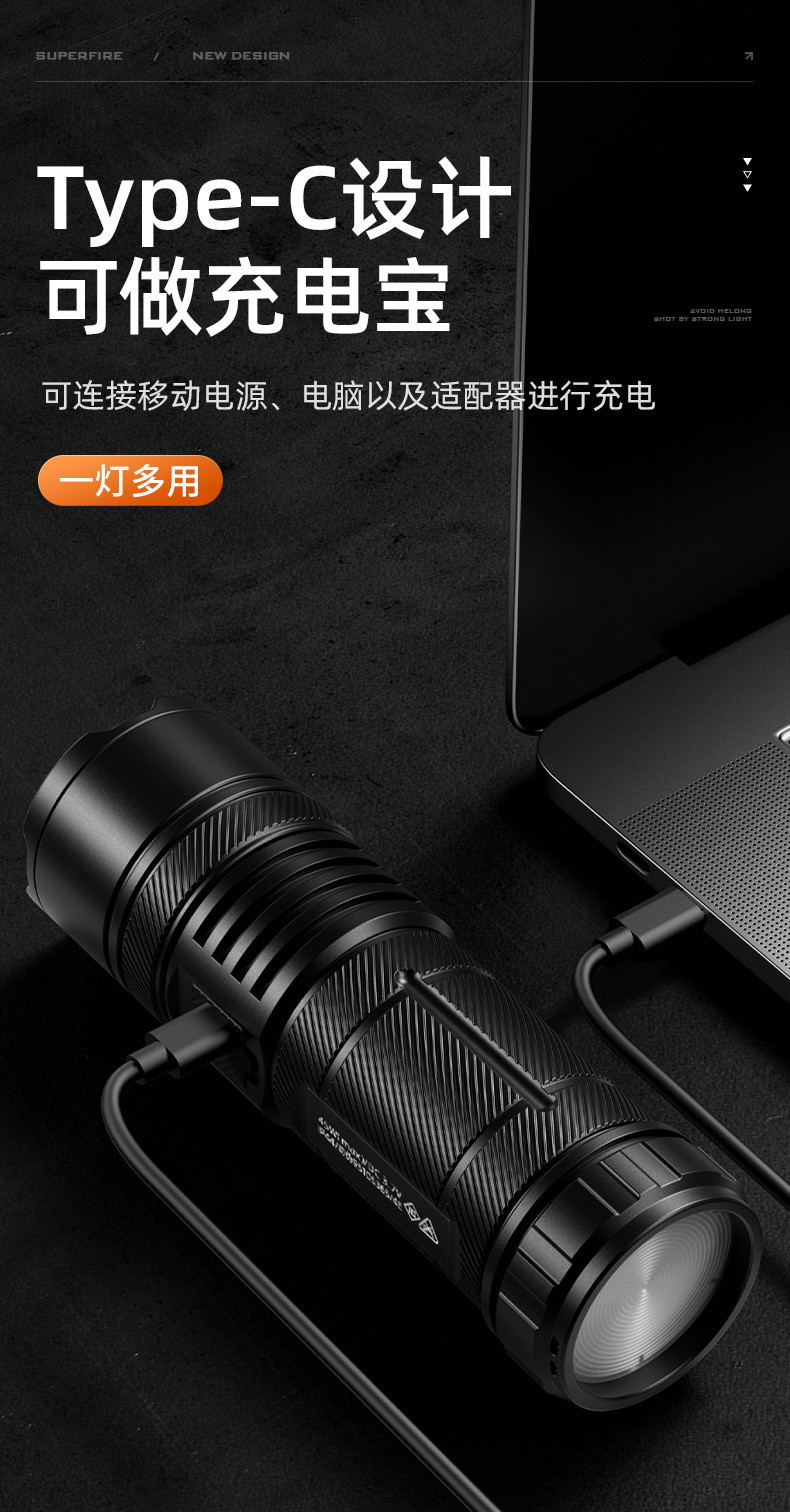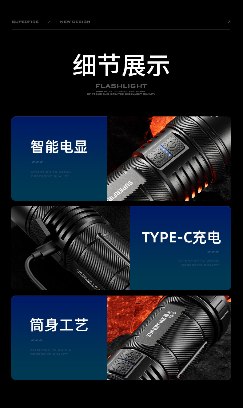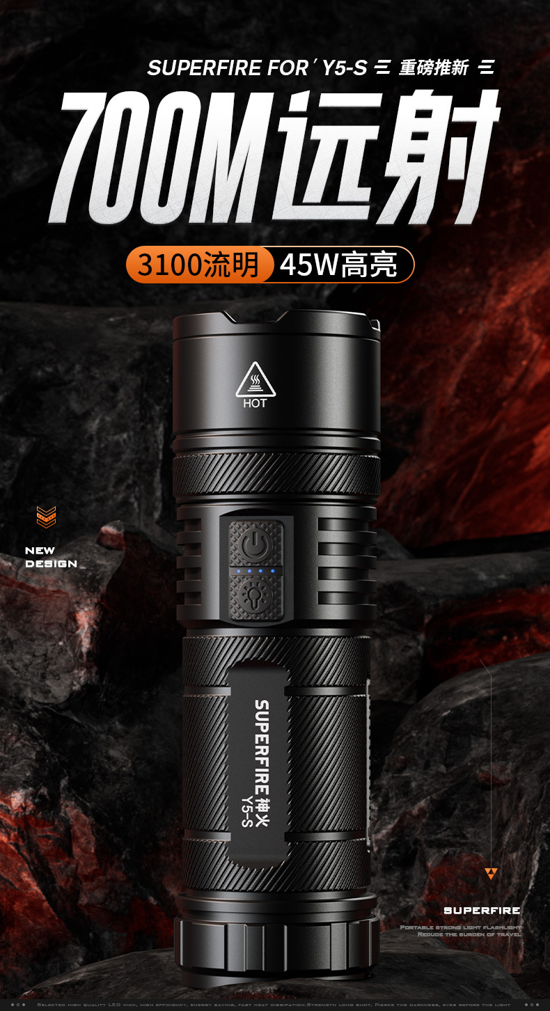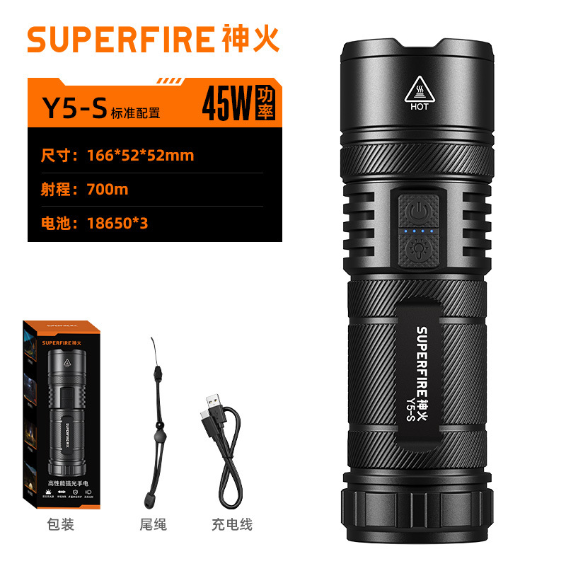Shenhuo Y5-S 손전등 TYPE-C 충전 밝은 장거리 야외 방수 탐조등 줌 도매