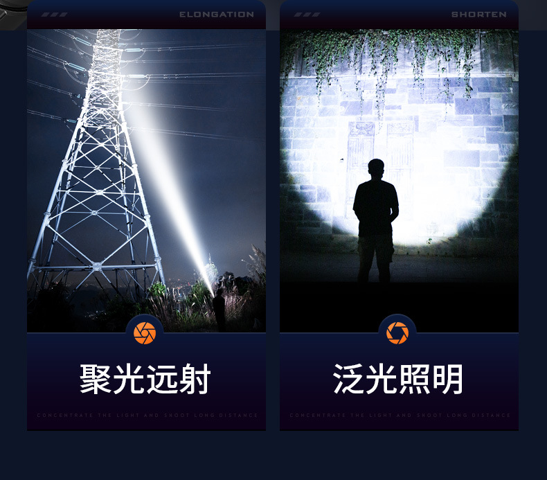 Shenhuo Y5-S 손전등 TYPE-C 충전 밝은 장거리 야외 방수 탐조등 줌 도매스토어 가기