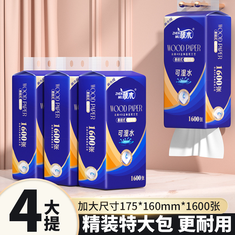 Zhen Mu 1600 교수형 조직 플러스 팩 종이 가정용 냅킨 통나무 종이 얼굴 조직 도매 화장지스토어 가기