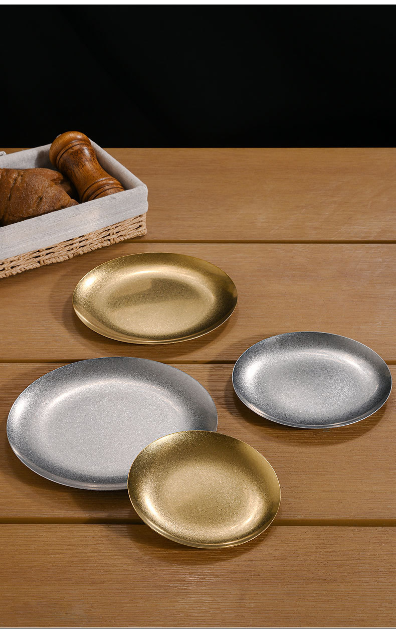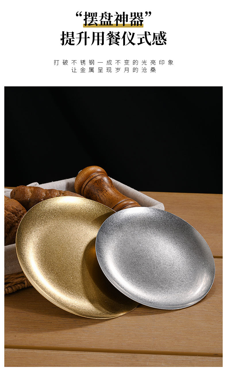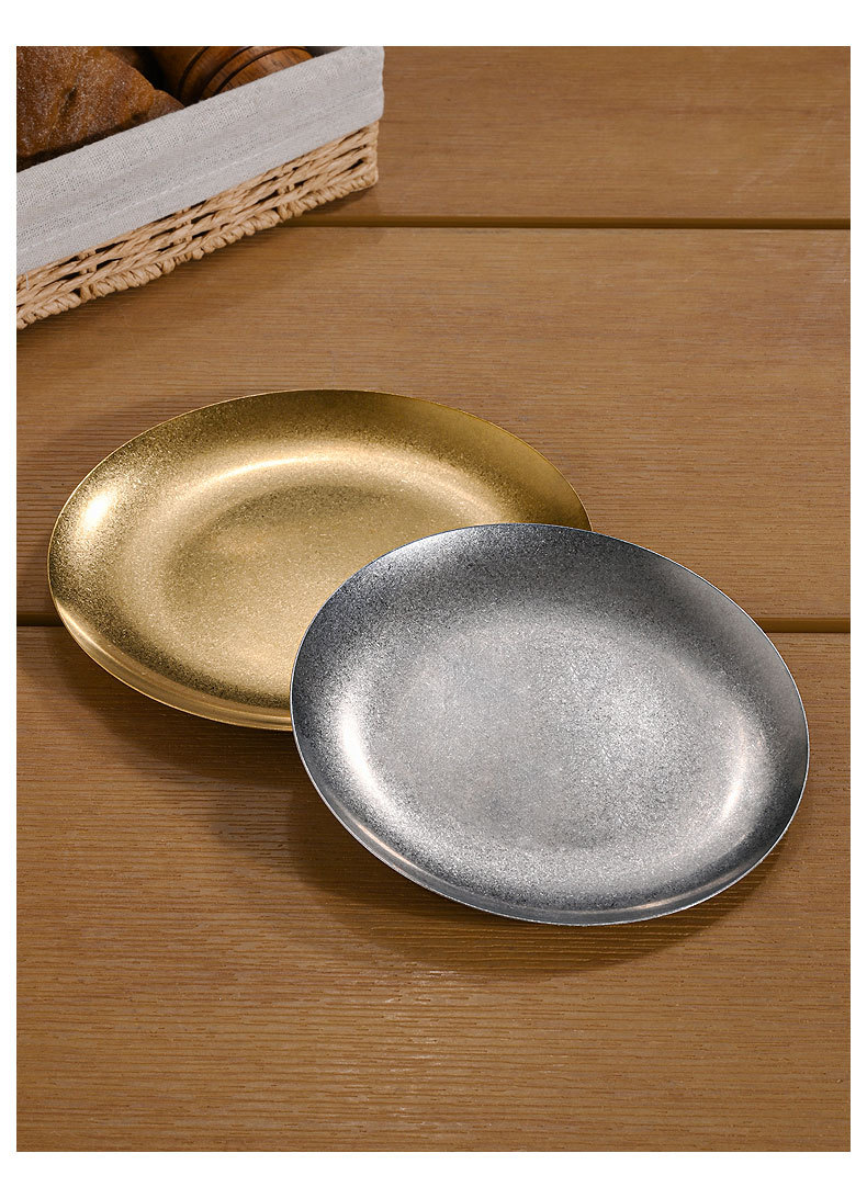 빈티지 스테인레스 스틸 디스크 오래 된 산업 스타일 얕은 플레이트 플랫 하단 바베큐 플레이트 뼈 플레이트 작은 플레이트 달콤한 플레이트 케이크 플레이트