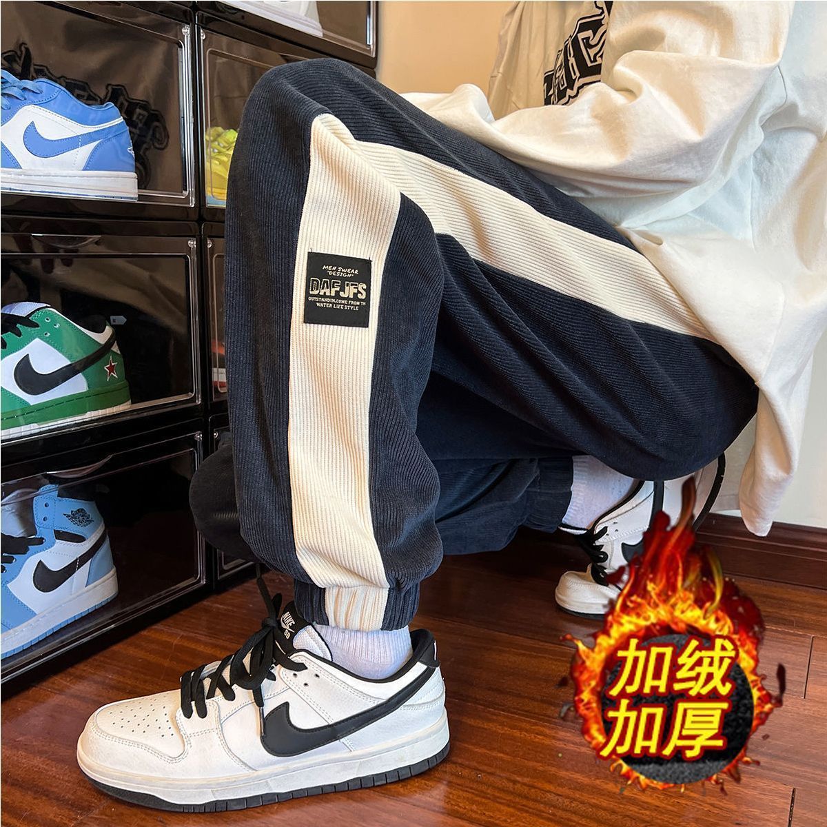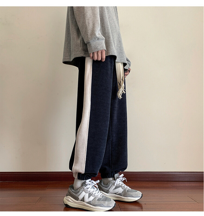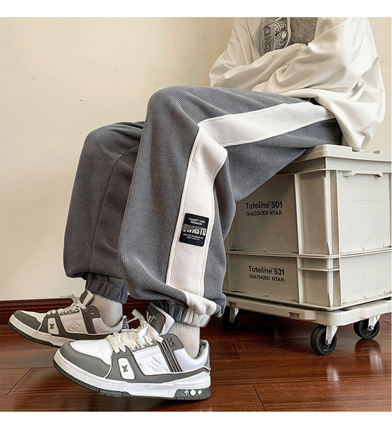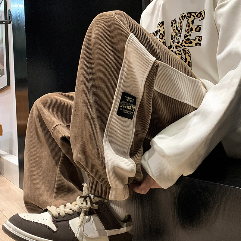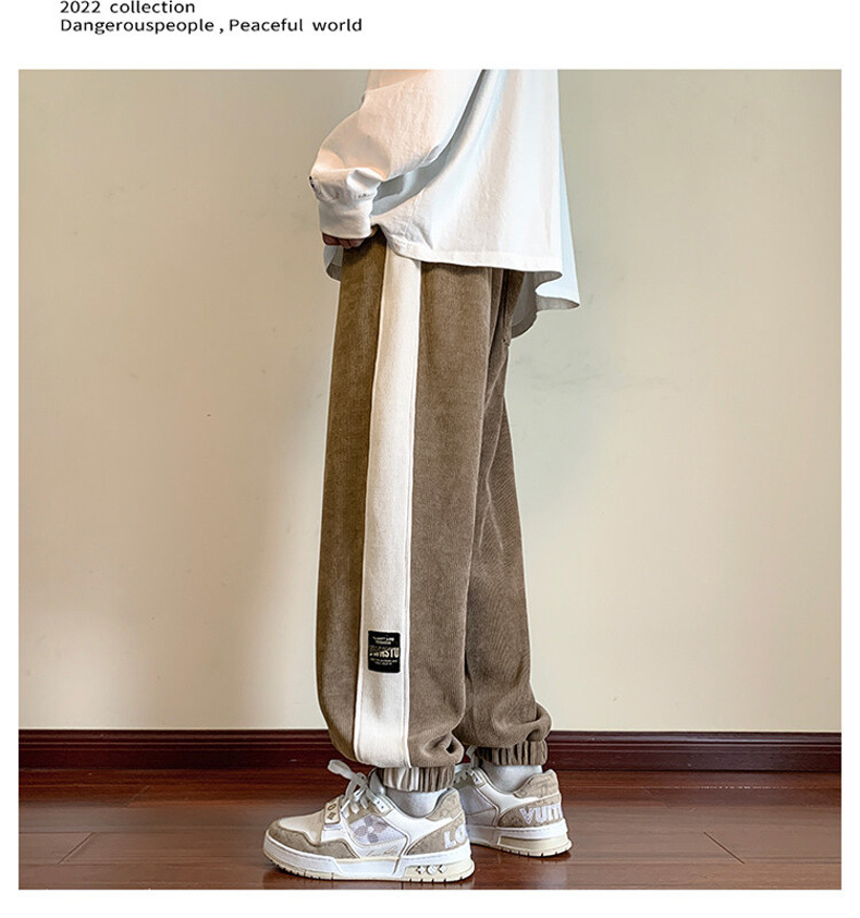 봄과 가을 미국 무거운 유럽 코튼 벨벳 바지 남자 캐주얼 바지 봄 패션 브랜드 레트로 스포츠 바지 곧게 두껍게 2023스토어 가기