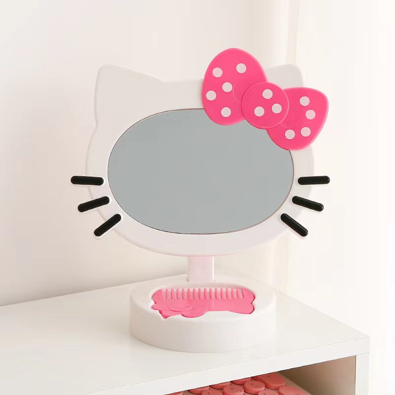 새로운 hello kity MY031 빗이있는 만화 스테레오 메이크업 미러는 360 도 KT 거울을 회전 할 수 있습니다
