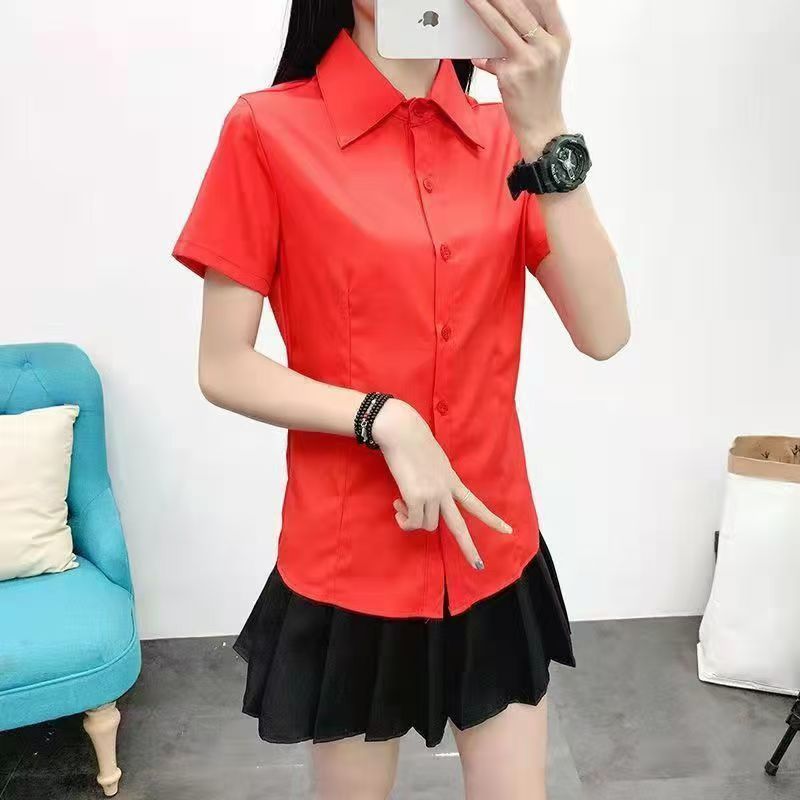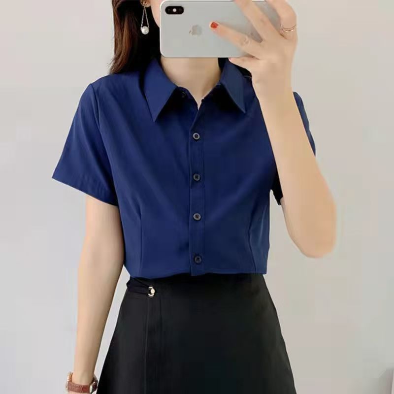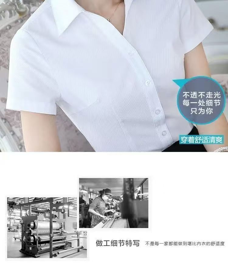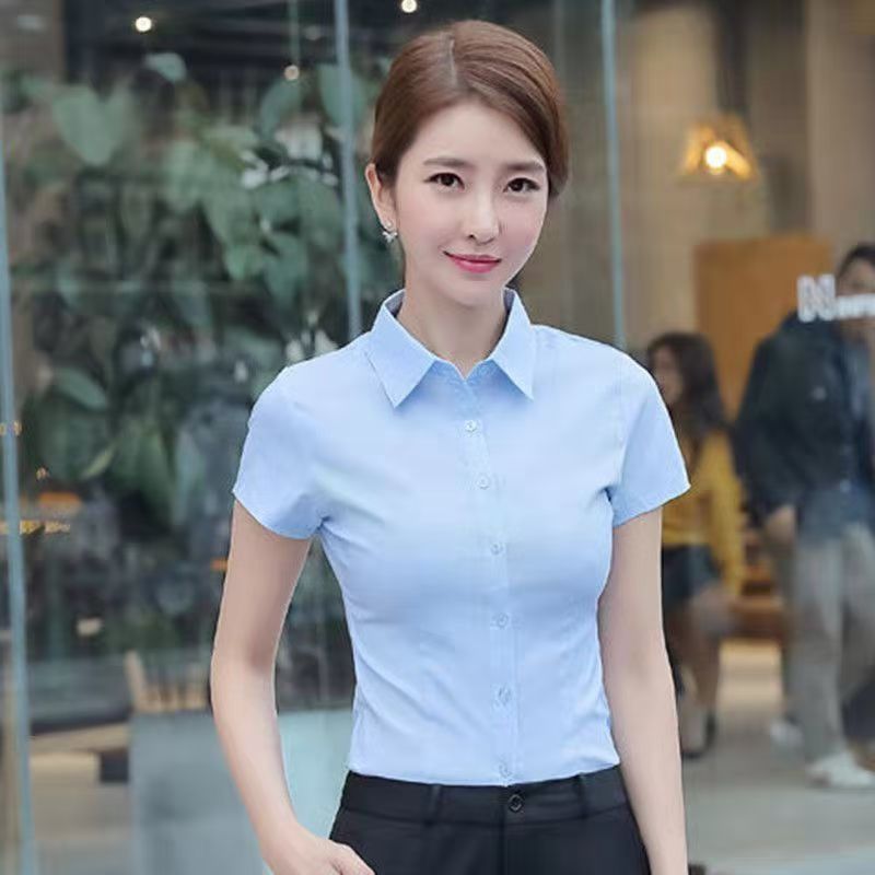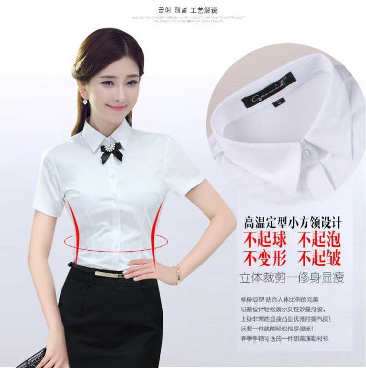 여름 프로 셔츠 여성 셔츠 원피스 반팔 작업복 여성 셔츠 한국식 화이트 칼라 작업복 화이트