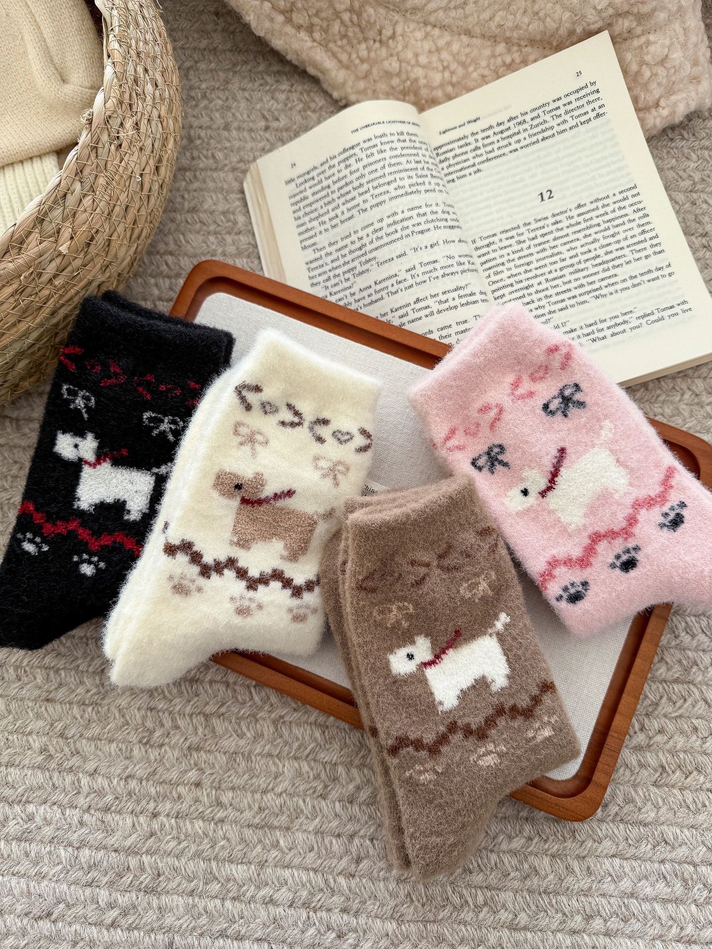 페어랜드 빈티지 호주 벨벳 강아지 양말 일본 가을과 겨울 색상 따뜻한 두꺼운 더미 양말 올 매치 여자 미드 더미 양말스토어 가기