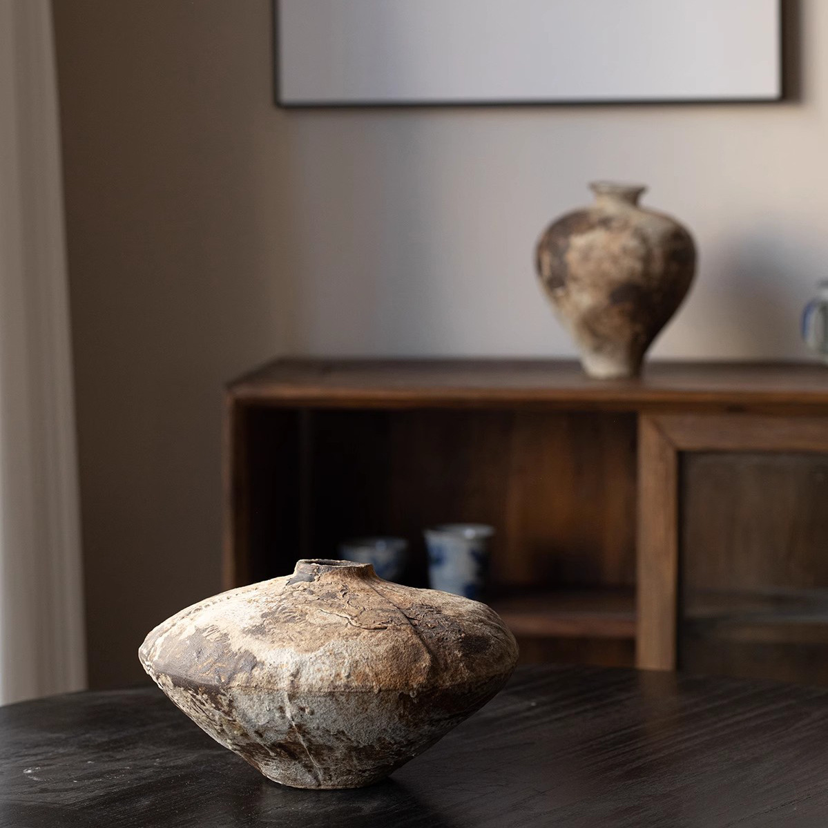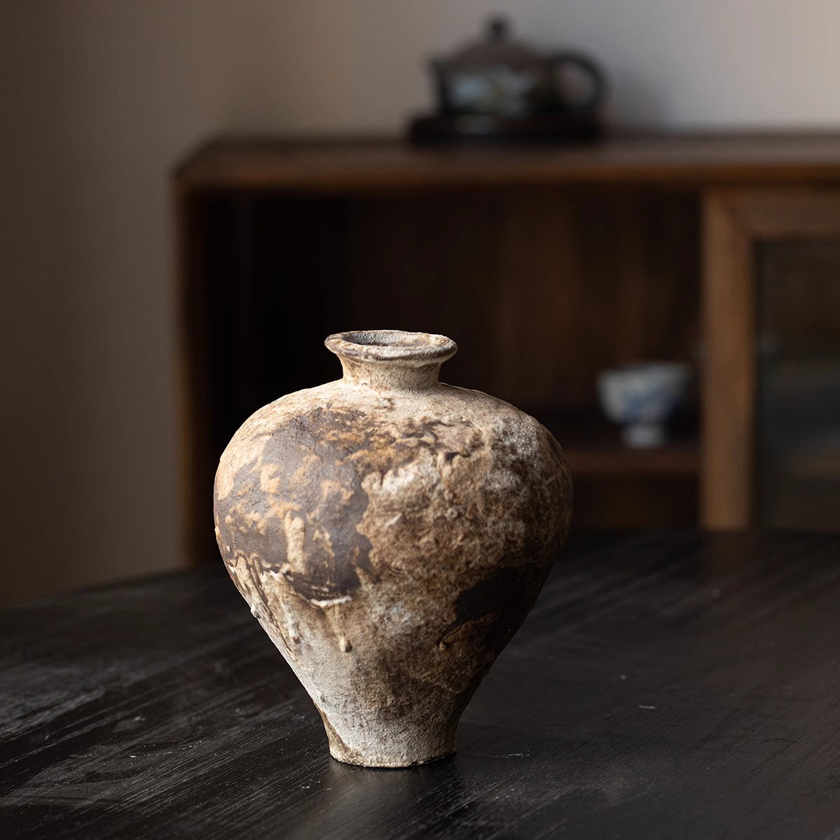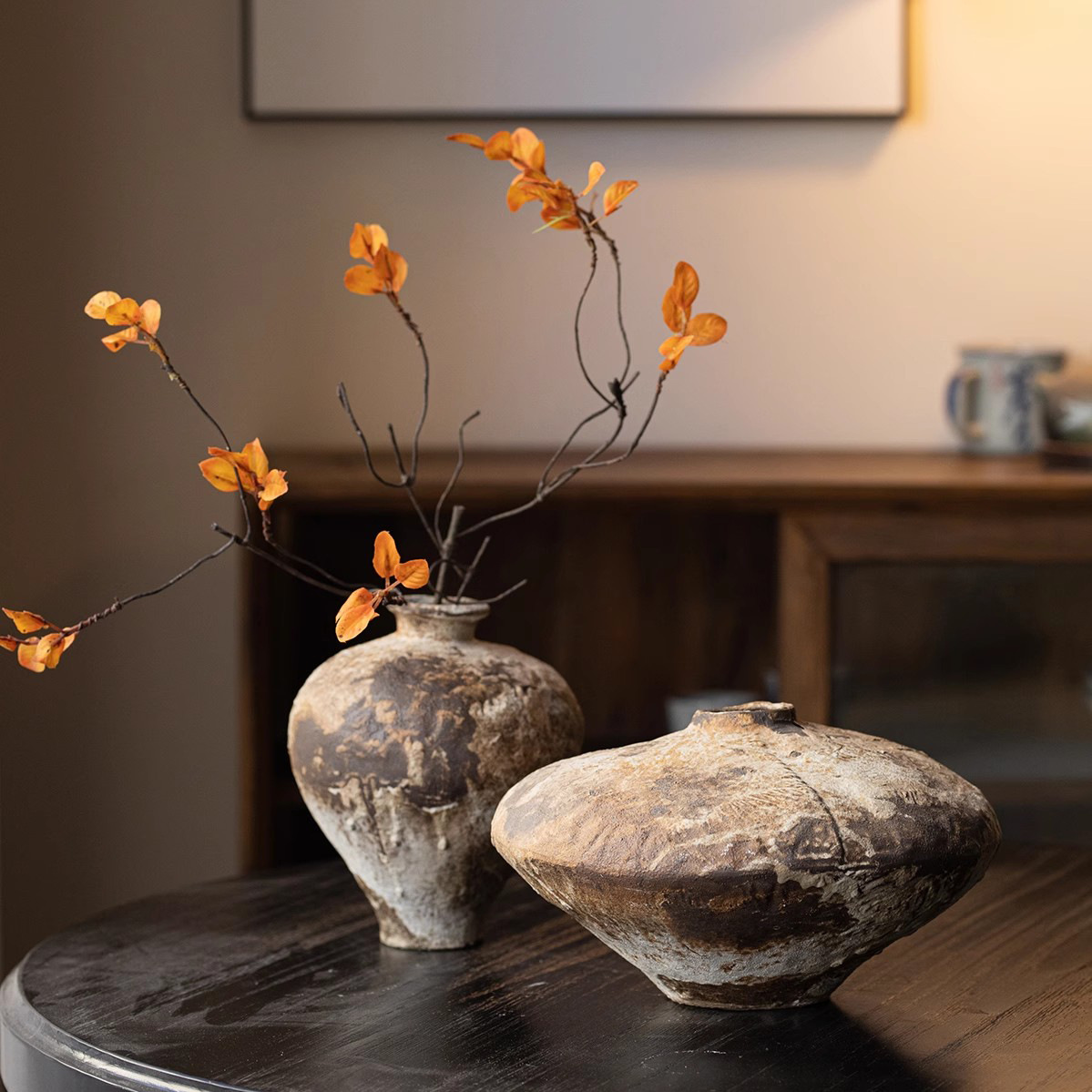 와비사비 스타일 복고풍 거친 도자기 꽃병 새로운 중국 스타일의 고급 거실 호텔 거친 도자기 항아리 세라믹 꽃꽂이 장치스토어 가기