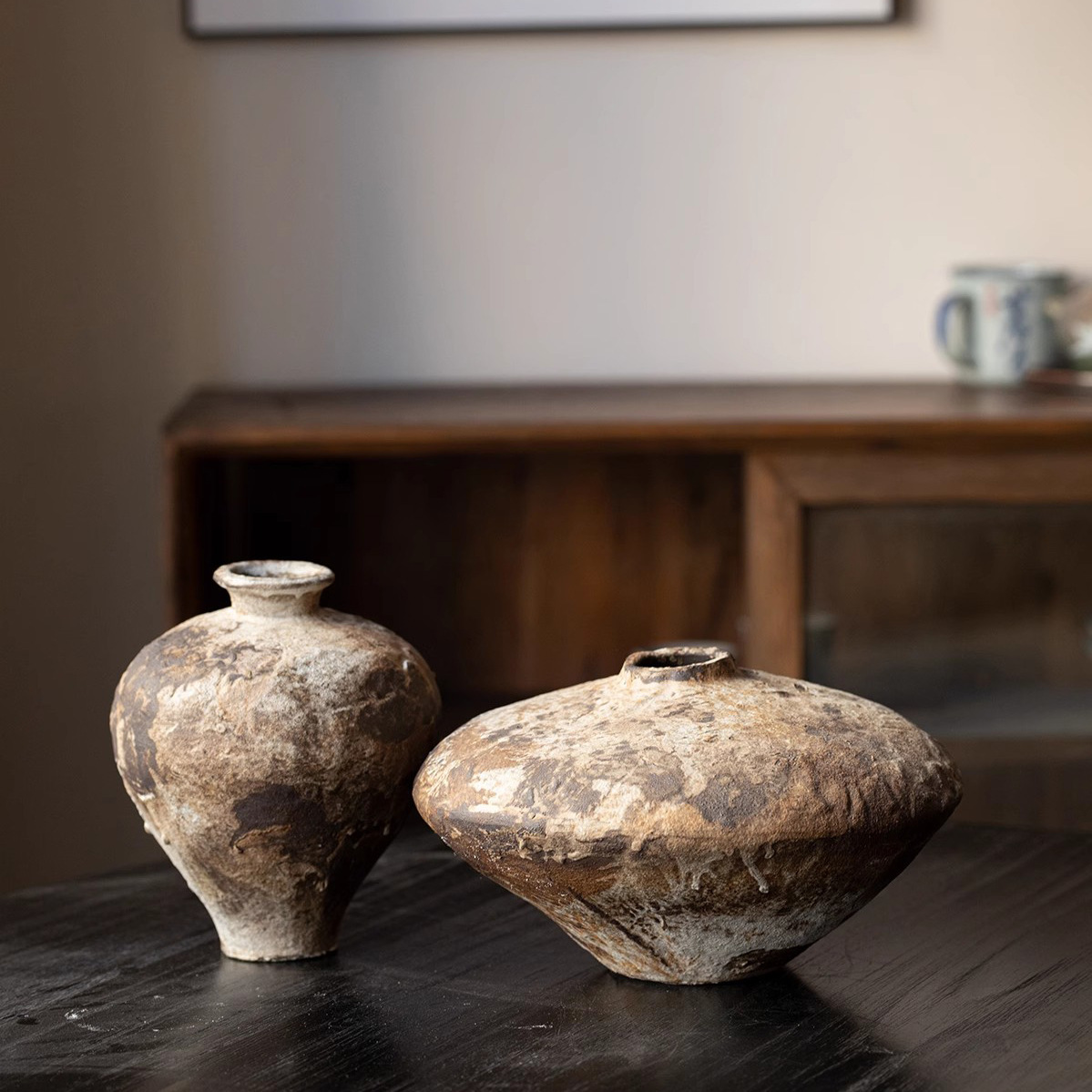 와비사비 스타일 복고풍 거친 도자기 꽃병 새로운 중국 스타일의 고급 거실 호텔 거친 도자기 항아리 세라믹 꽃꽂이 장치