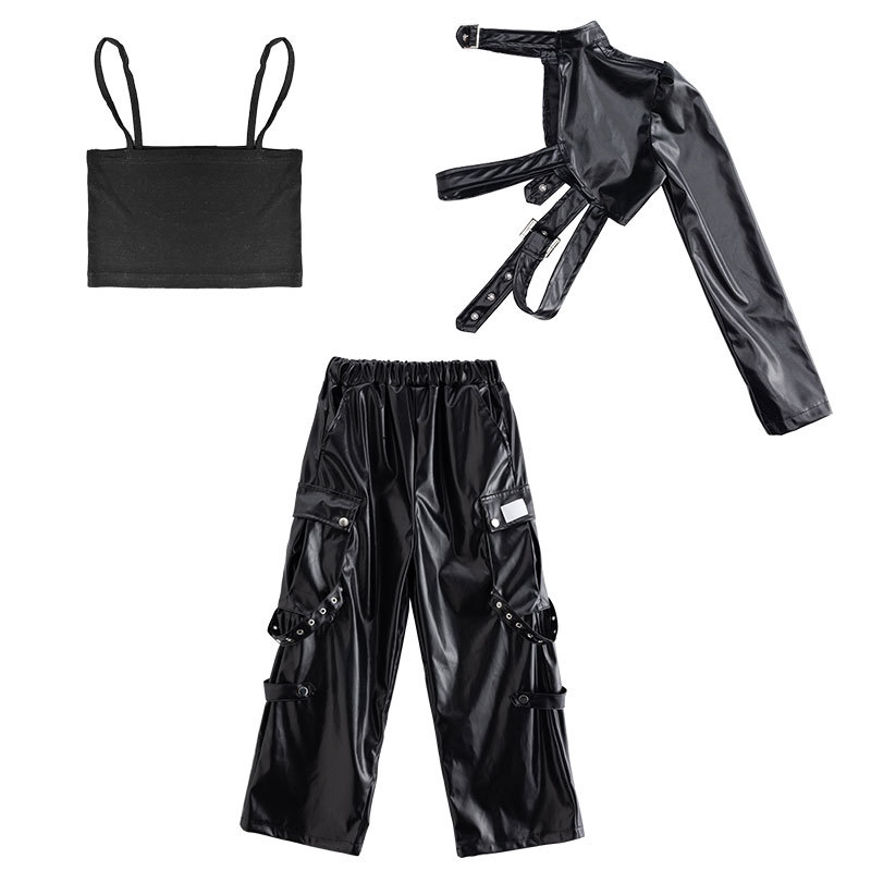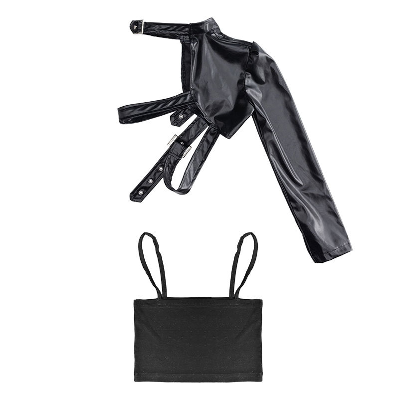 • A550 블랙 가죽 반팔 + A545 블랙 멜빵 + B322 블랙 가죽 바지