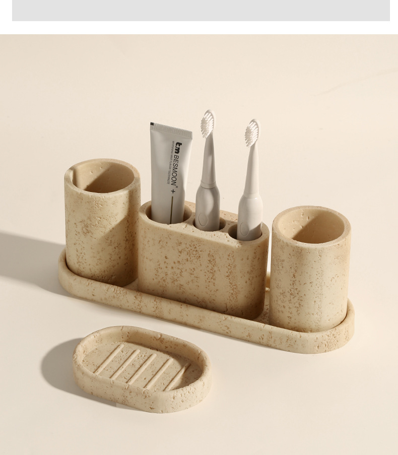 가글 컵 호텔 전동 칫솔 보관 랙 양치질 세트 치약 4 조각 세트 구멍 돌 욕실 화장실 없음