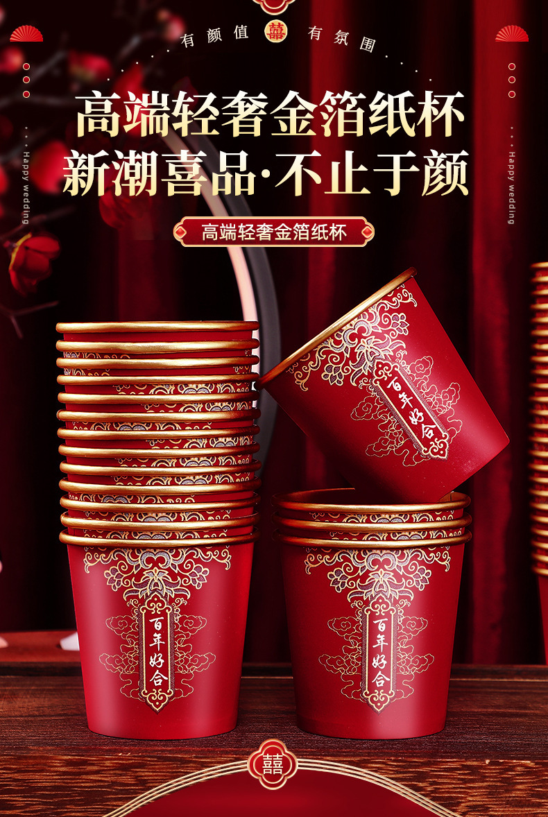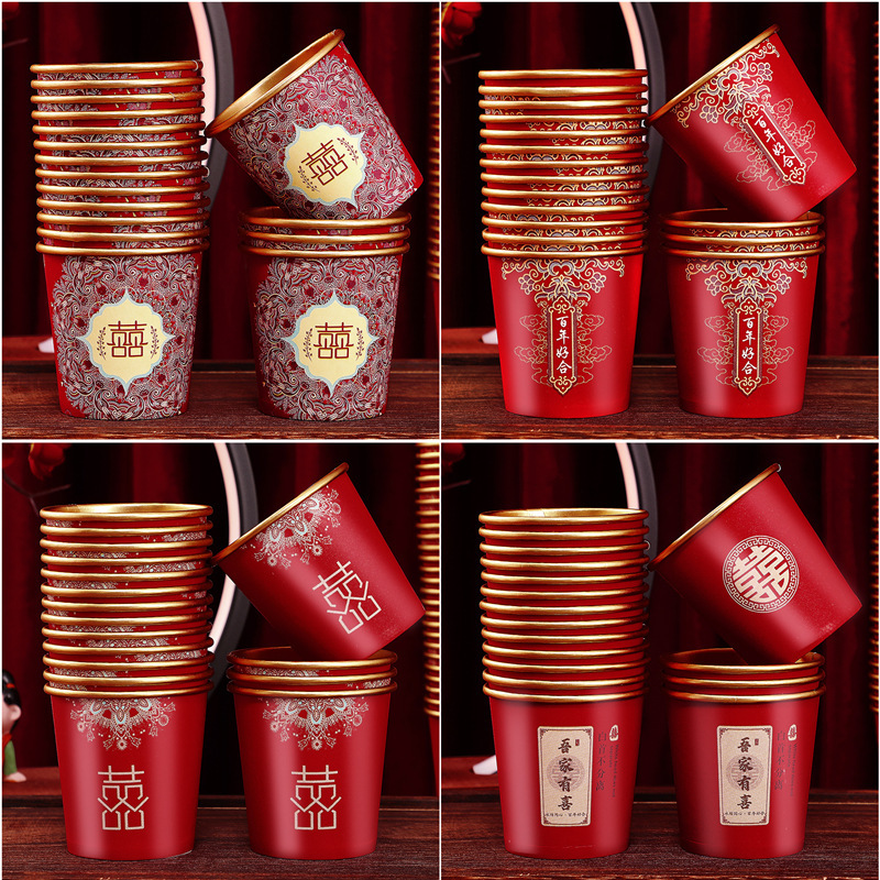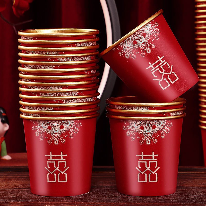 웨딩 페이퍼 컵 일회용 컵 웨딩 웨딩 웨딩 두꺼운 웨딩 연회 골드 호일 레드 웨딩 컵 토스트 컵스토어 가기