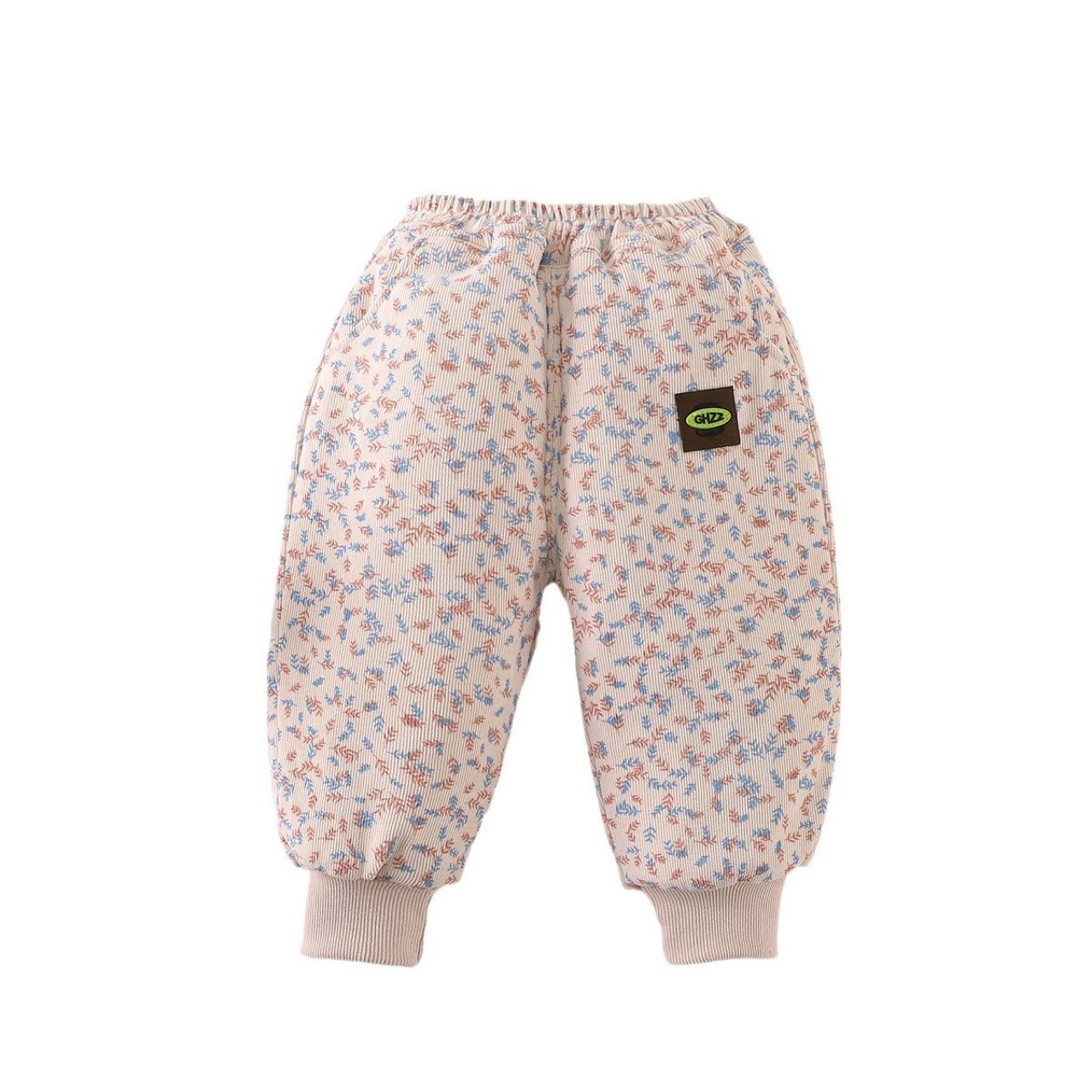 2024 새로운 소년과 소녀 겨울 면화 기모 바지 아기 두꺼운 따뜻한 전체 인쇄 꽃 바지 어린이 바지 배치