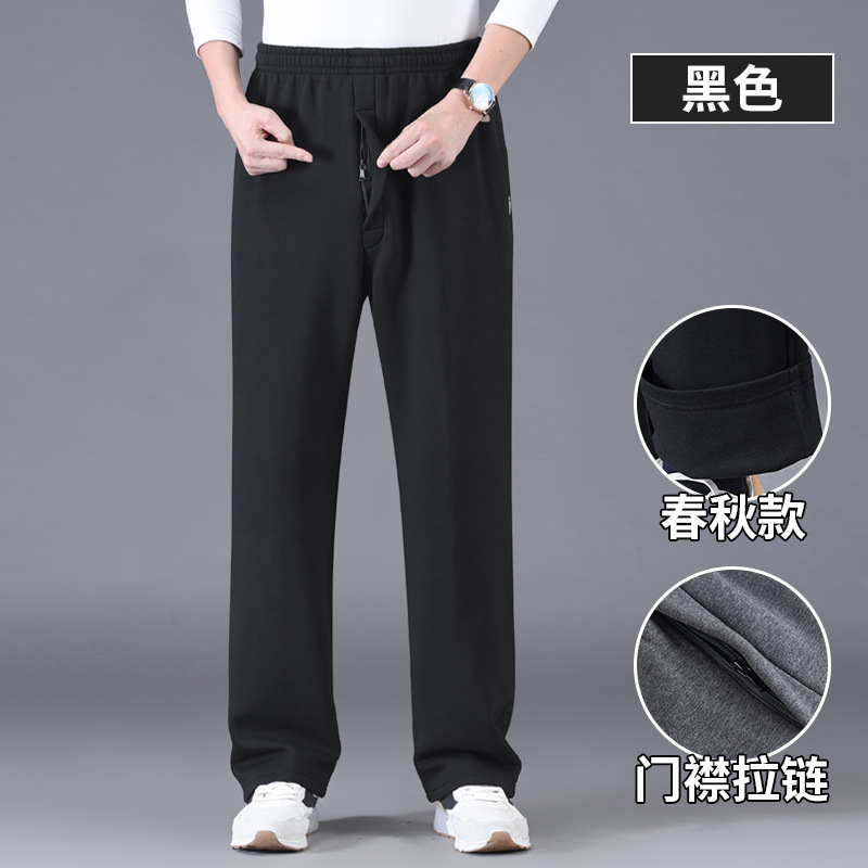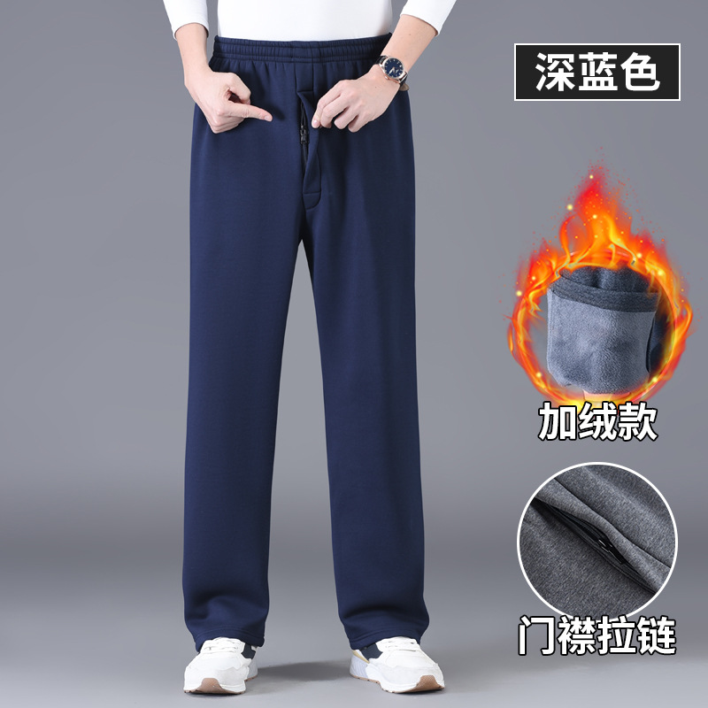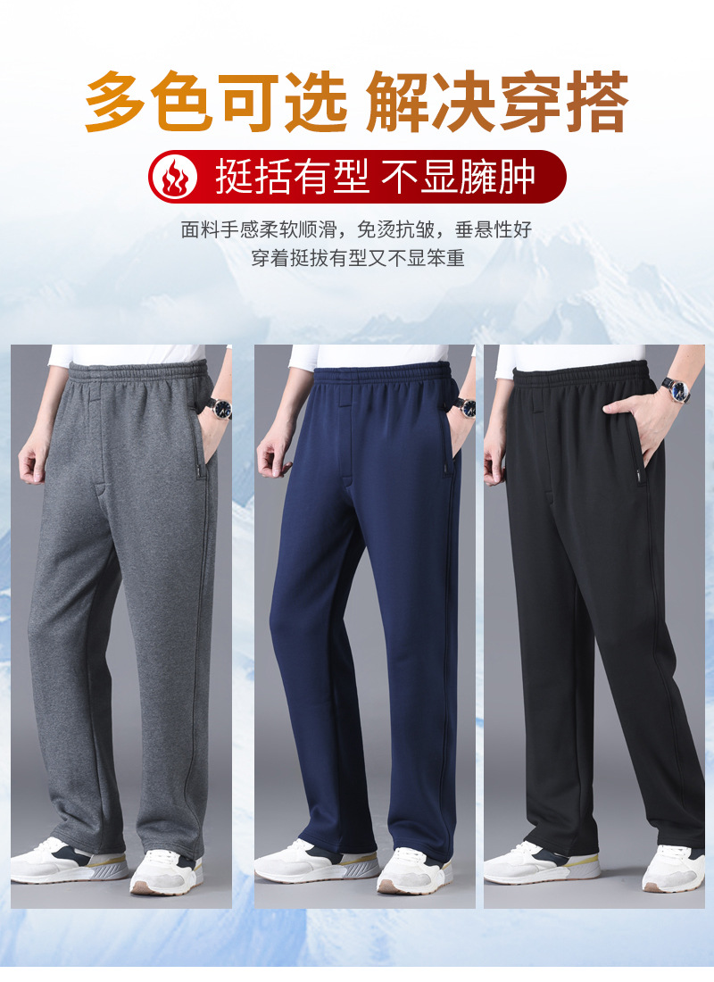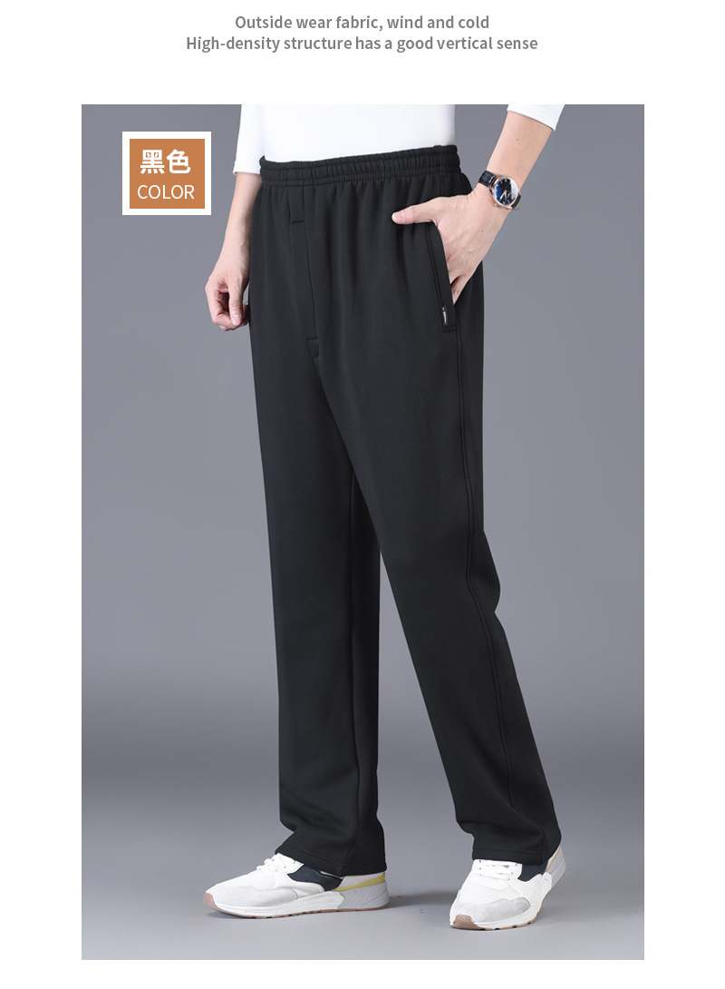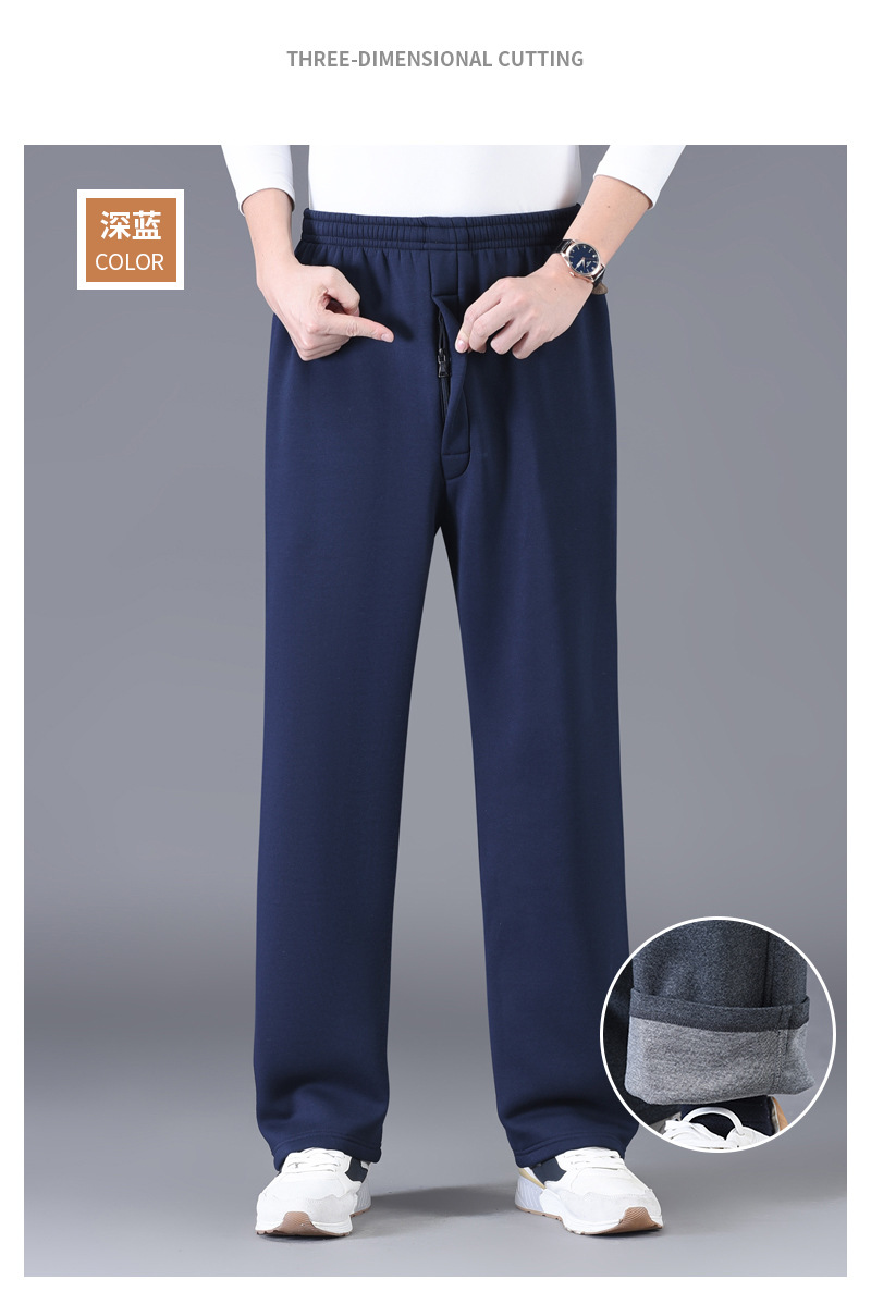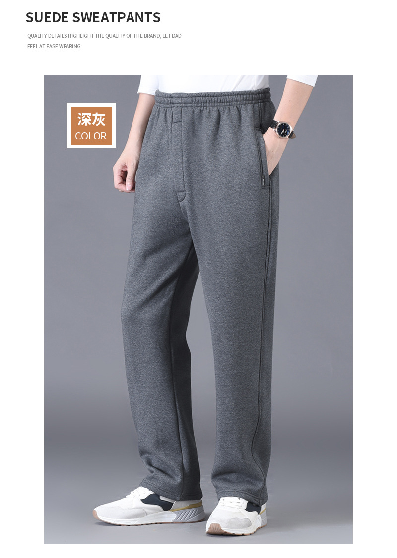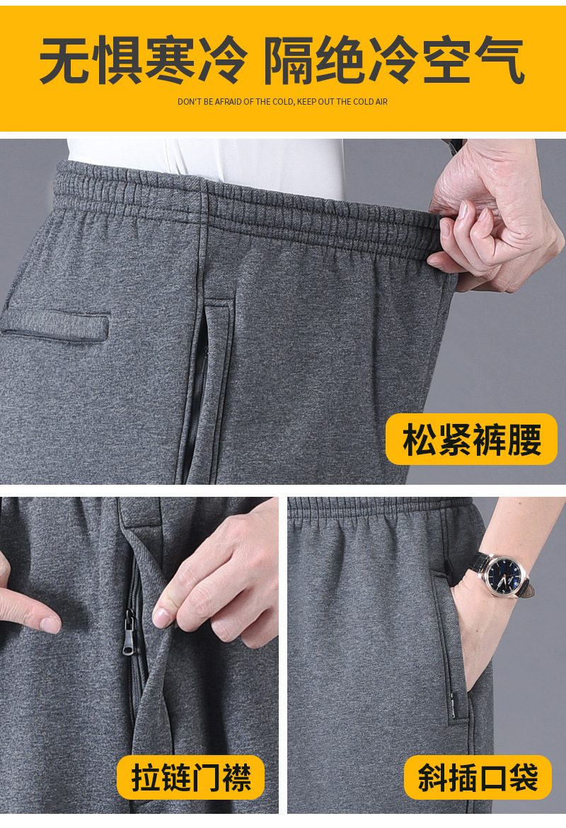 남성 중년 및 노인 기모 두꺼운 스웨트 팬츠 느슨한 프론트 플래켓 오픈 캐주얼 허리 바지스토어 가기