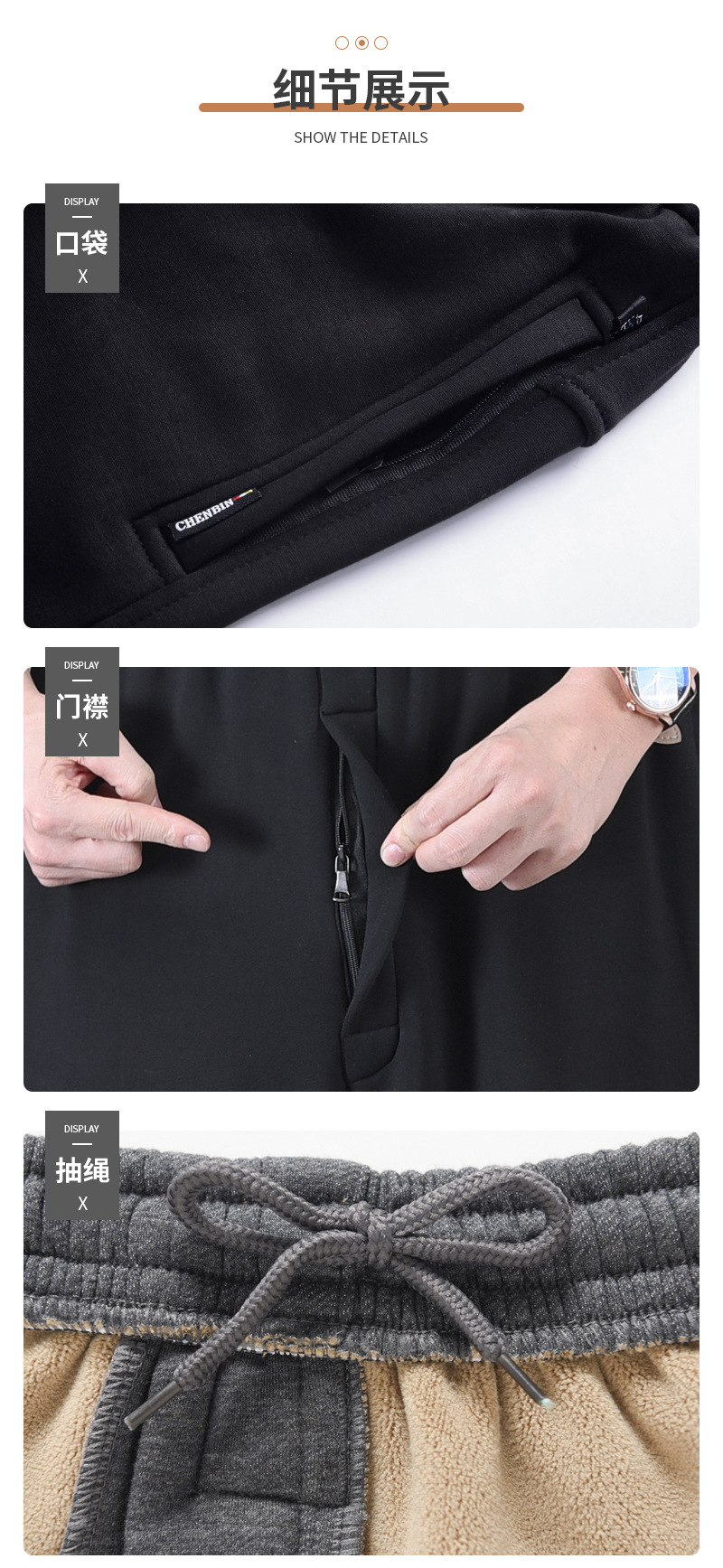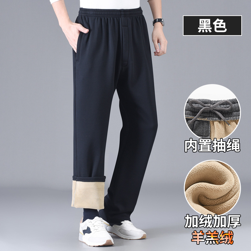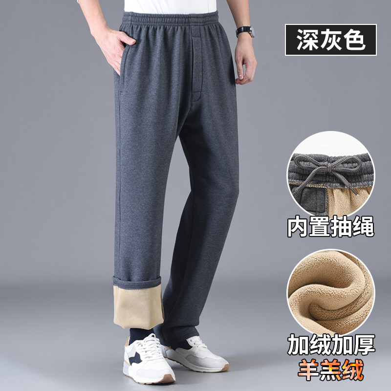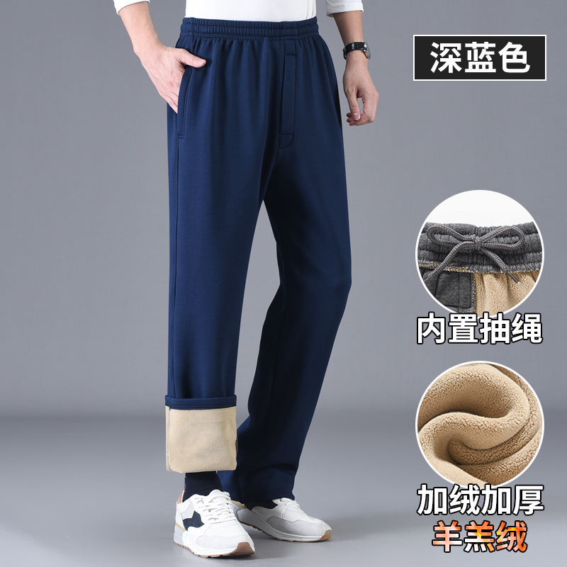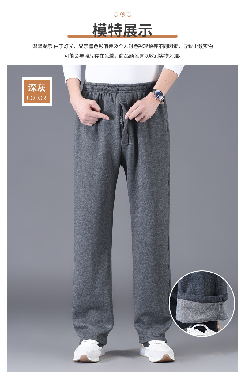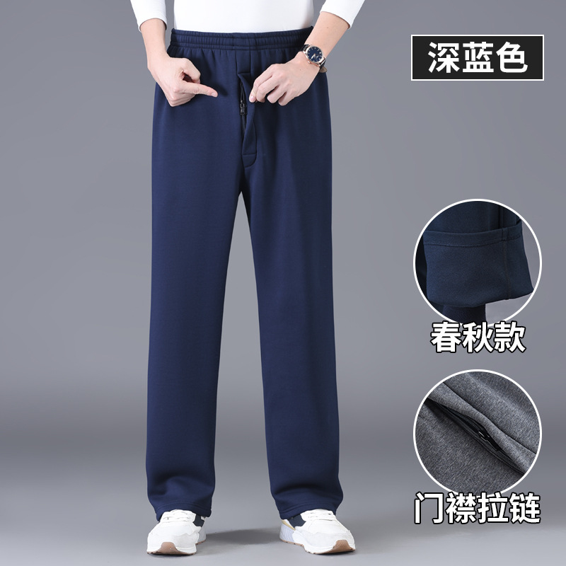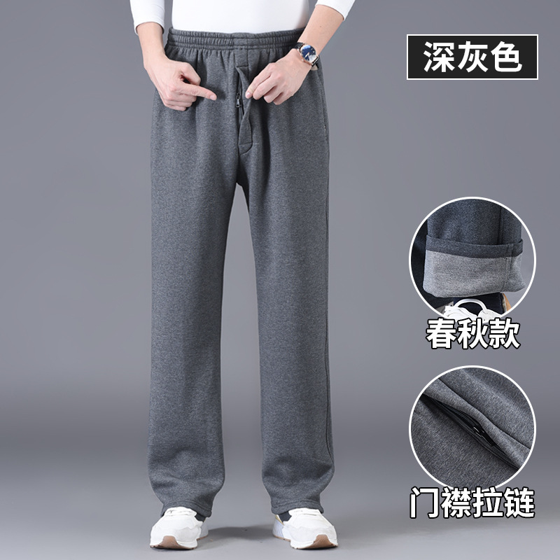 남성 중년 및 노인 기모 두꺼운 스웨트 팬츠 느슨한 프론트 플래켓 오픈 캐주얼 허리 바지스토어 가기