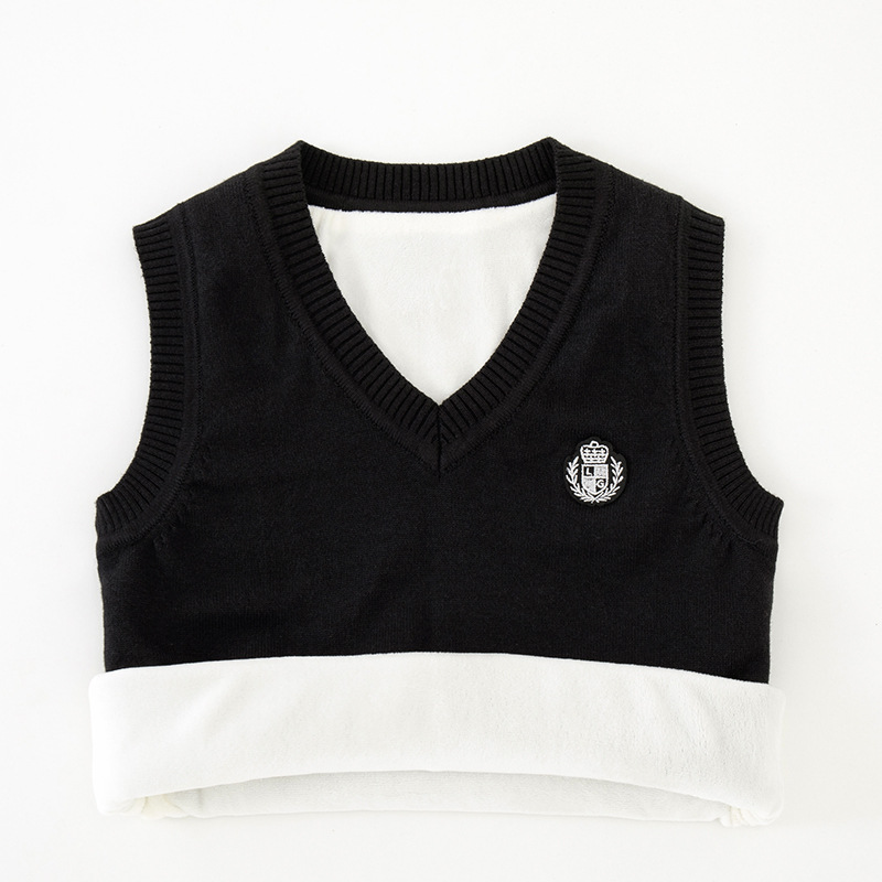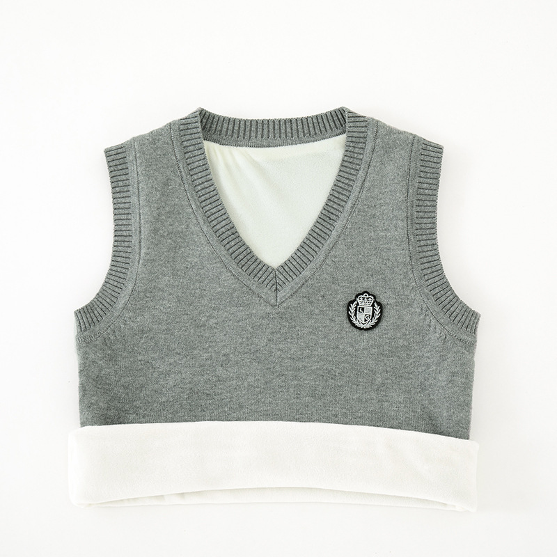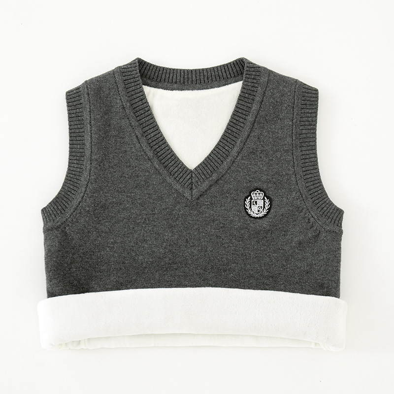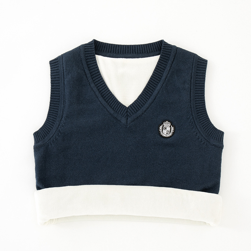 어린이 스웨터 조끼 겨울 기모 대학 스타일 교복 탑 코튼 스웨터 니트 V 넥 어린이 조끼 도매스토어 가기