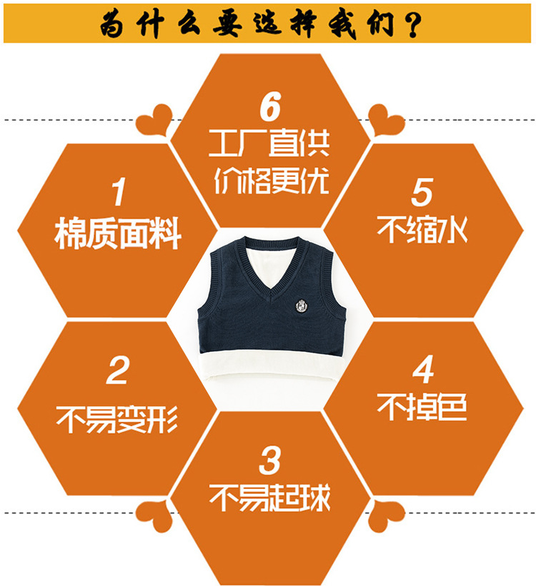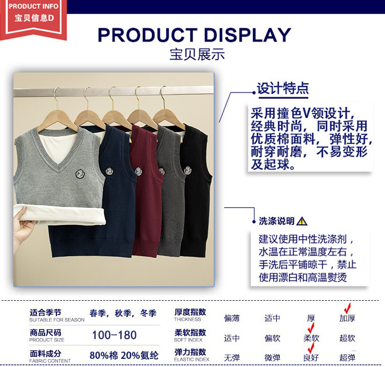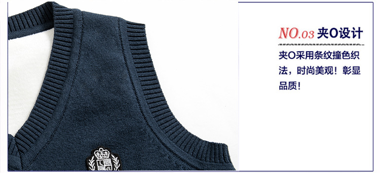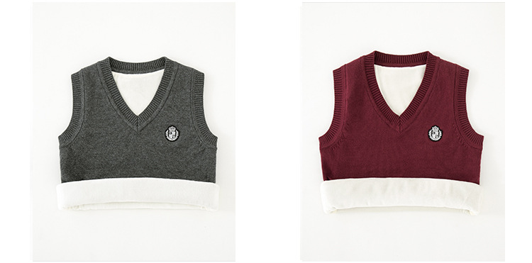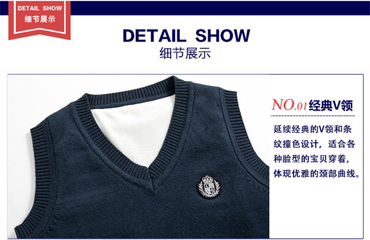 어린이 스웨터 조끼 겨울 기모 대학 스타일 교복 탑 코튼 스웨터 니트 V 넥 어린이 조끼 도매