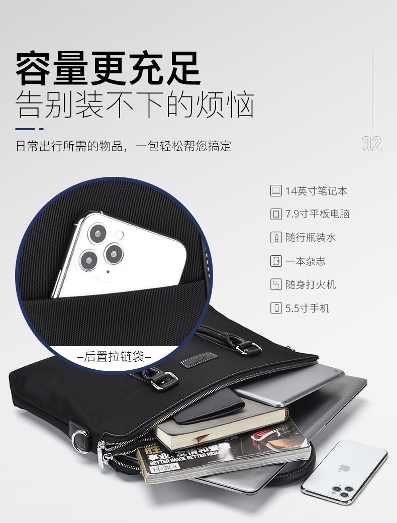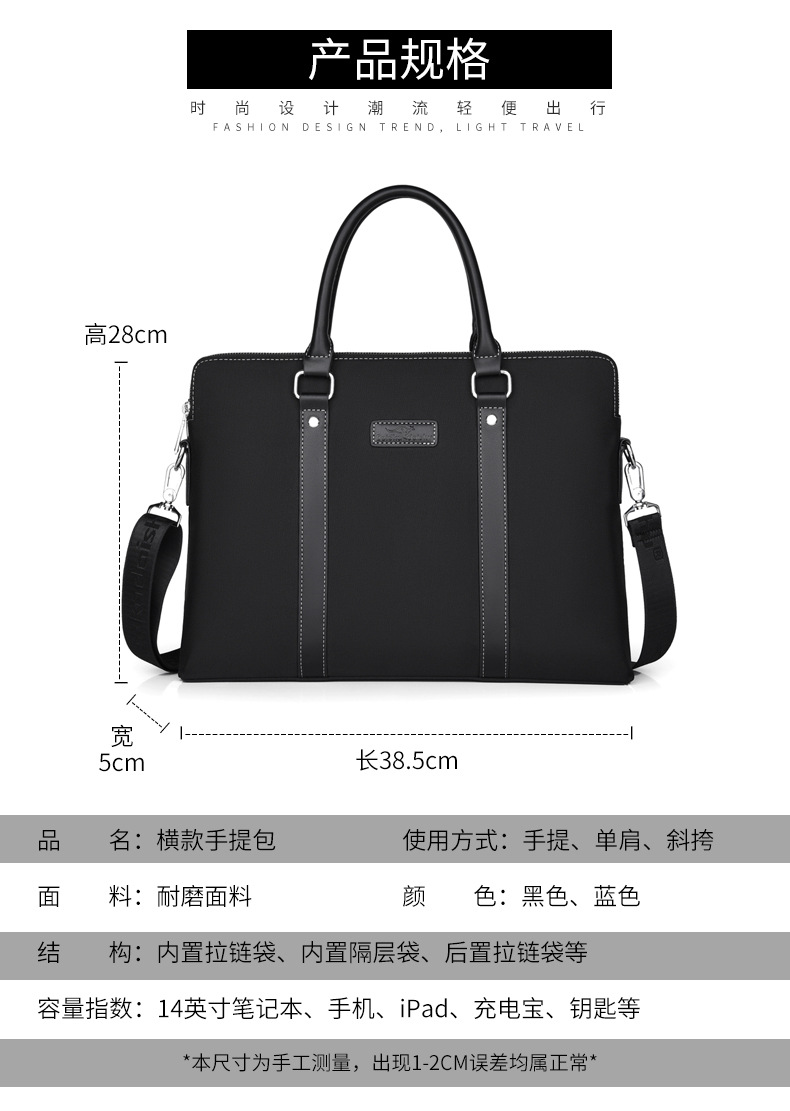 남성용 가방 비즈니스 캐주얼 서류 가방 더블 레이어 공간 대용량 핸드백 남성 수평 어깨 크로스 바디 백 트렌디스토어 가기