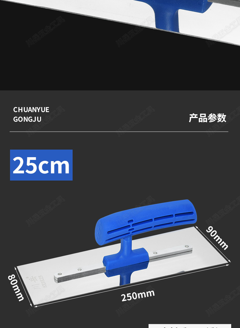 • 3D 파란색 손잡이 스테인레스 스틸 25cm 흙손