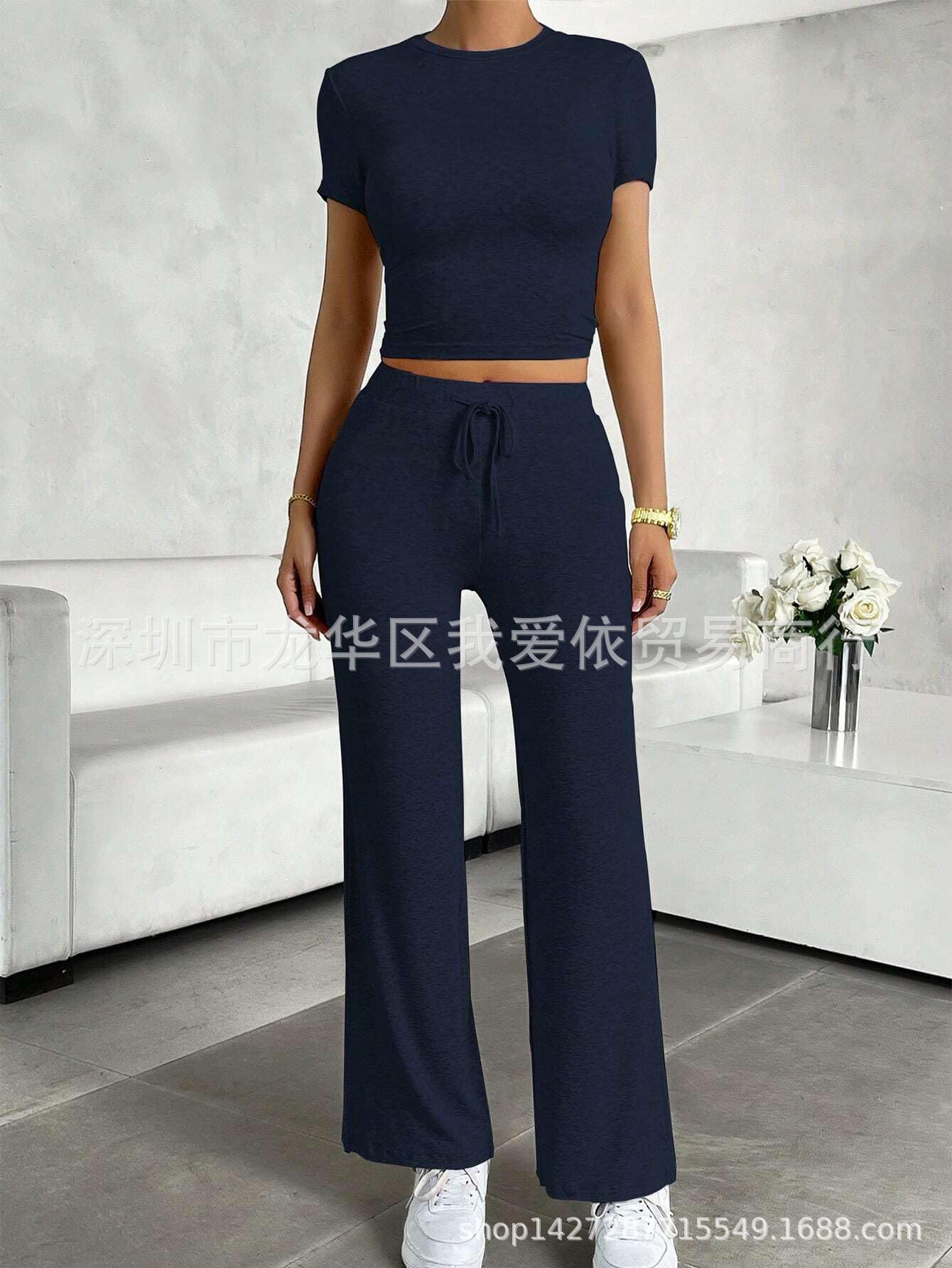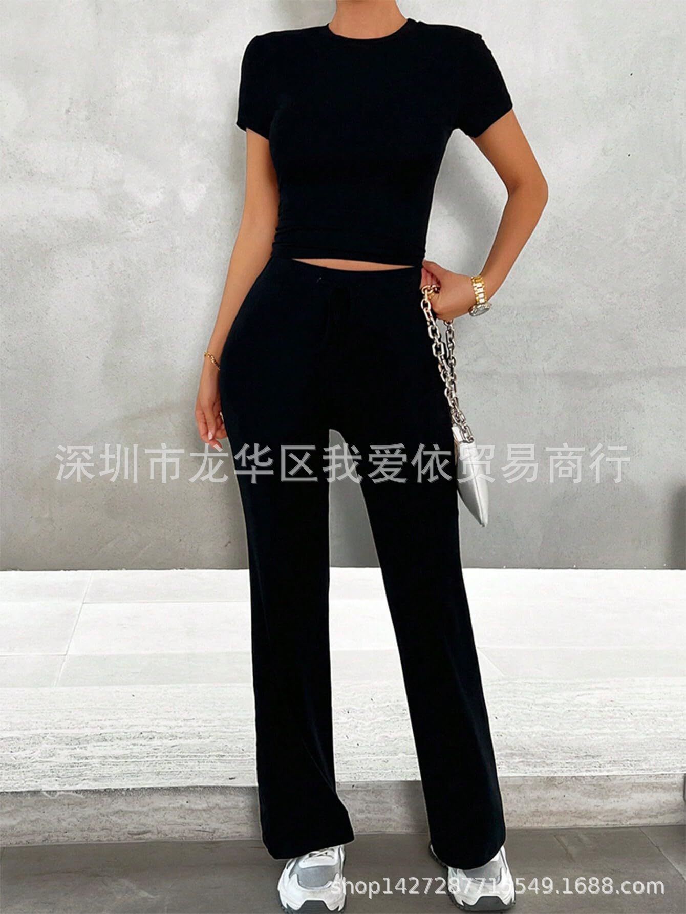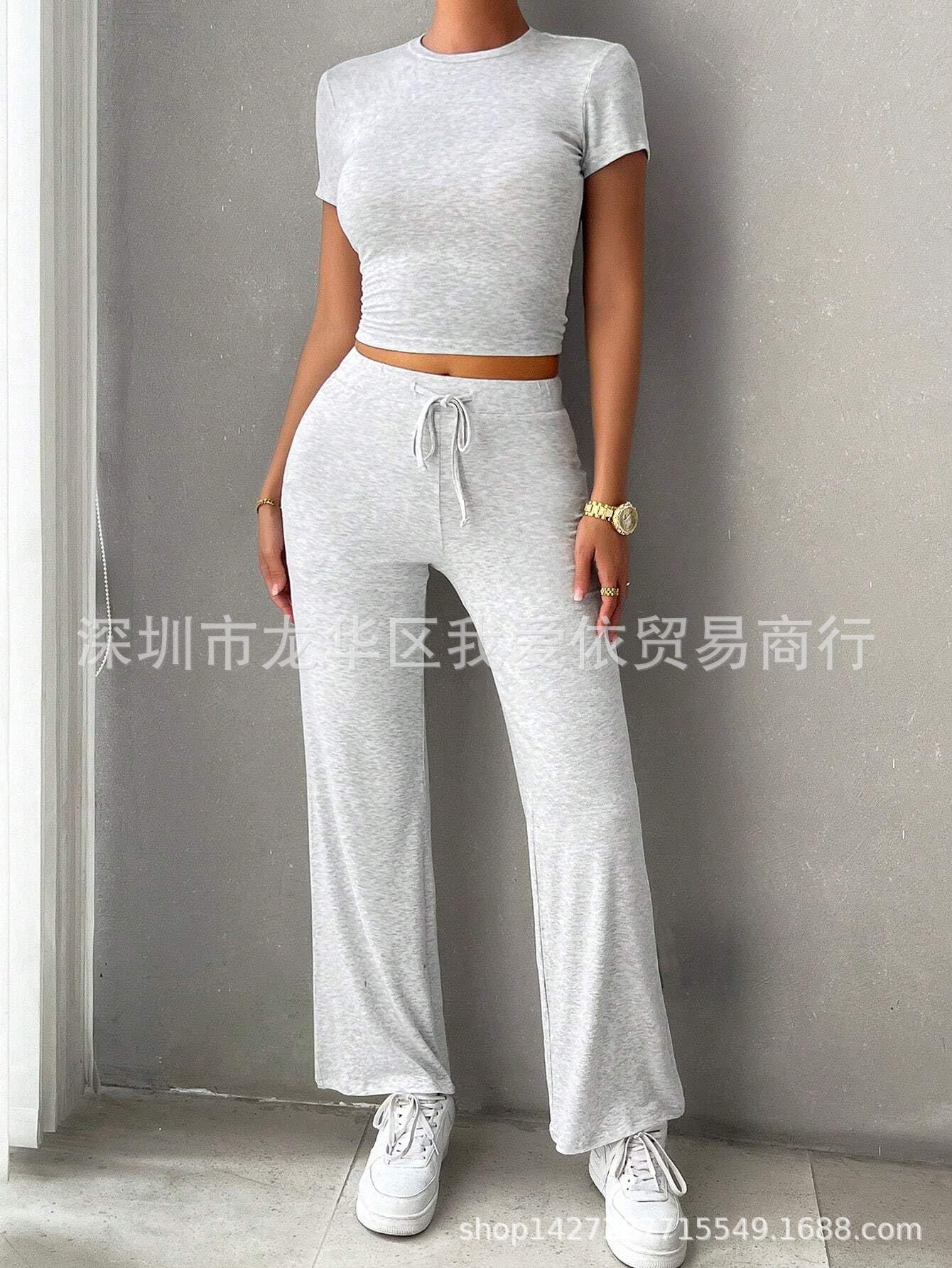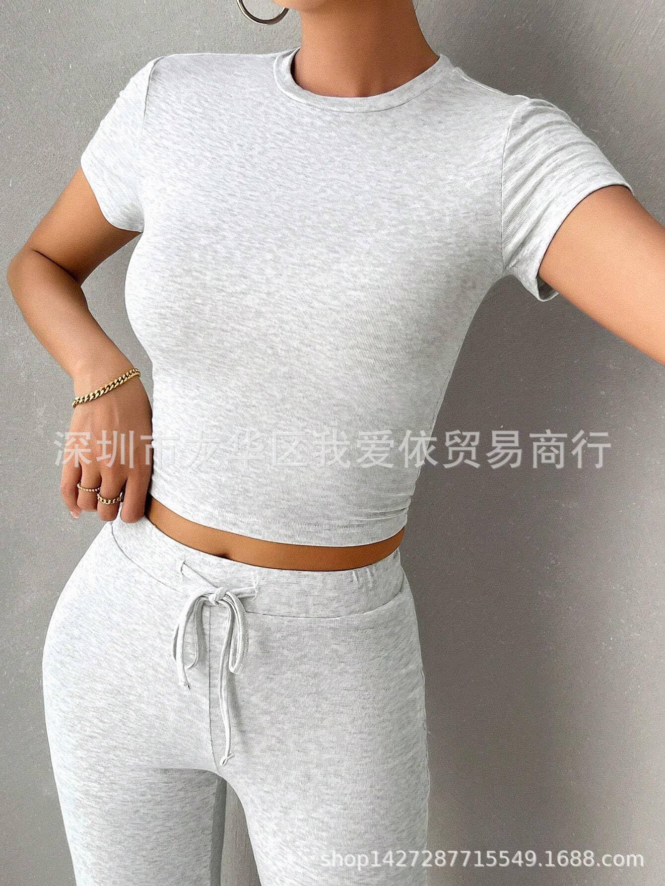 국경 간 대외 무역 유럽과 미국 여성 의류 2024 봄과 여름 기질 단색 둥근 목 도시 레저 패션 세트