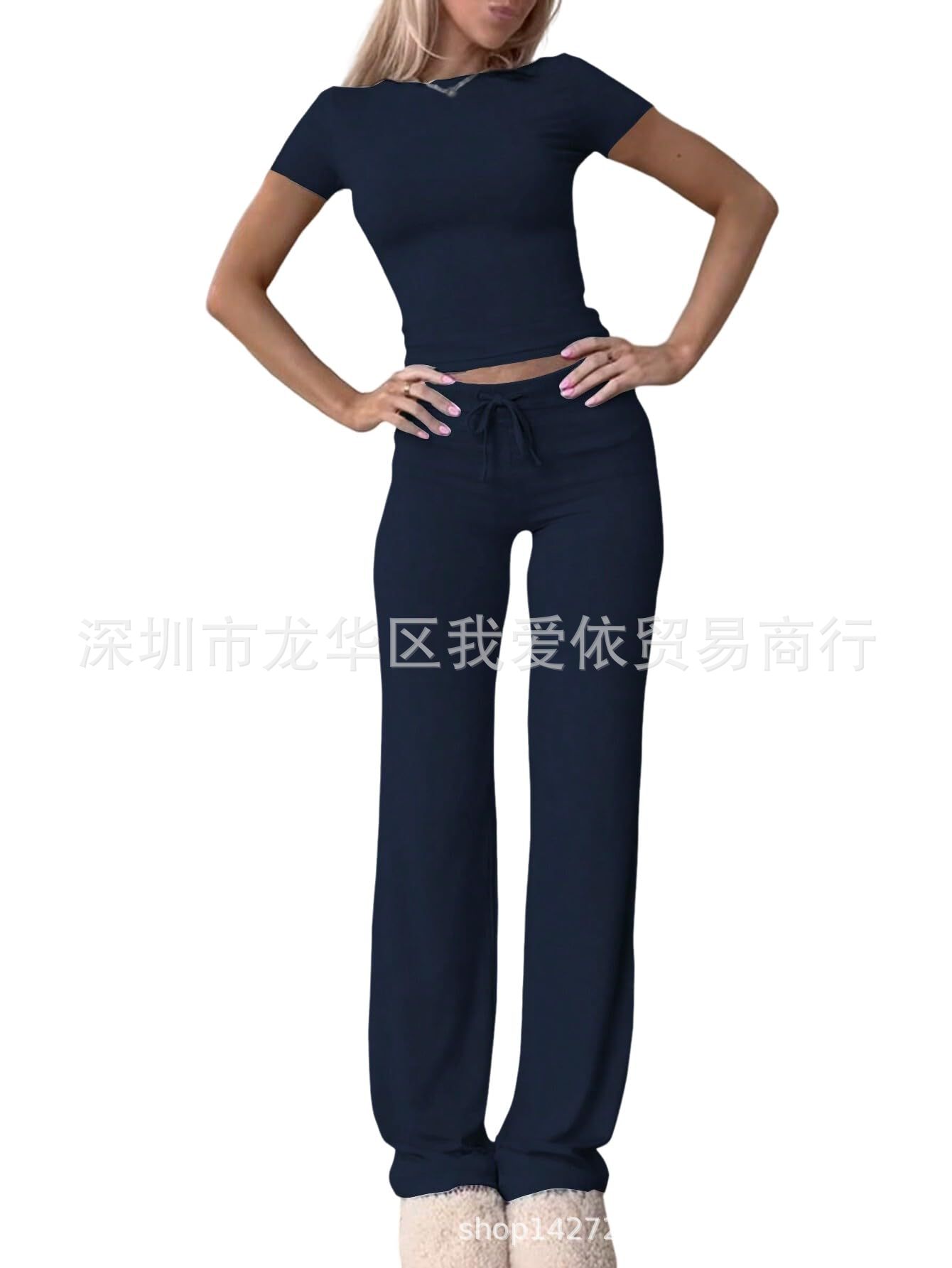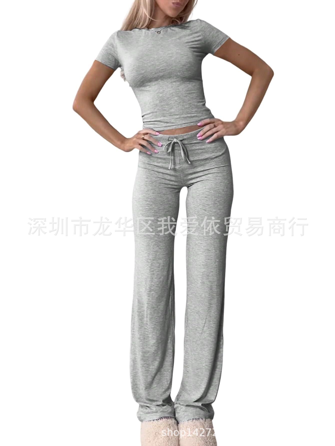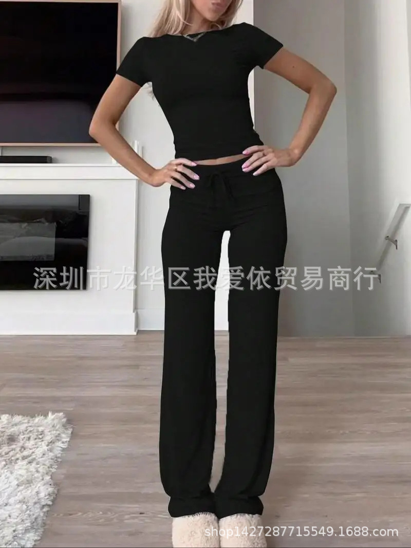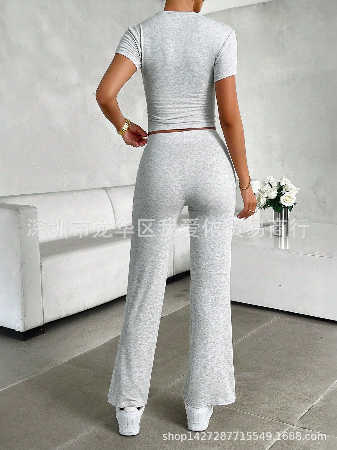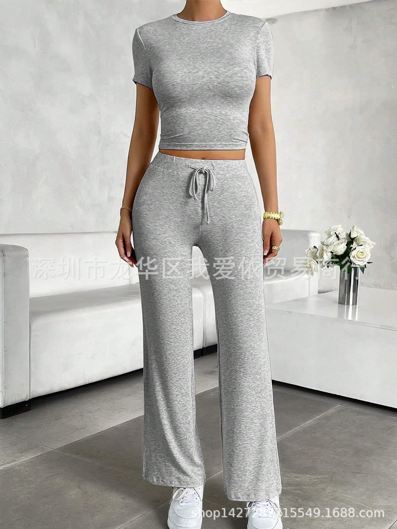 국경 간 대외 무역 유럽과 미국 여성 의류 2024 봄과 여름 기질 단색 둥근 목 도시 레저 패션 세트