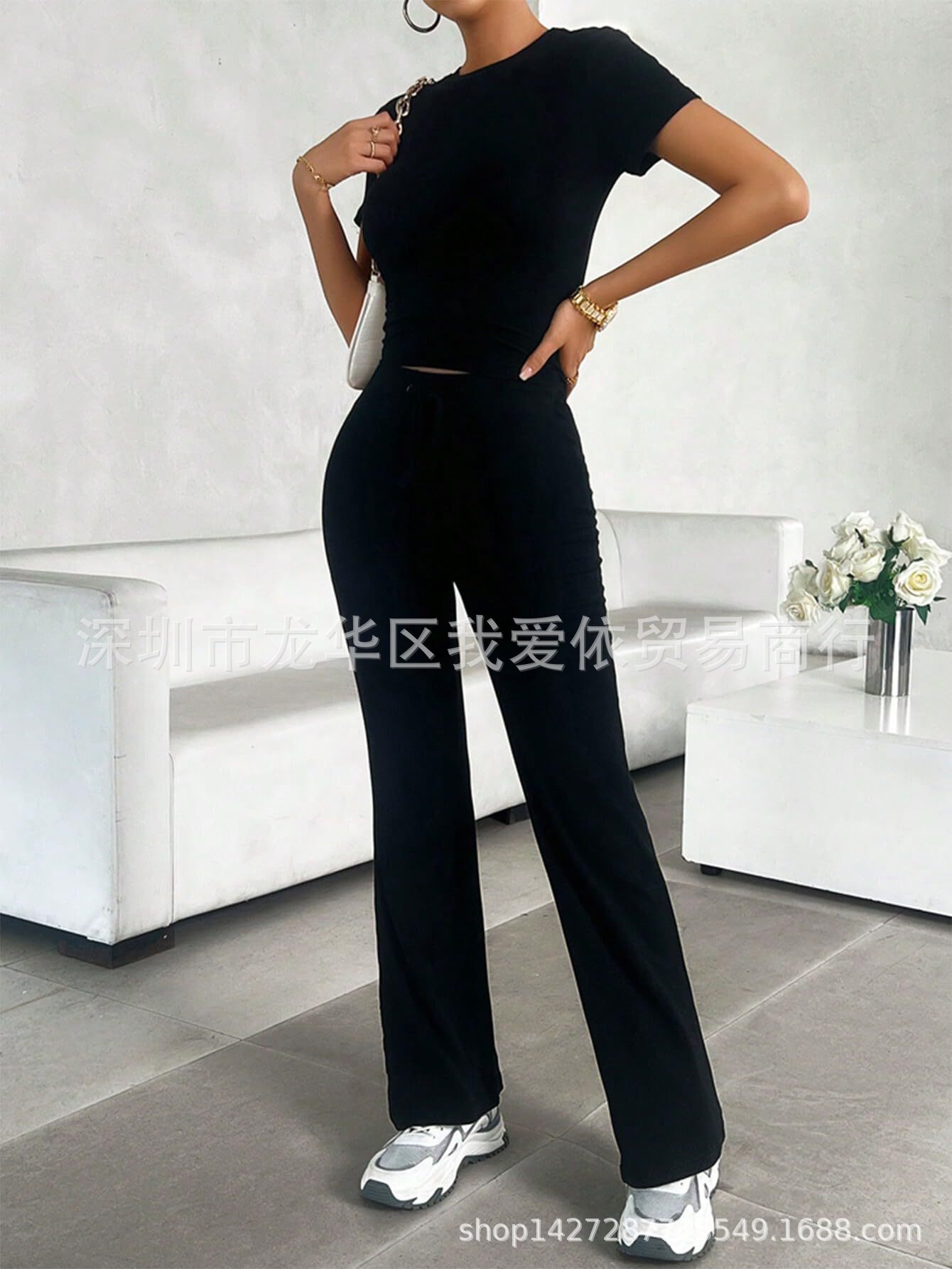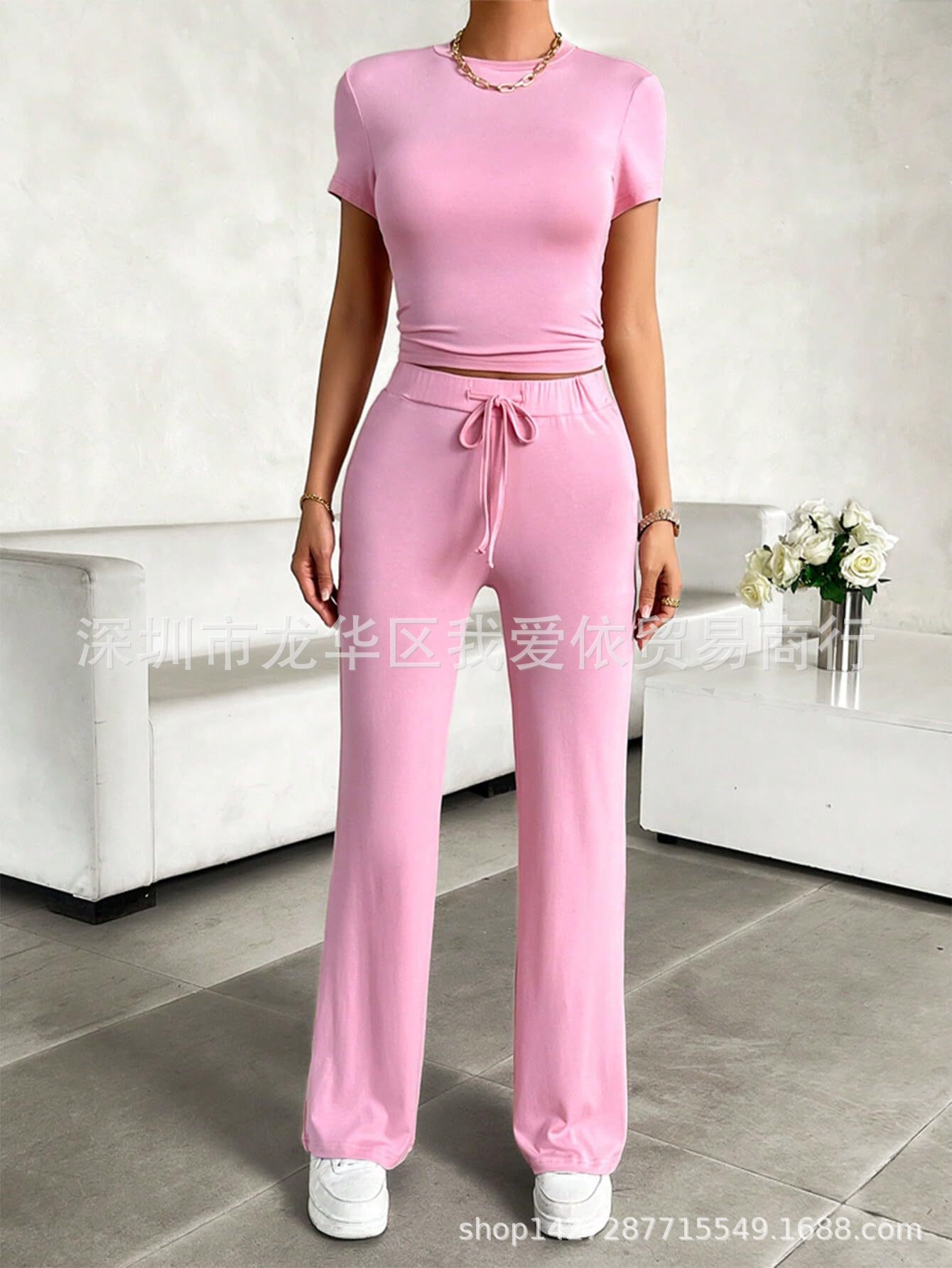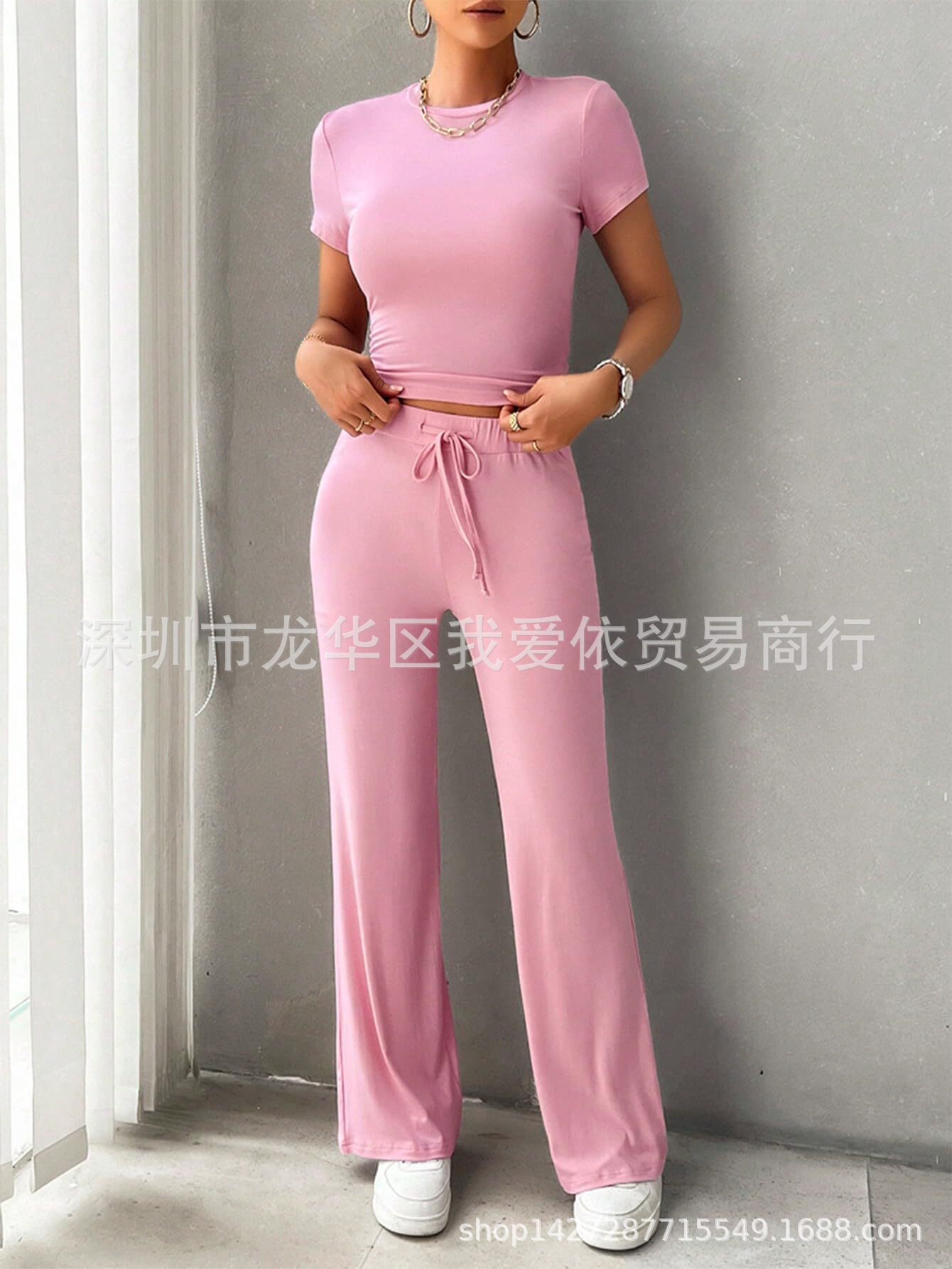 국경 간 대외 무역 유럽과 미국 여성 의류 2024 봄과 여름 기질 단색 둥근 목 도시 레저 패션 세트스토어 가기