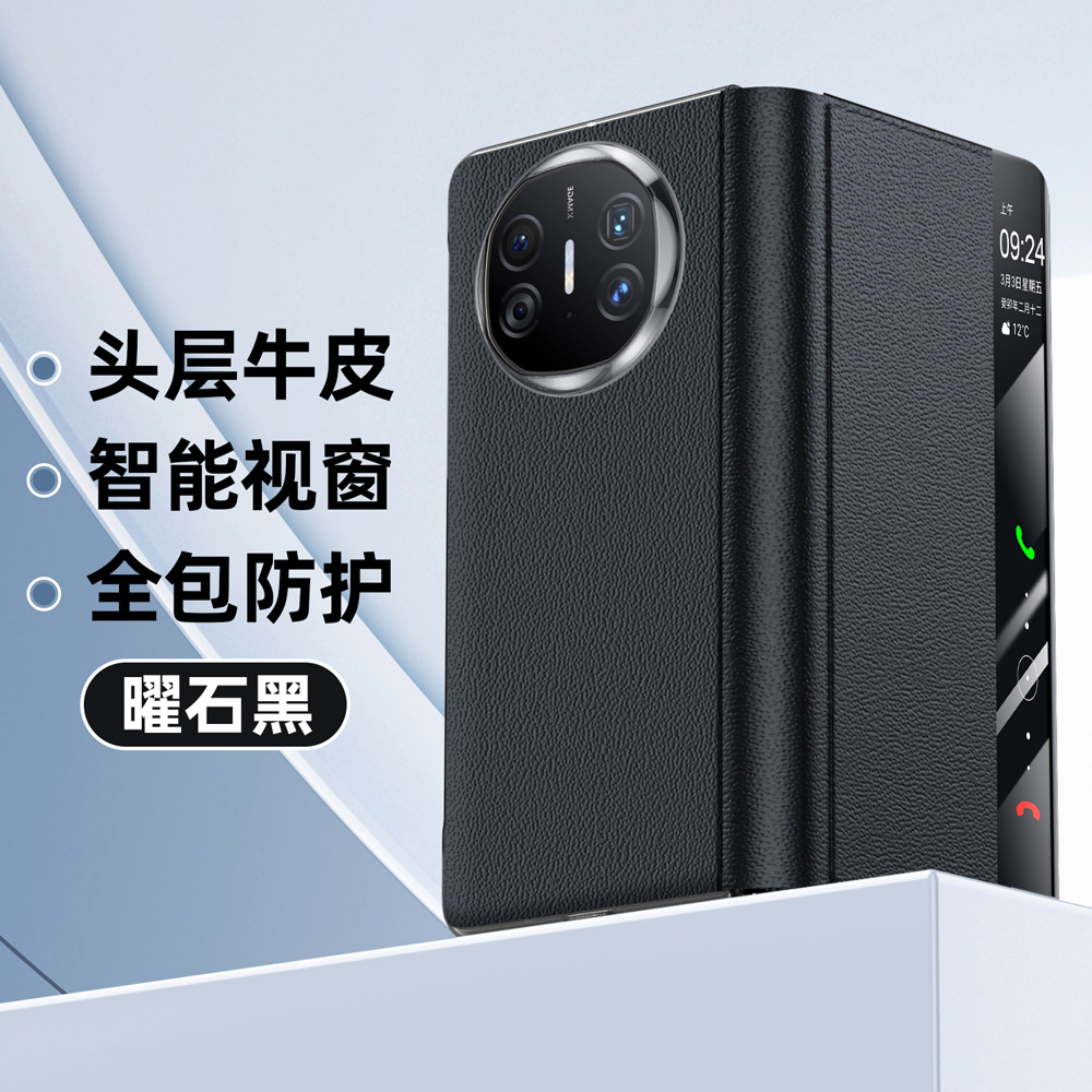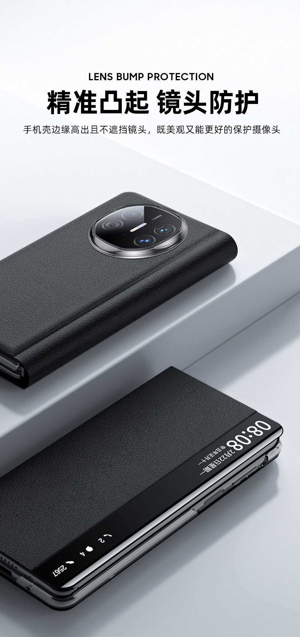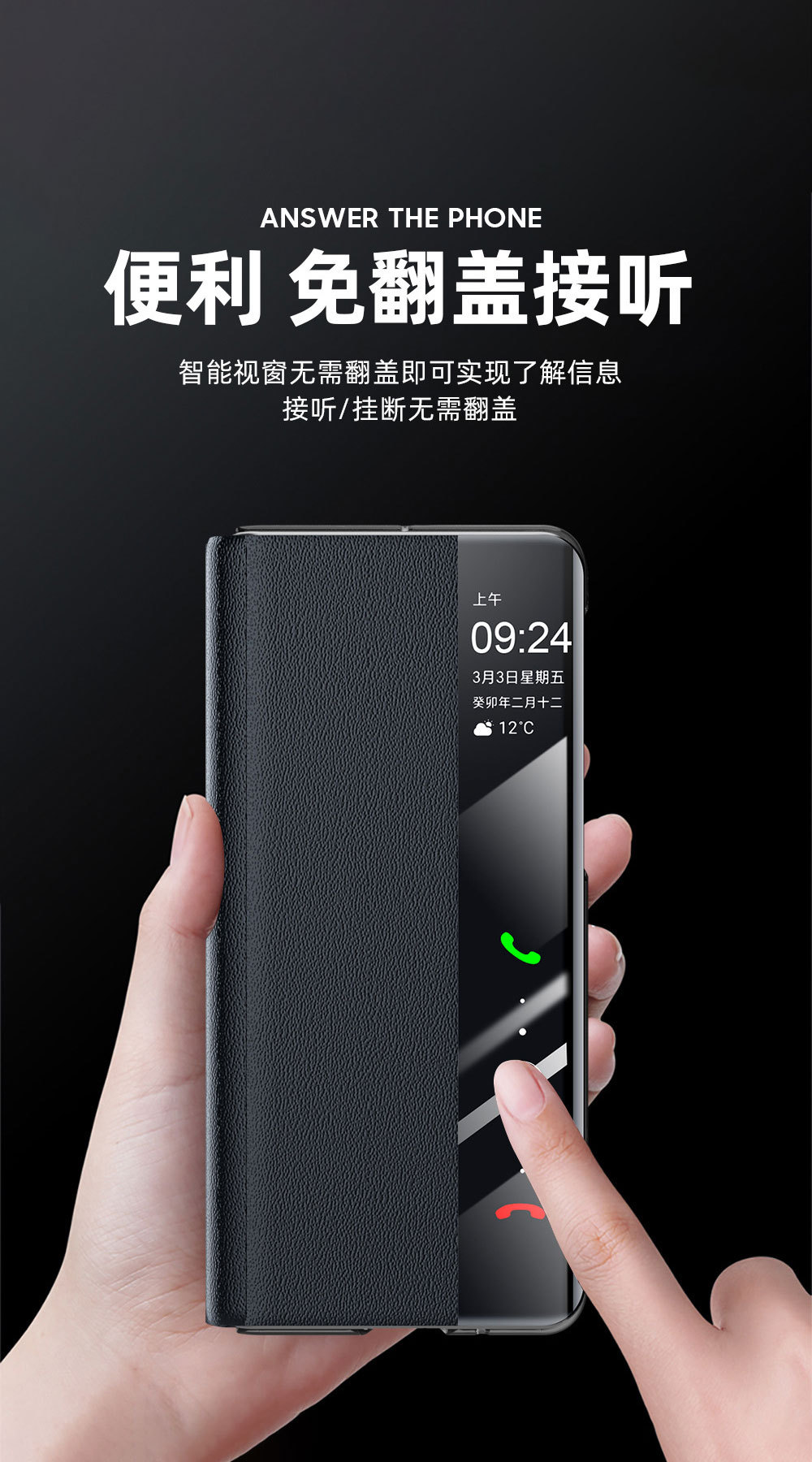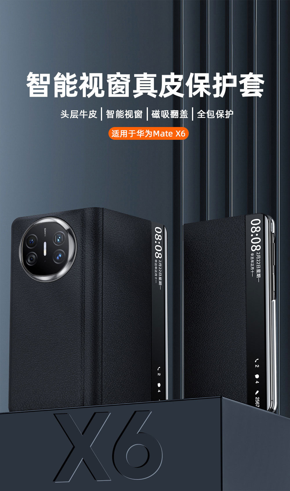 화웨이 MateX6 가죽 전화 케이스 진짜 Cowhide Nappa 핀홀 X5 스마트 창 브래킷 보호 커버스토어 가기