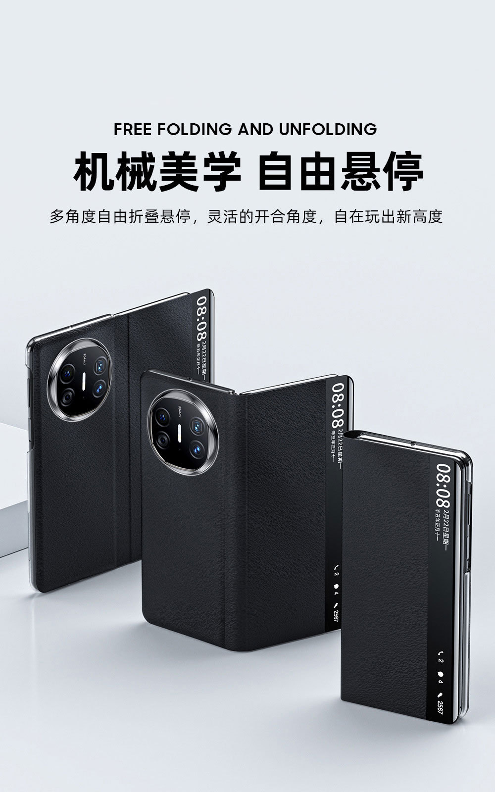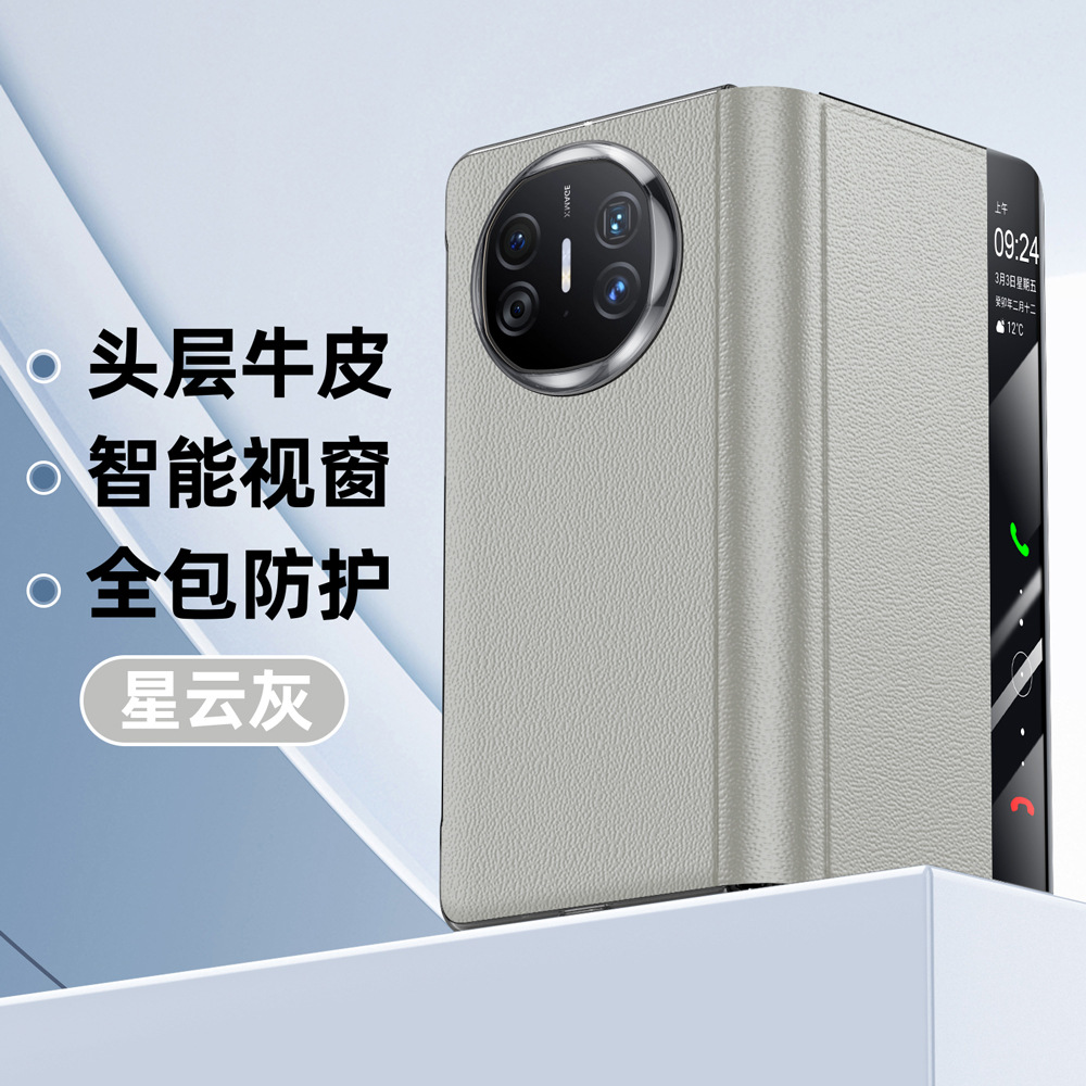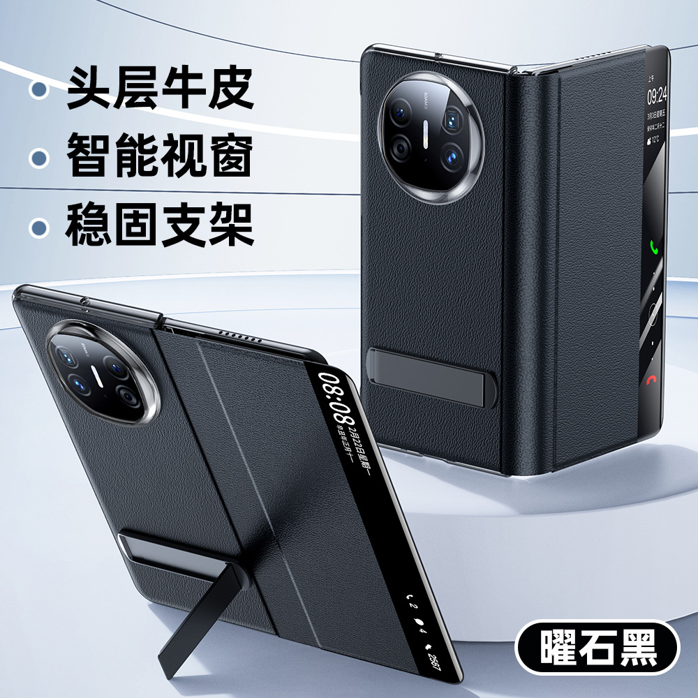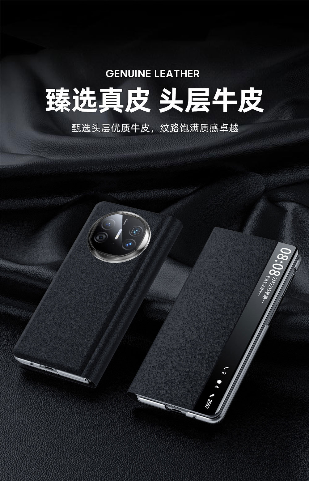 화웨이 MateX6 가죽 전화 케이스 진짜 Cowhide Nappa 핀홀 X5 스마트 창 브래킷 보호 커버스토어 가기