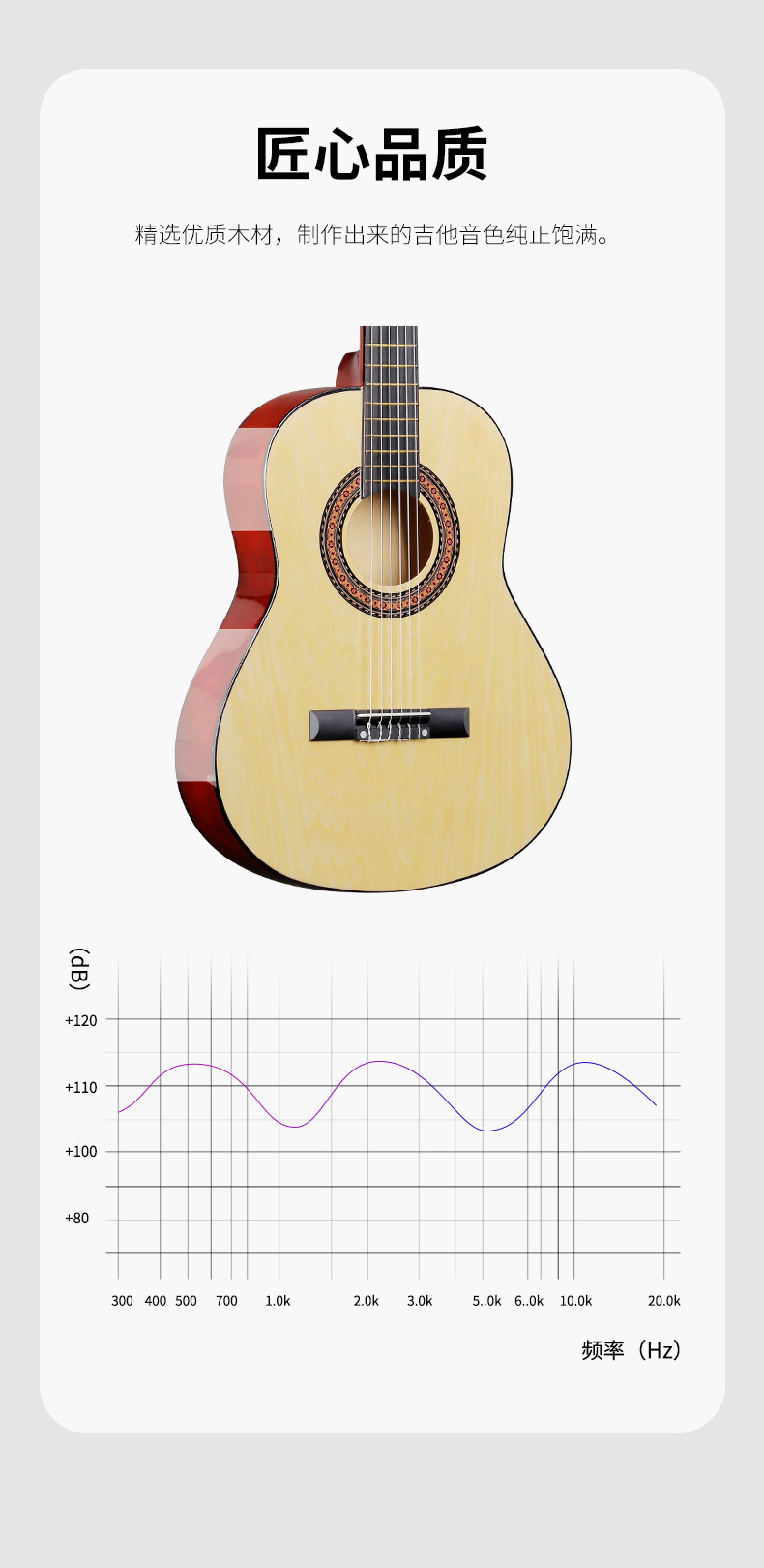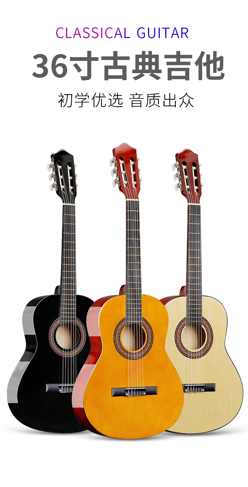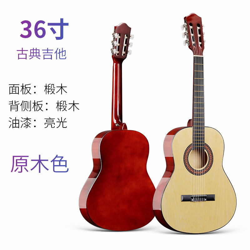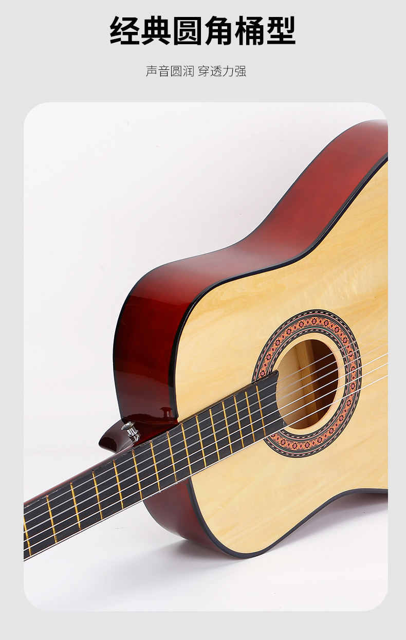 고전적인 둥근 나무 기타 36 인치 밝은 나무 기타 클래식 성인 어린이 기타 제조 업체 도매스토어 가기