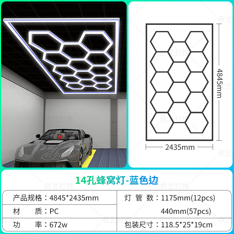 국경을 넘는 새로운 벌집 램프 자동차 작업장 220V 세차장 벌집 천장 형광 램프 자동차 뷰티 스테이션 램프스토어 가기