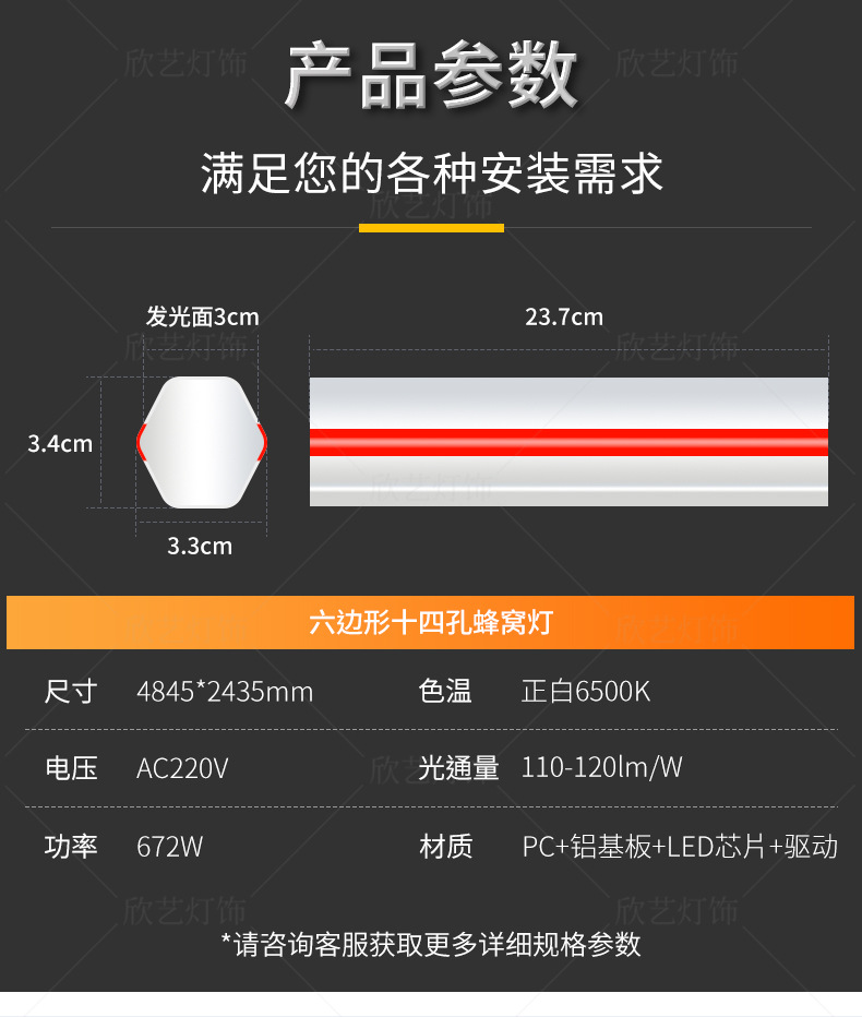 국경을 넘는 새로운 벌집 램프 자동차 작업장 220V 세차장 벌집 천장 형광 램프 자동차 뷰티 스테이션 램프