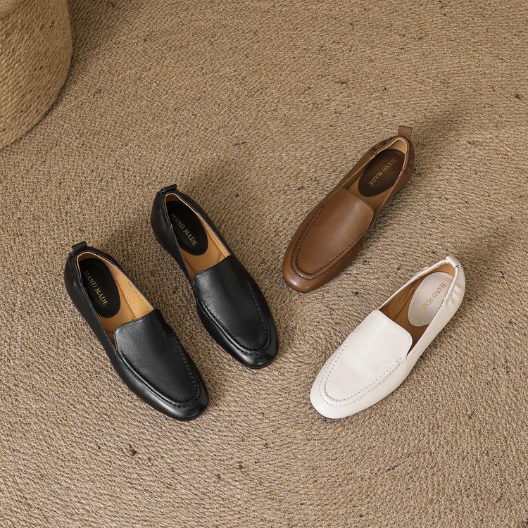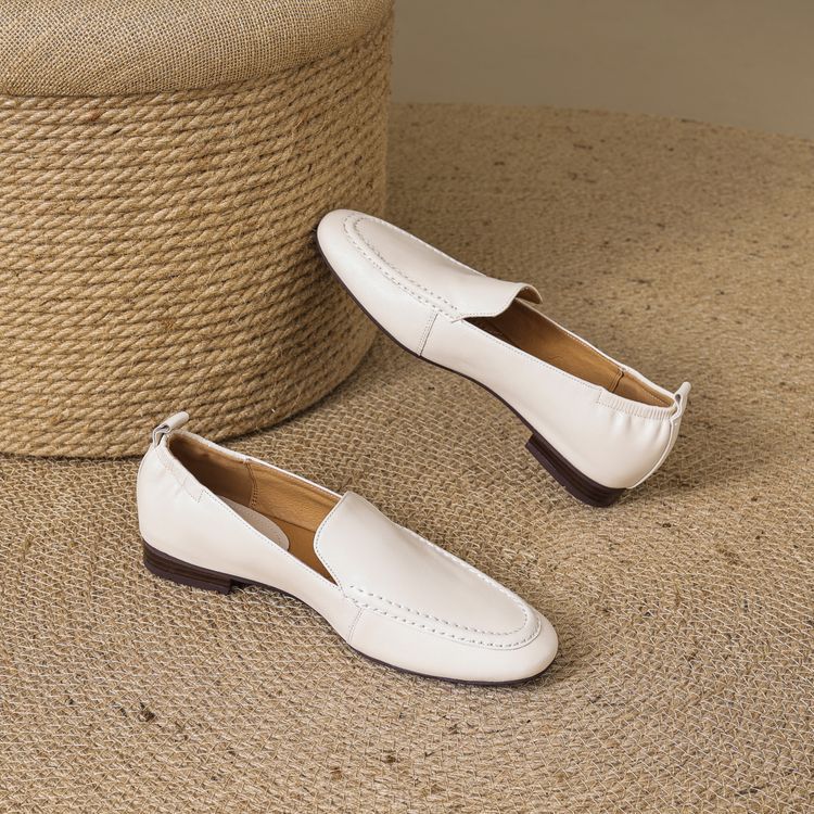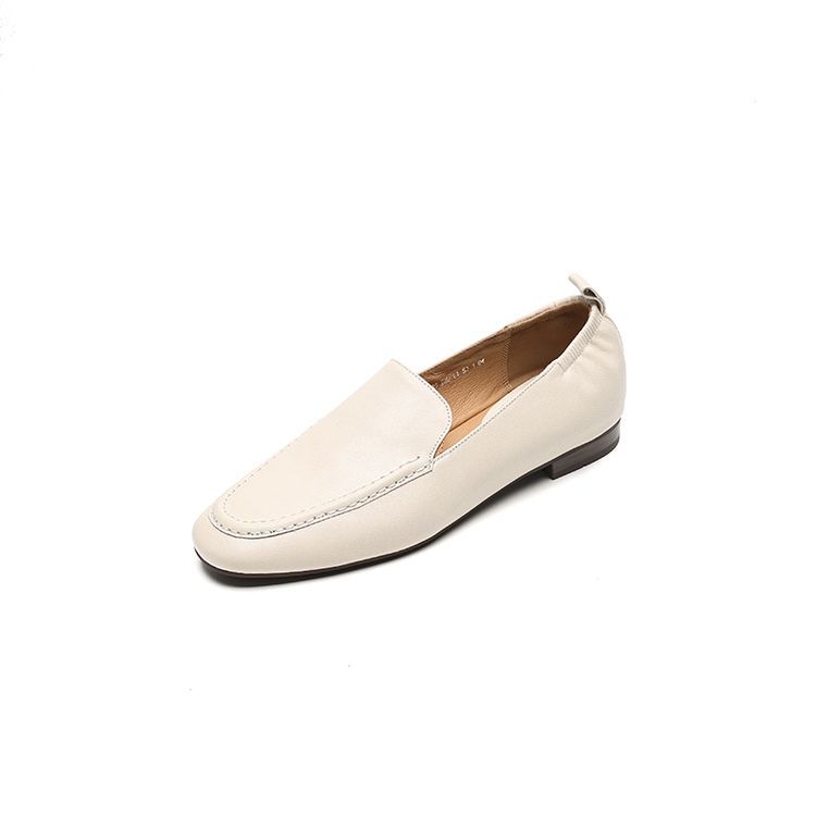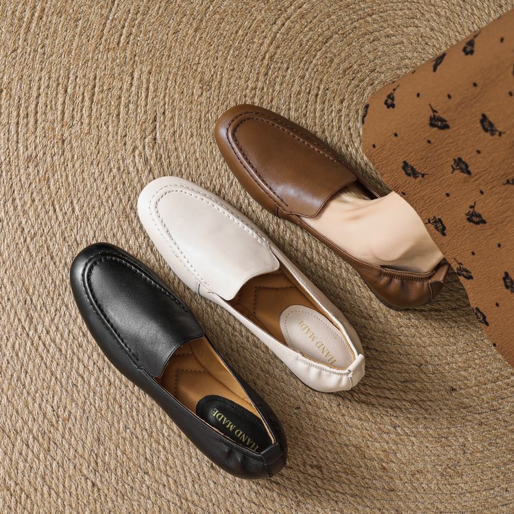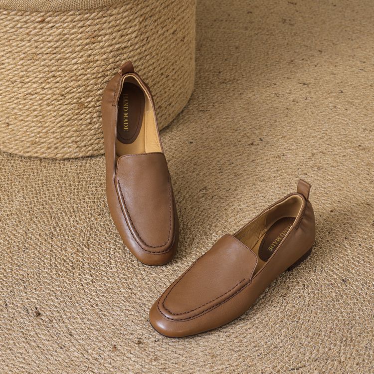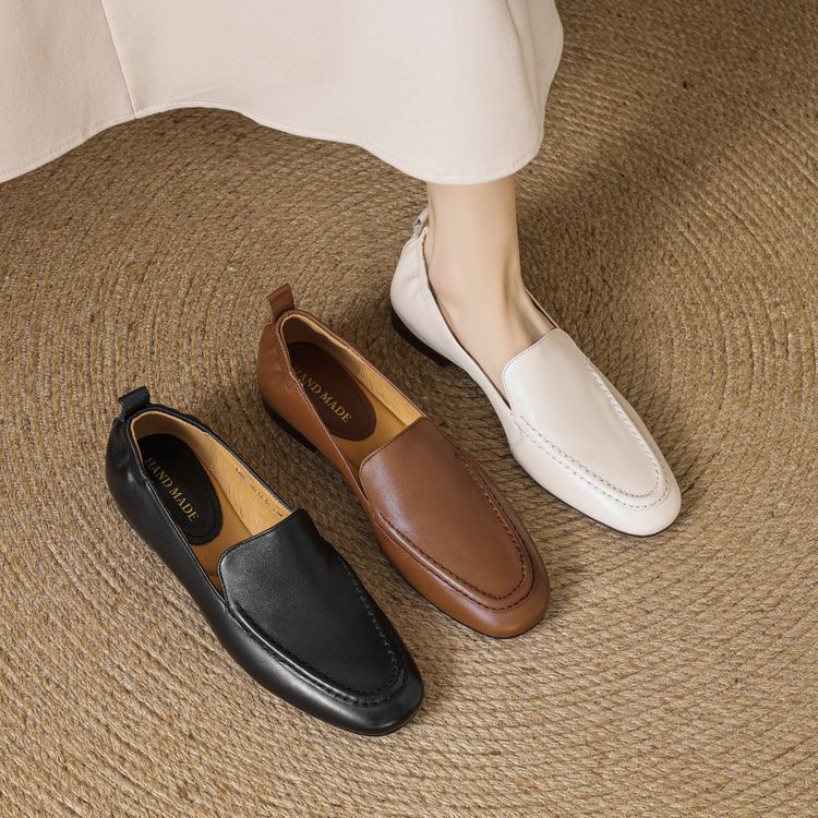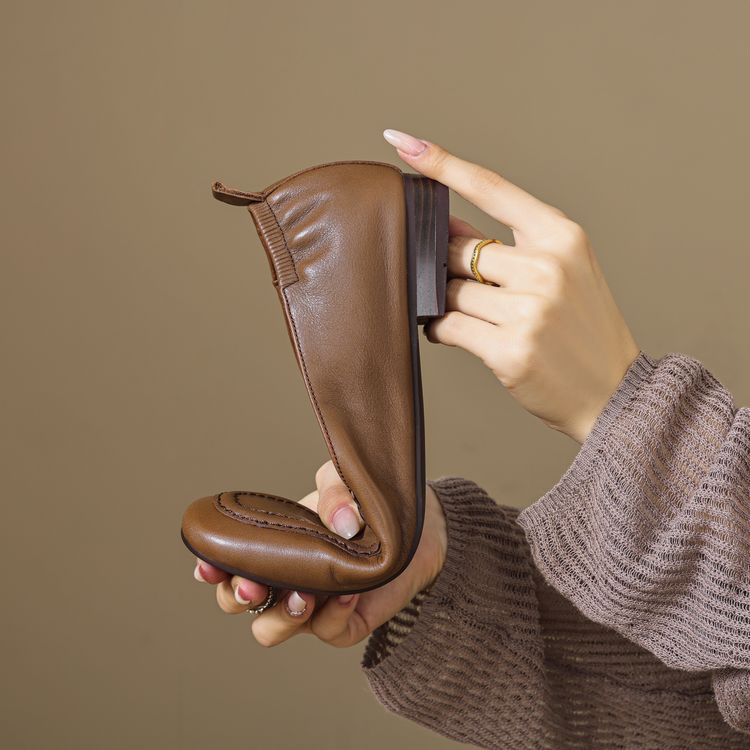 새로운 Cowhide Loafers 여성용 둥근 발가락 편안한 깊은 입 싱글 레이어 신발 세트 피트 크기 플랫 힐 로우 힐 신발 풀 가죽스토어 가기