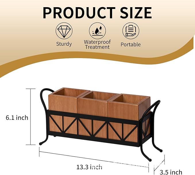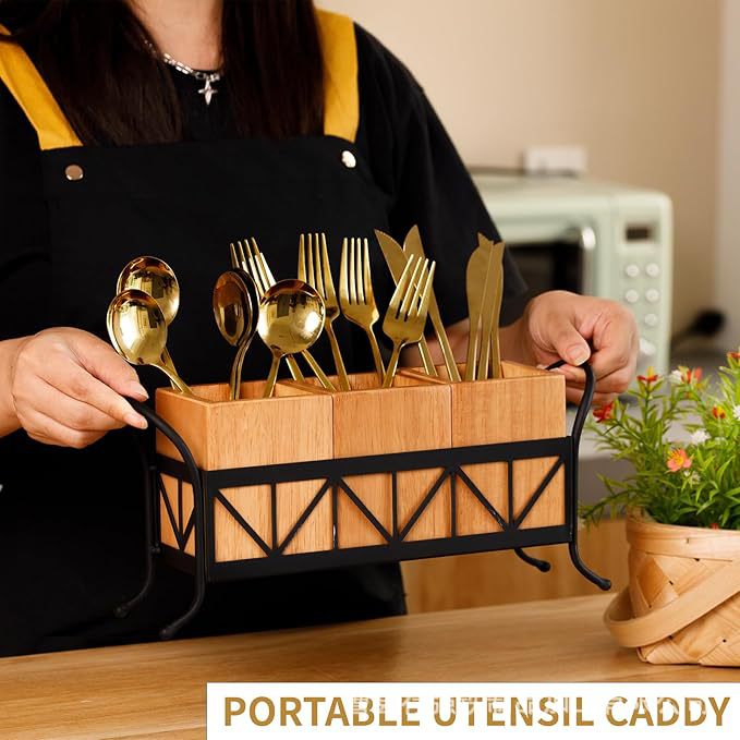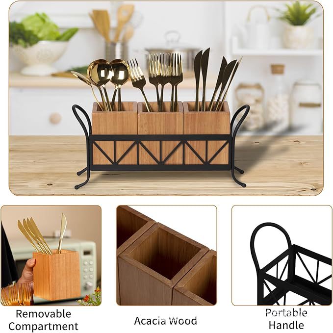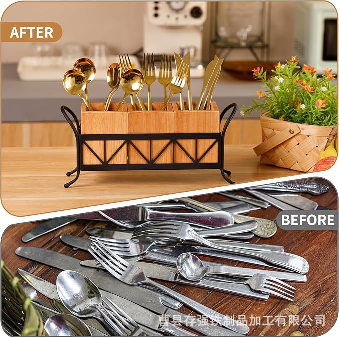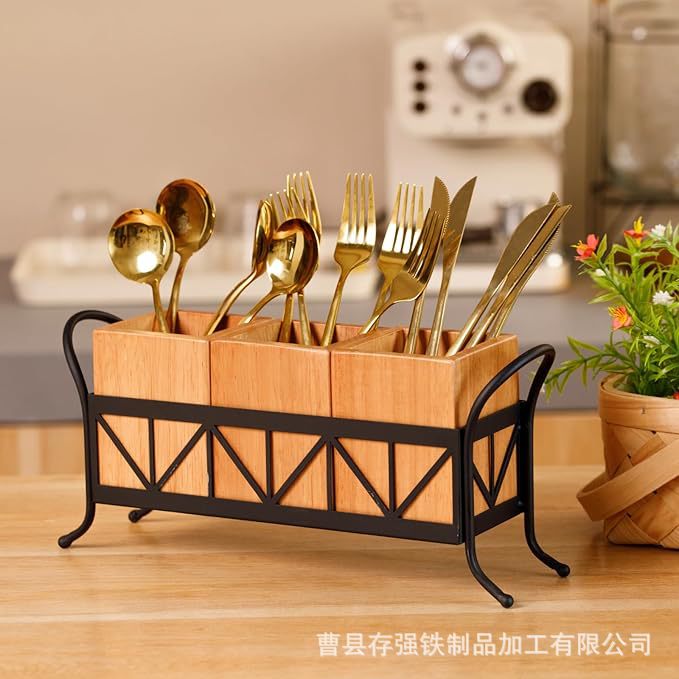 빈티지 식기 철 및 목재 조합 저장 상자 식기 정렬 랙 나이프와 포크 스푼 멀티 그리드 분류 저장 상자스토어 가기