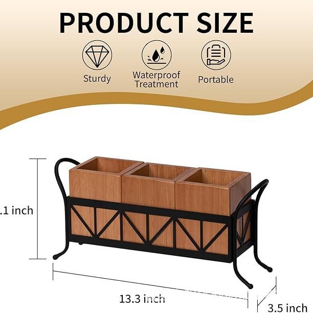 빈티지 식기 철 및 목재 조합 저장 상자 식기 정렬 랙 나이프와 포크 스푼 멀티 그리드 분류 저장 상자
