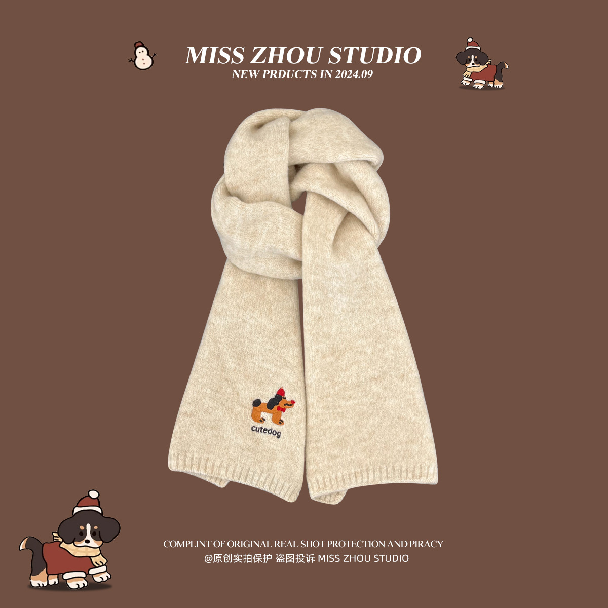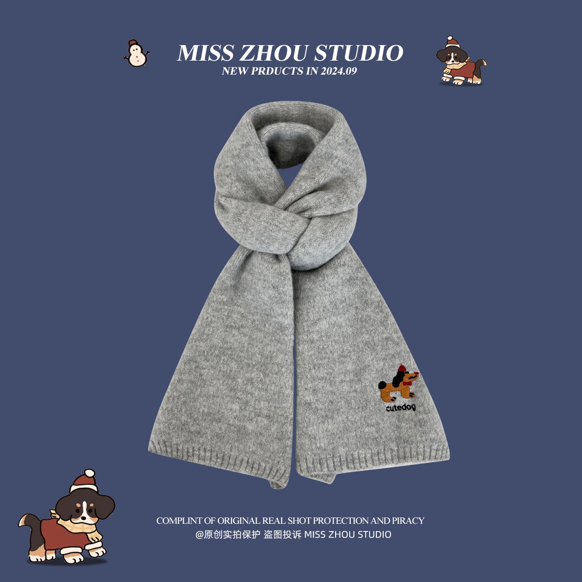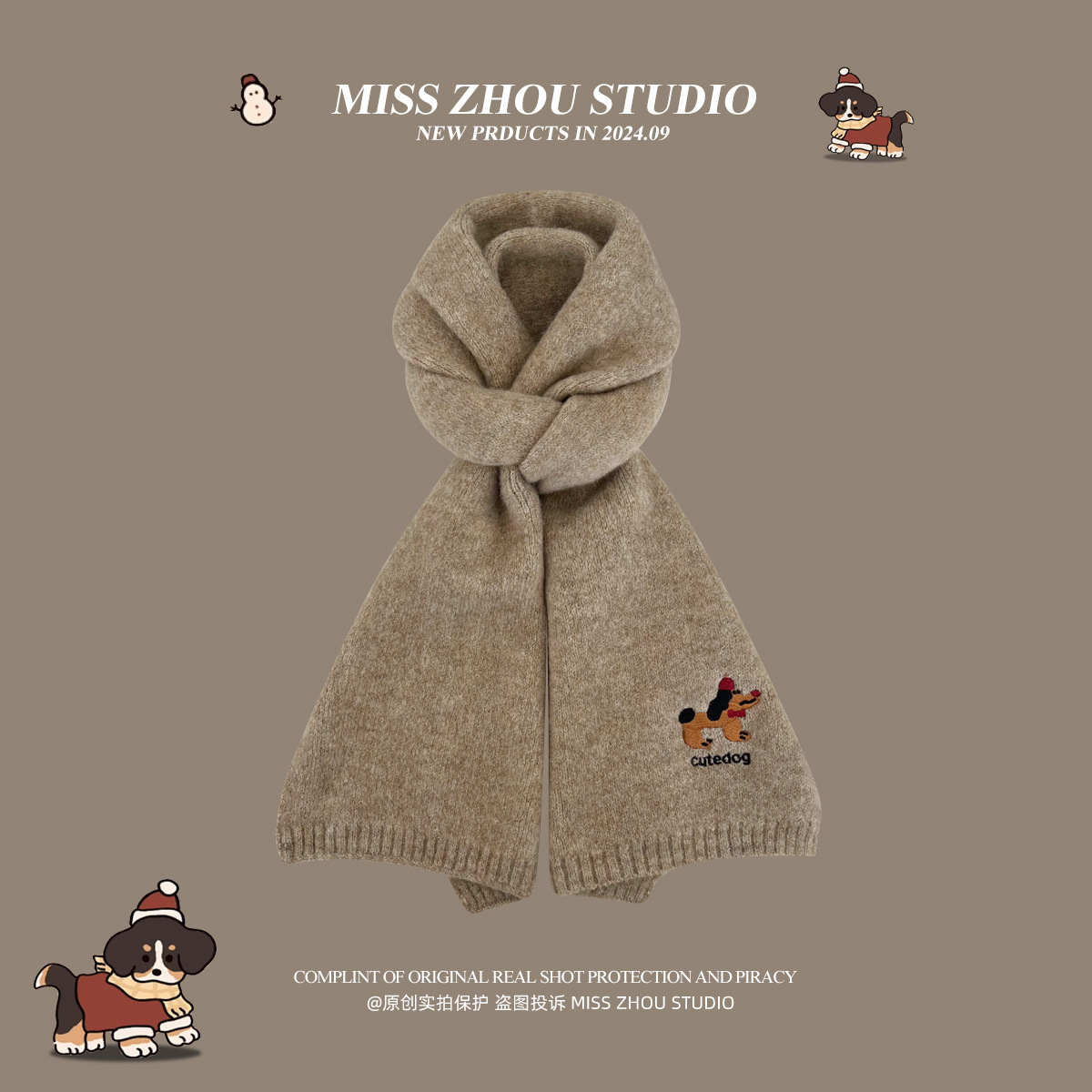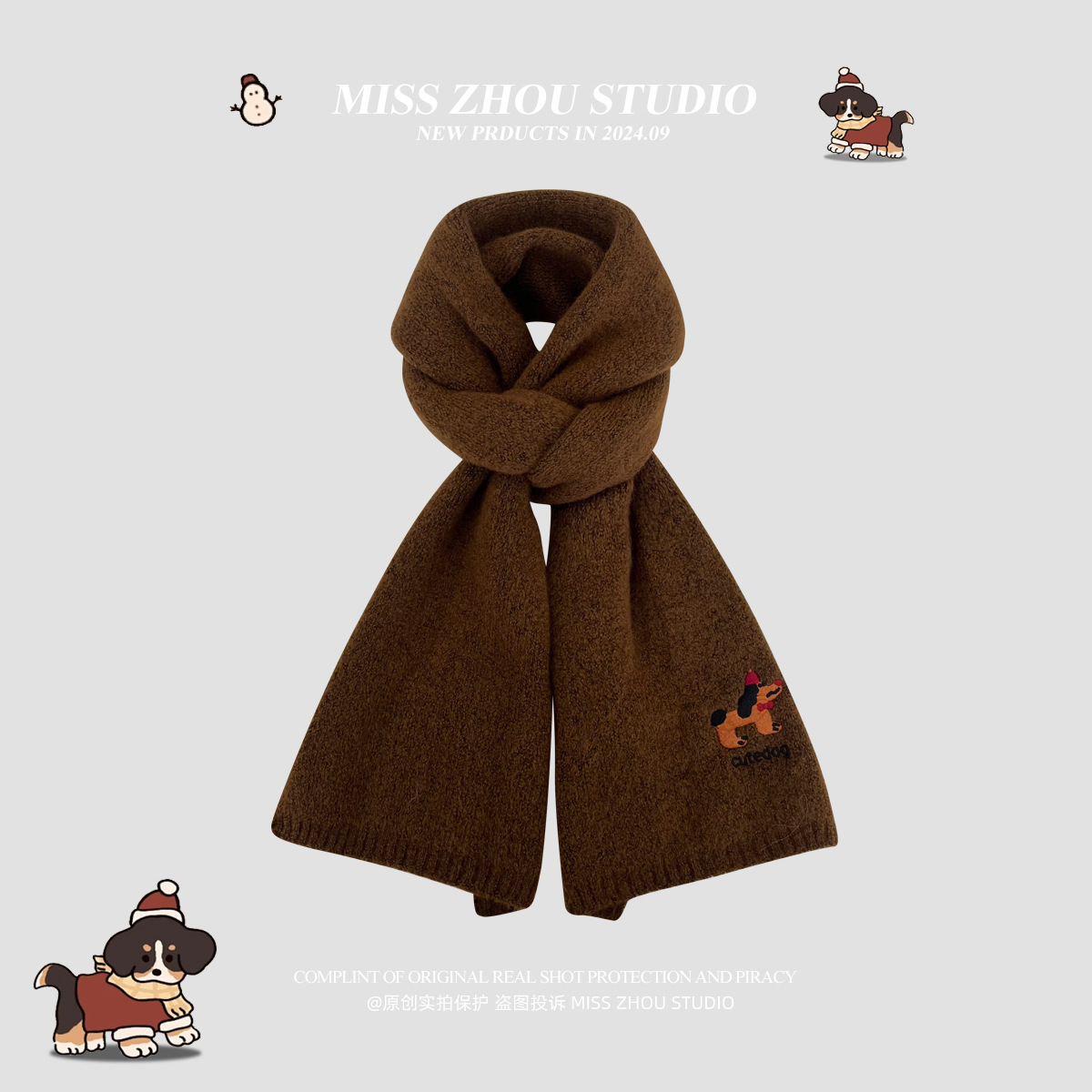 일본 귀여운 강아지 자수 니트 스카프 가을과 겨울 따뜻한 감기 방지 패션 올 매치 하이 엔드 스카프 학생스토어 가기