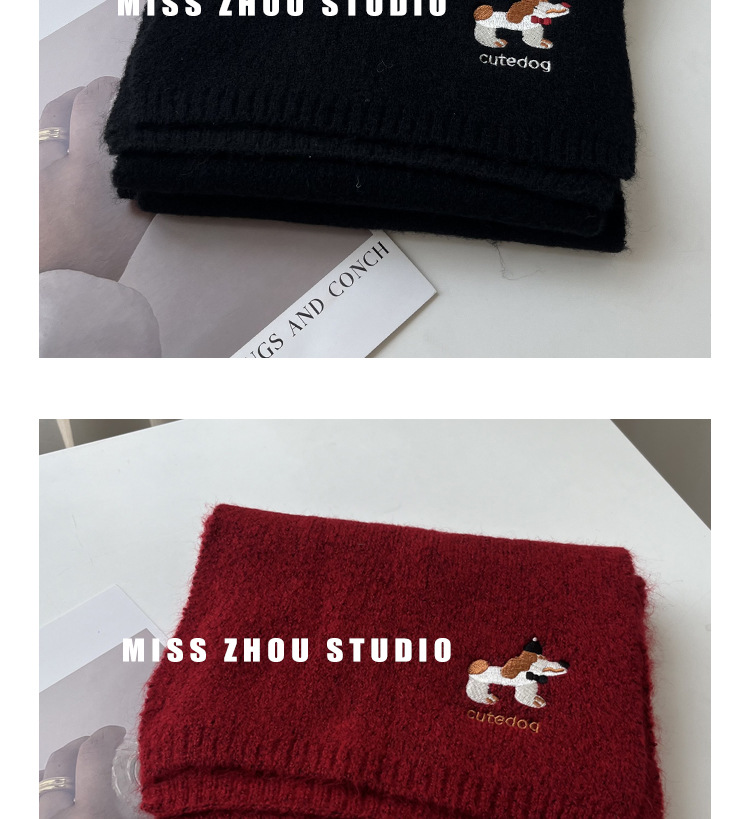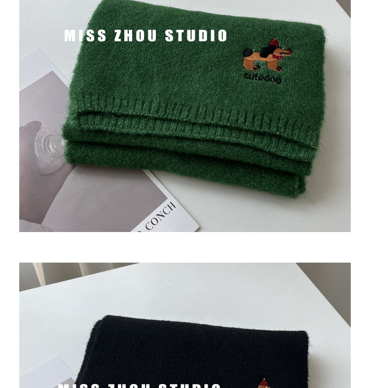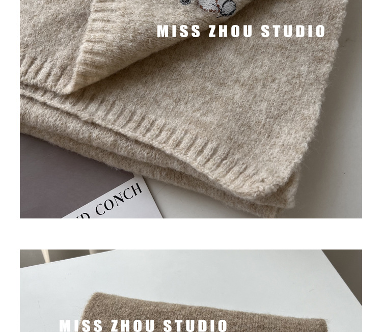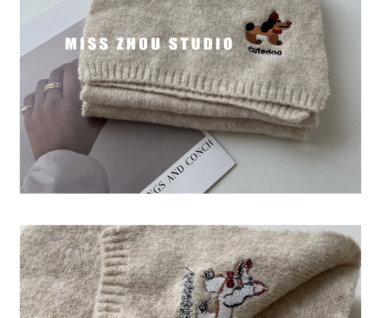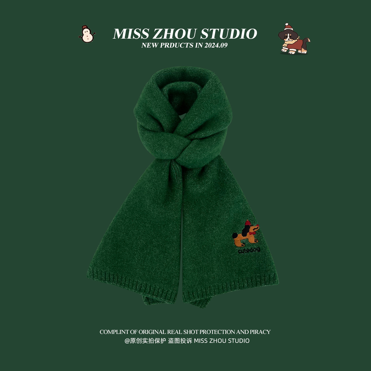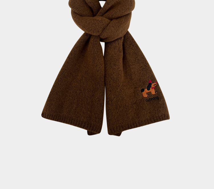 일본 귀여운 강아지 자수 니트 스카프 가을과 겨울 따뜻한 감기 방지 패션 올 매치 하이 엔드 스카프 학생스토어 가기
