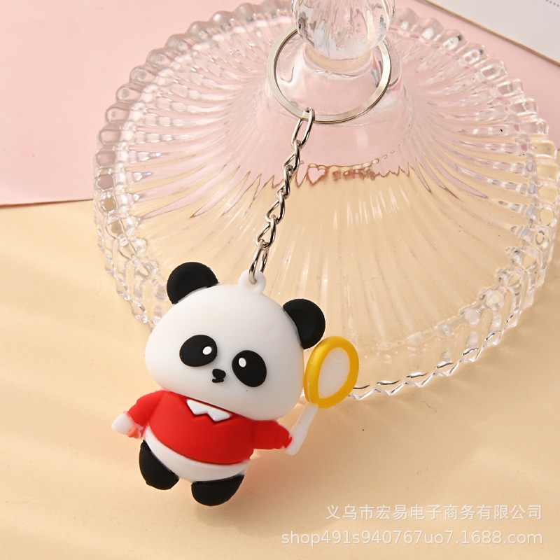 창조적 인 귀여운 스포츠 팬더 키 체인 만화 키 체인 커플 가방 휴대 전화 펜던트 푸시 프로모션 선물스토어 가기
