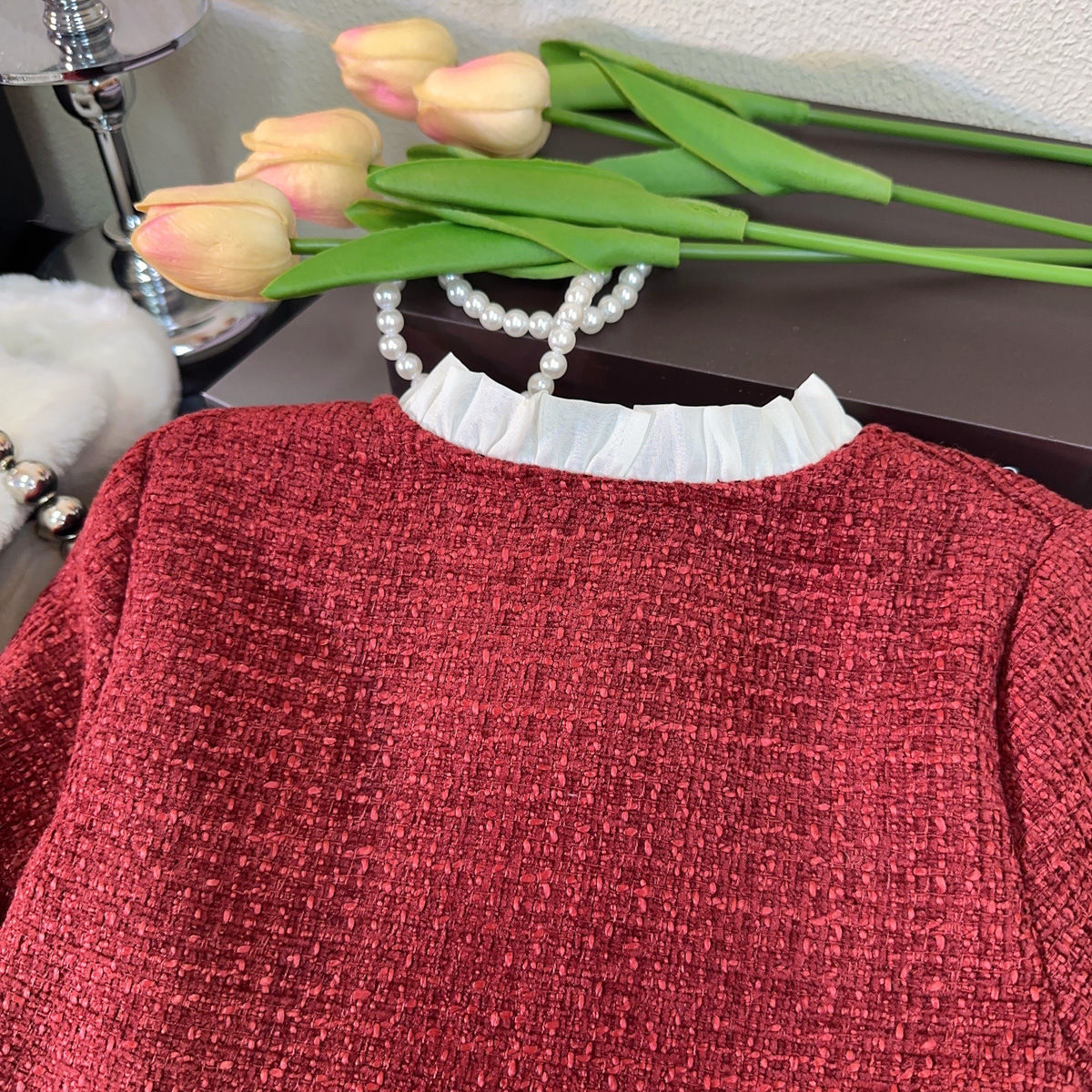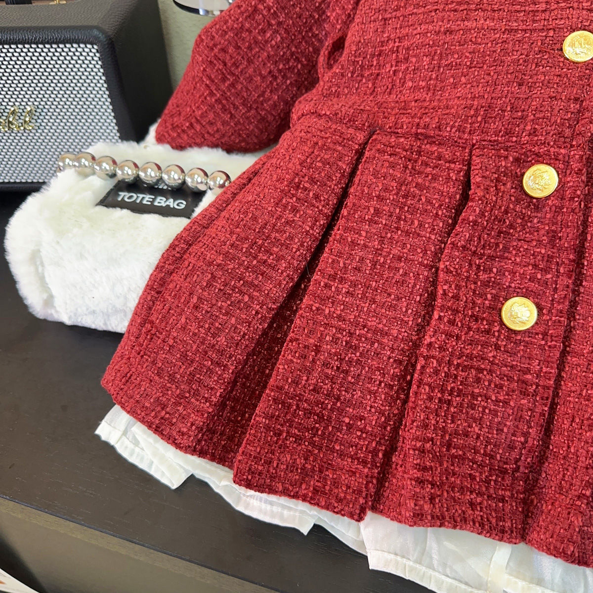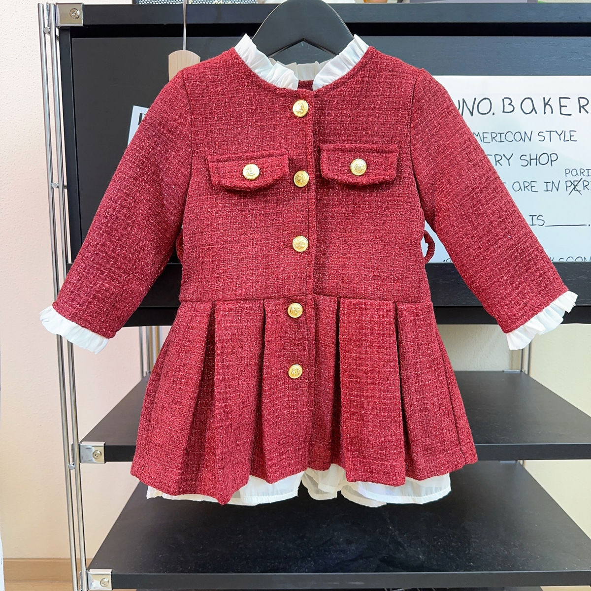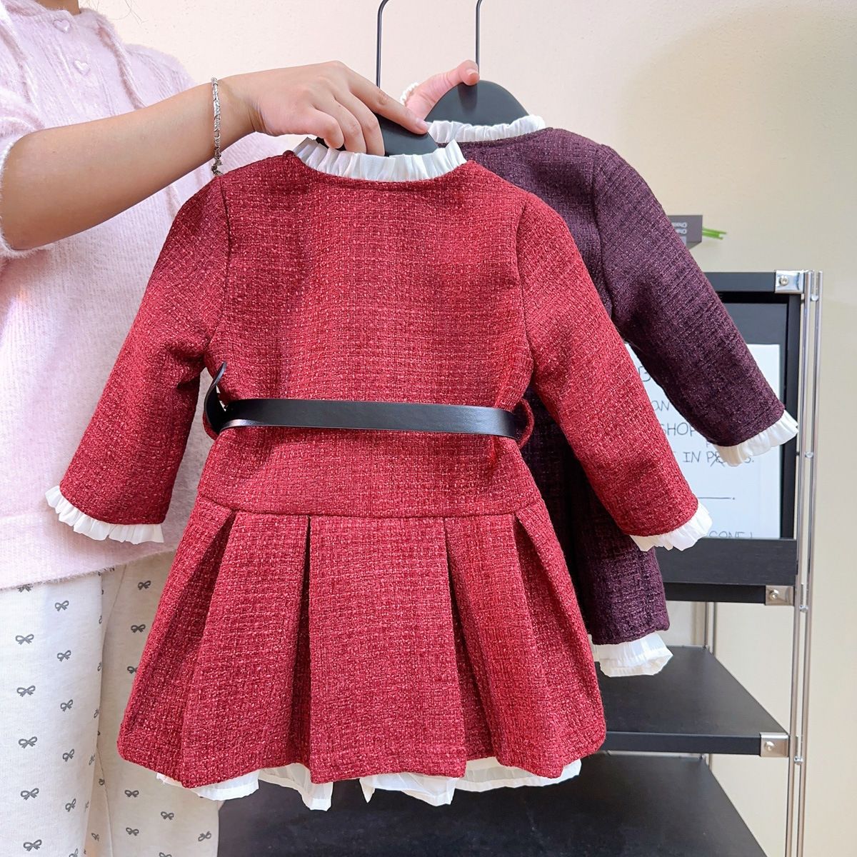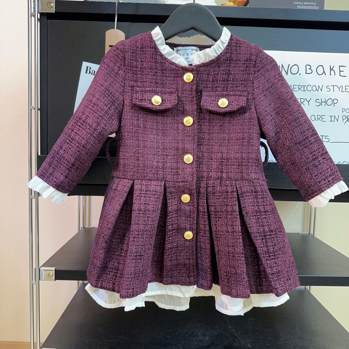 겨울 소녀 샤넬 스타일 기모 긴 코트 2024 새로운 소녀 세련된 유행 두꺼운 코트 벨트스토어 가기