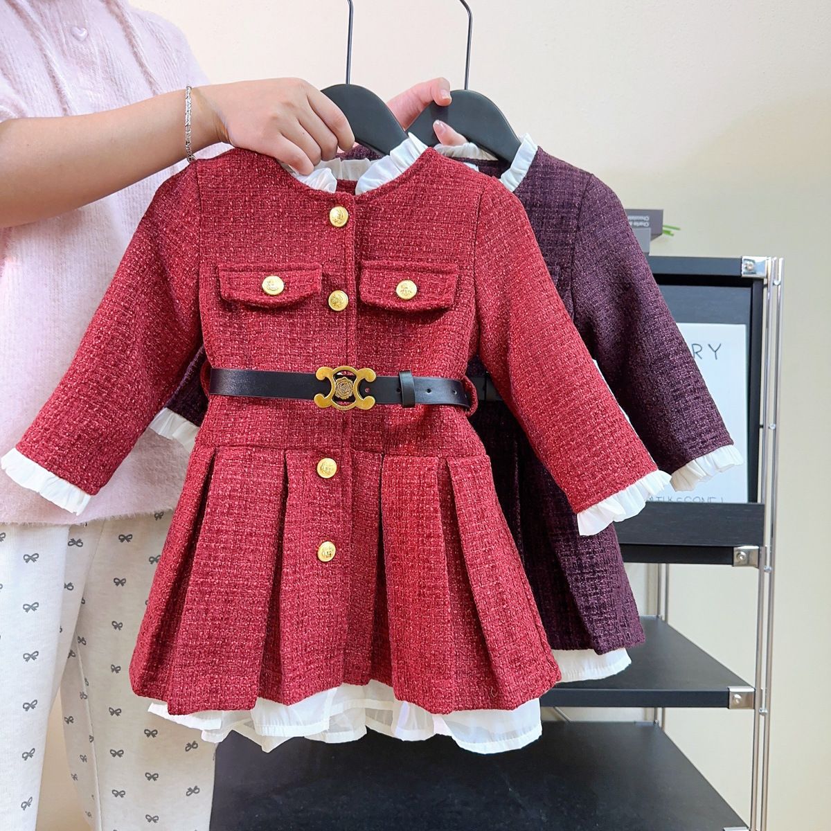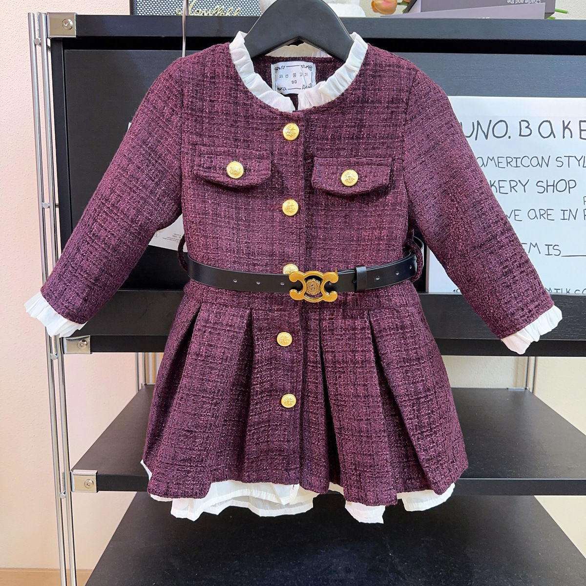 겨울 소녀 샤넬 스타일 기모 긴 코트 2024 새로운 소녀 세련된 유행 두꺼운 코트 벨트