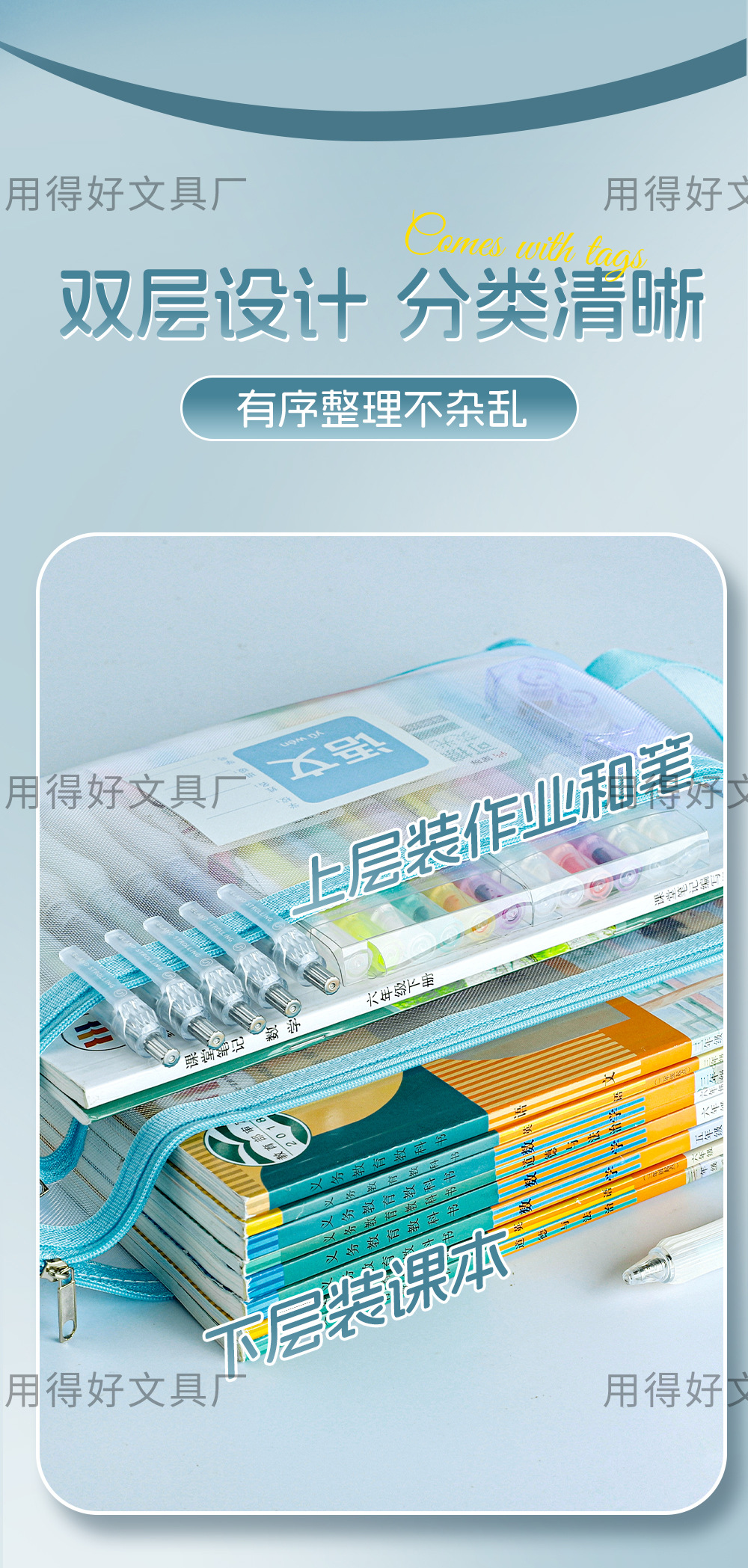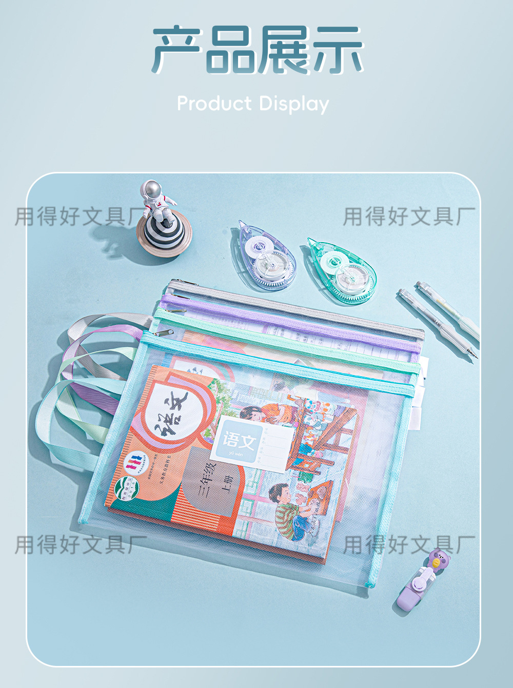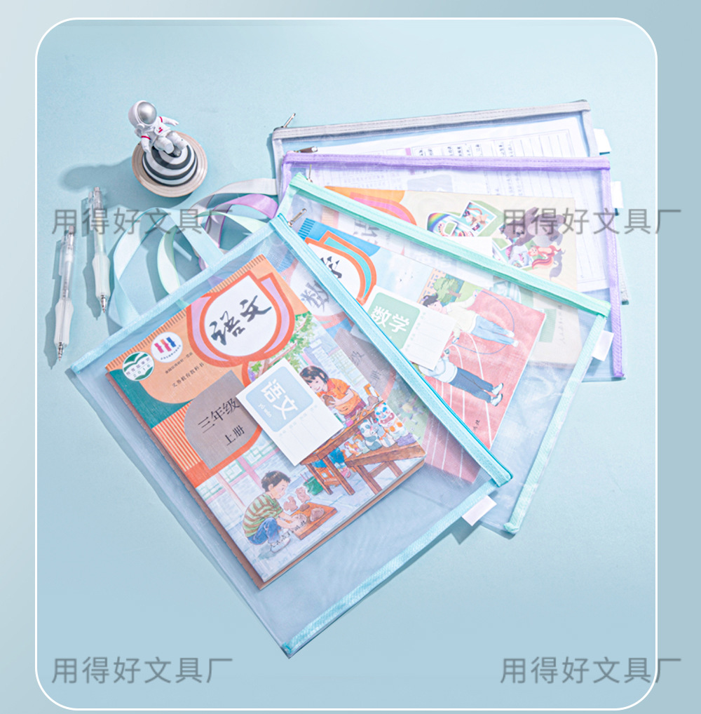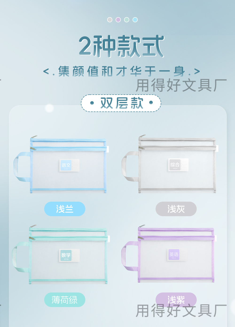 제목 분류 파일 가방 a4 더블 레이어 메쉬 가방 초등 및 중등 학교 학생 시험 가방 데이터 저장 가방 투명 핸드백스토어 가기