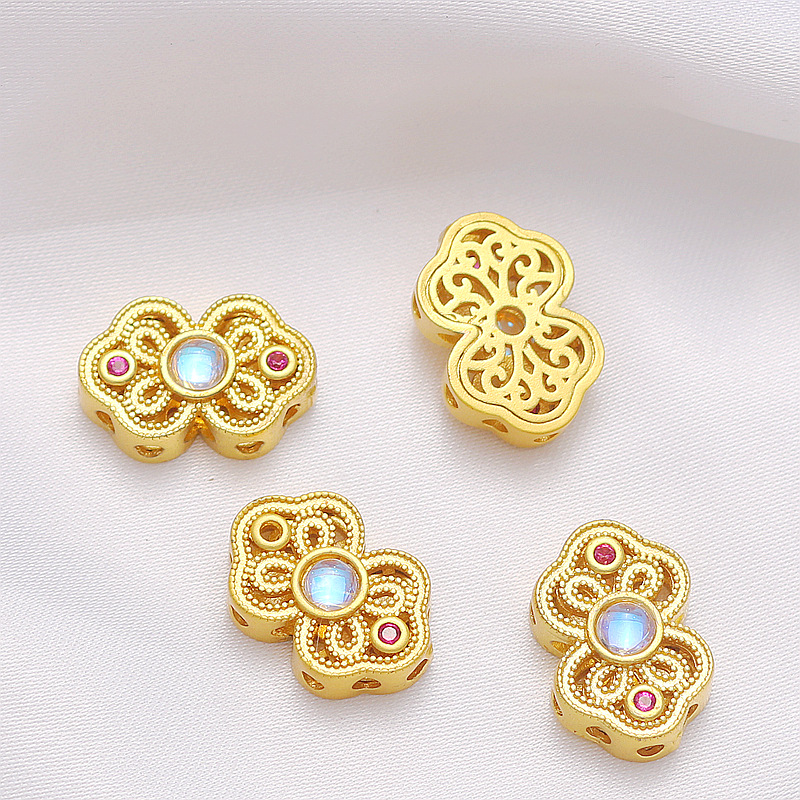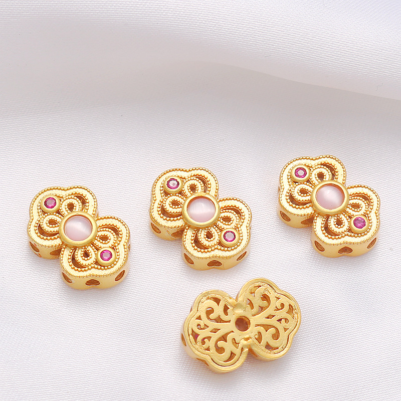 18K包金保色哑金贝珠月光猫眼蝴蝶结隔珠手牌扁珠DIY手链项链配件