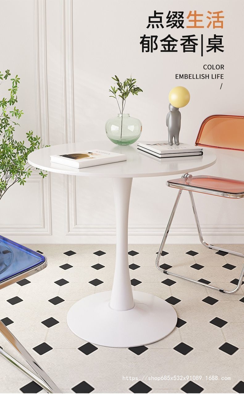 간단한 캐주얼 식탁 화이트 북유럽 커피 테이블 우유 차 가게 식탁 협상 테이블과 의자 조합 튤립 라운드 테이블스토어 가기