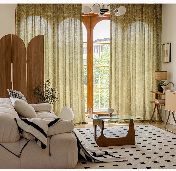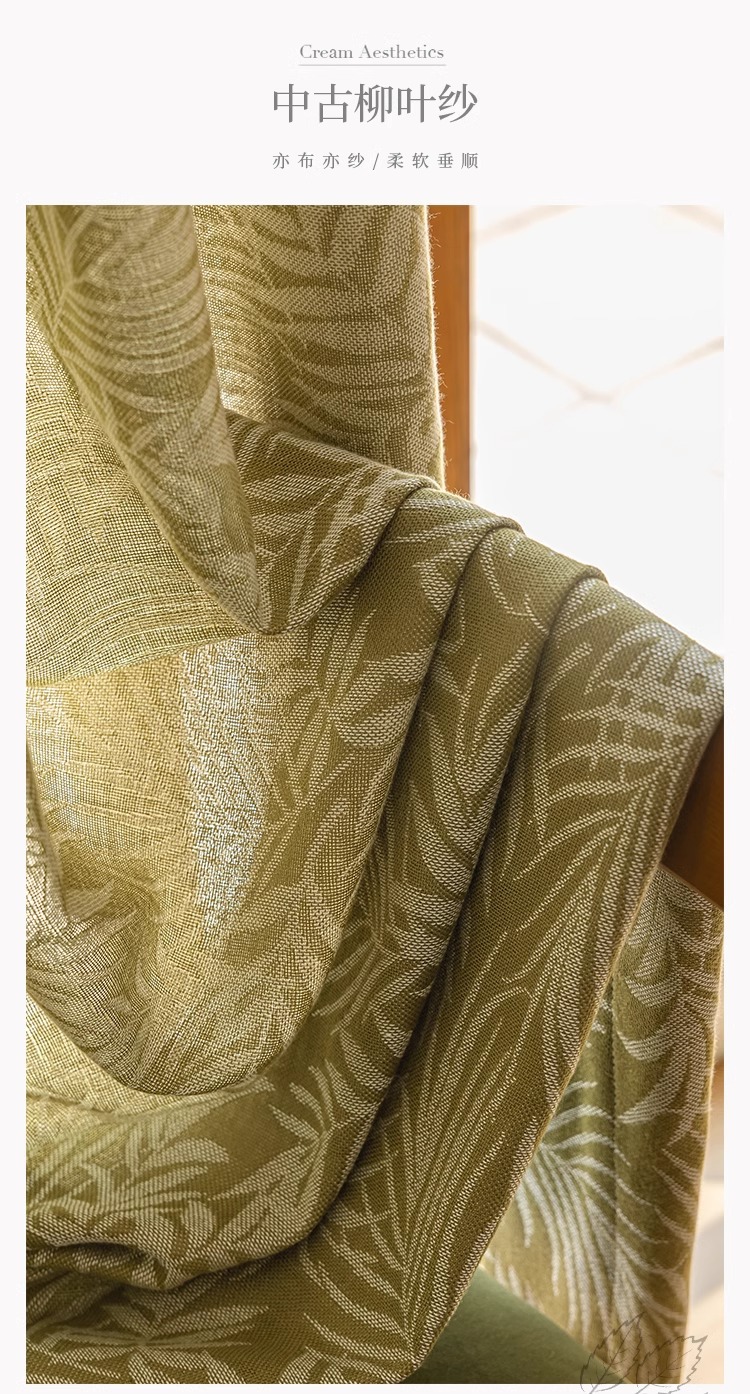 ✅ 프랑스 중세 버드나무 잎 방충망, 두꺼운 면 및 린넨 거즈 커튼, 천과 거즈, 빛을 투과하지만 사람을 투과하지 못하는 자카드 창문 거즈스토어 가기