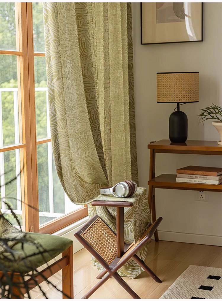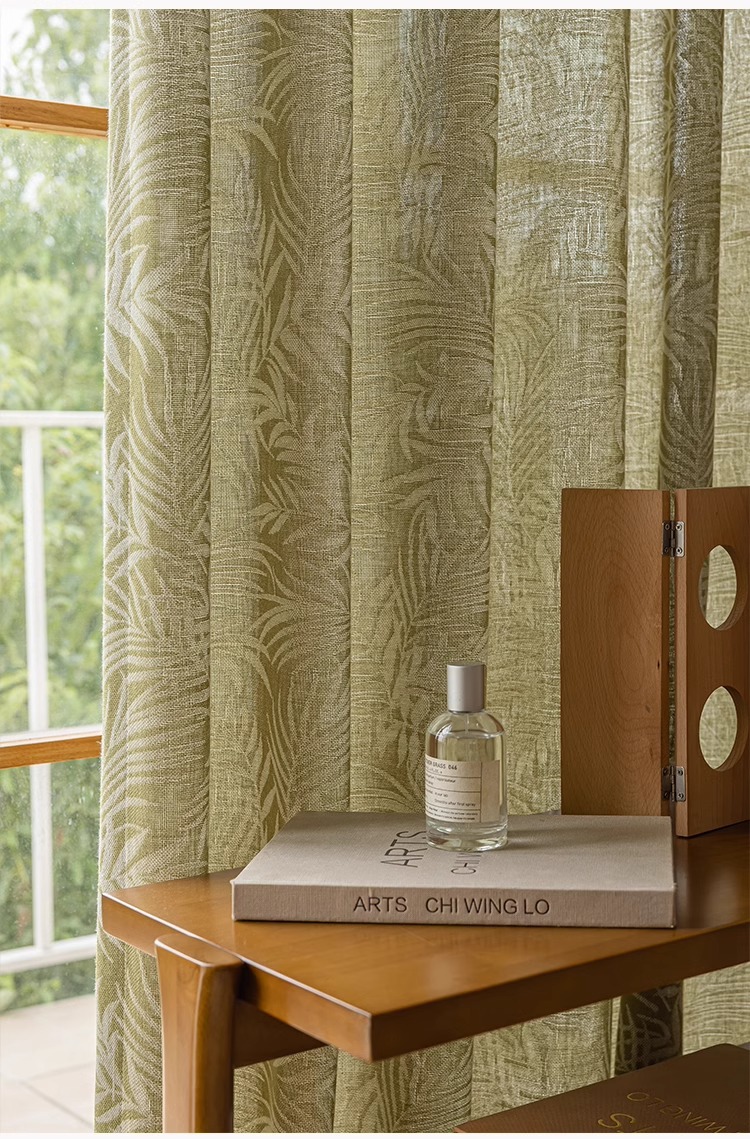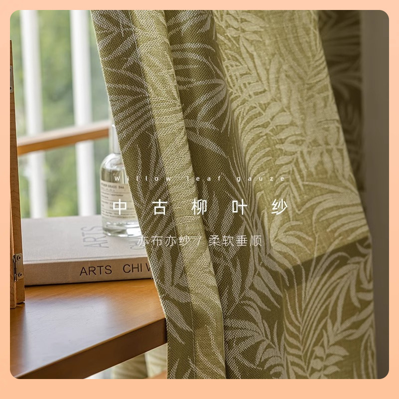 ✅ 프랑스 중세 버드나무 잎 방충망, 두꺼운 면 및 린넨 거즈 커튼, 천과 거즈, 빛을 투과하지만 사람을 투과하지 못하는 자카드 창문 거즈