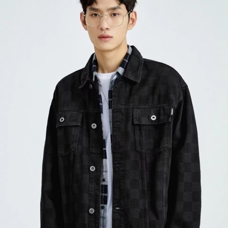 국경 간 남성 바둑판 데님 재킷 남성용 고급 느낌 ruffian 잘 생긴 한펑 세련된 자켓 공장 도매스토어 가기
